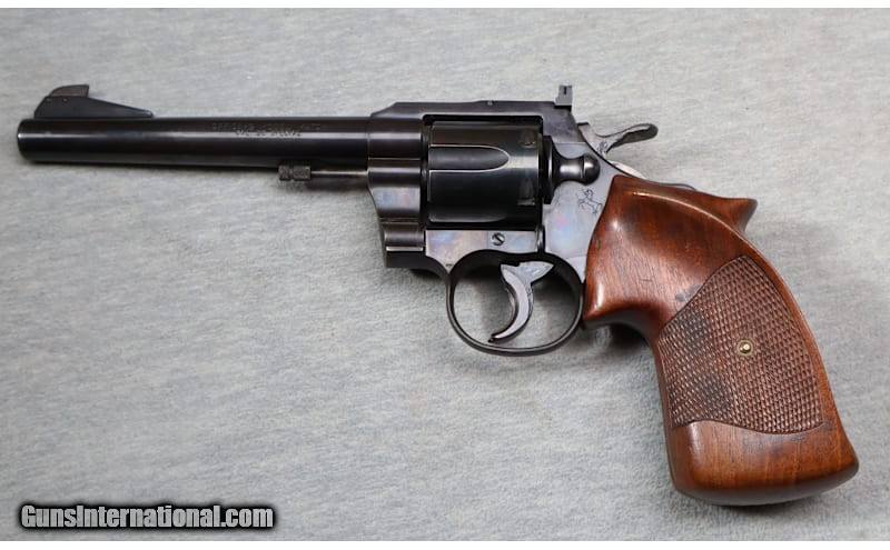 Description: Excellent condition, light finish wear, few small scratches. Colt .38 Special target revolver, 6" barrel, blued finish, adjustable sights, 6 shot fluted cylinder, checkered hammer & cylinder latch and Fitz checkered thumbrest wood target grips. .38 Special Chambers: Revolver Metal Condition: Excellent Bore Condition: Bright Barrels: 6 Triggers: Double and single action Butt Pad: Wood grips Sights: "Adjustable rear, blade front sights Item Location: La Vista, NE Price: $799.99 Contact Seller |