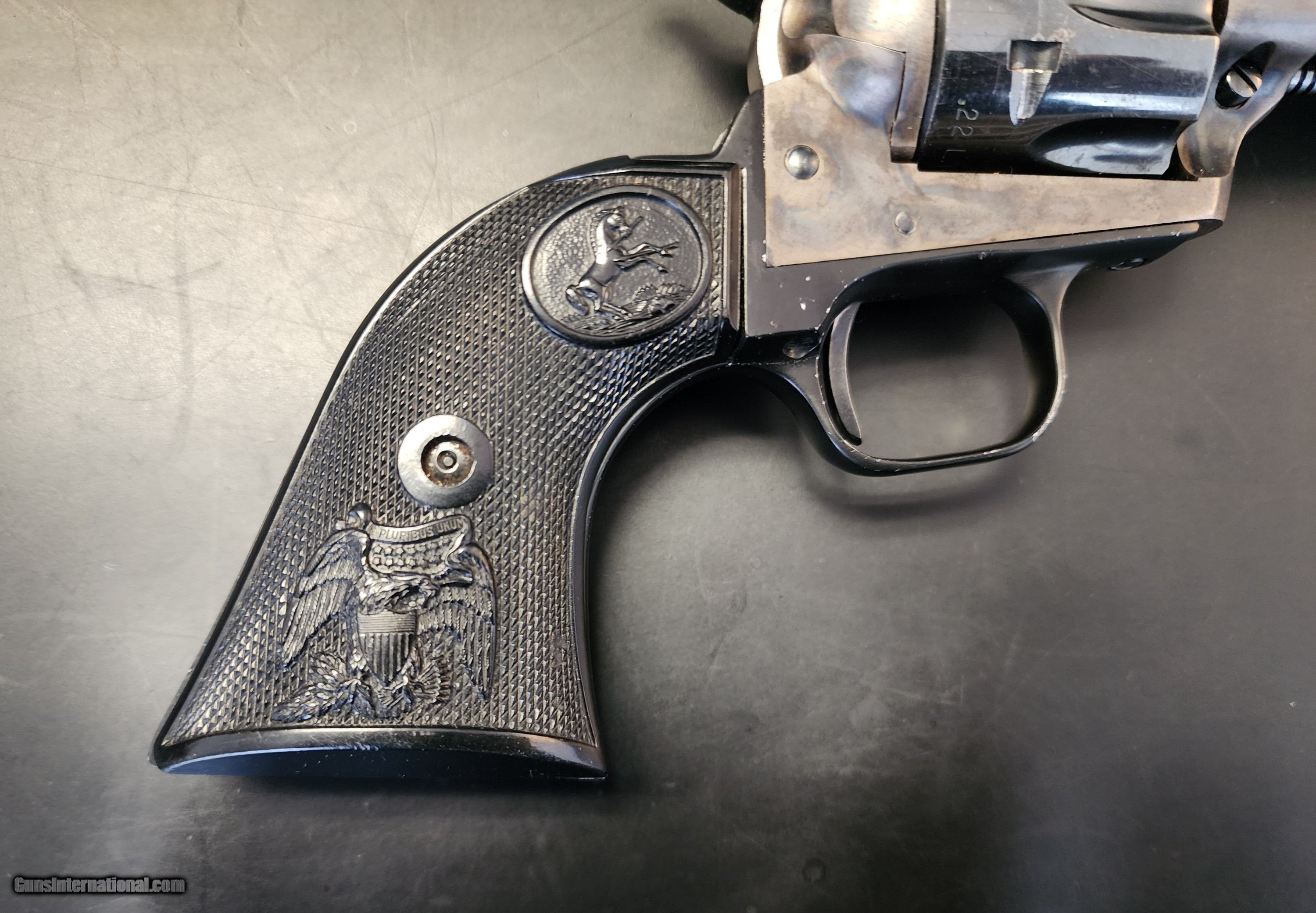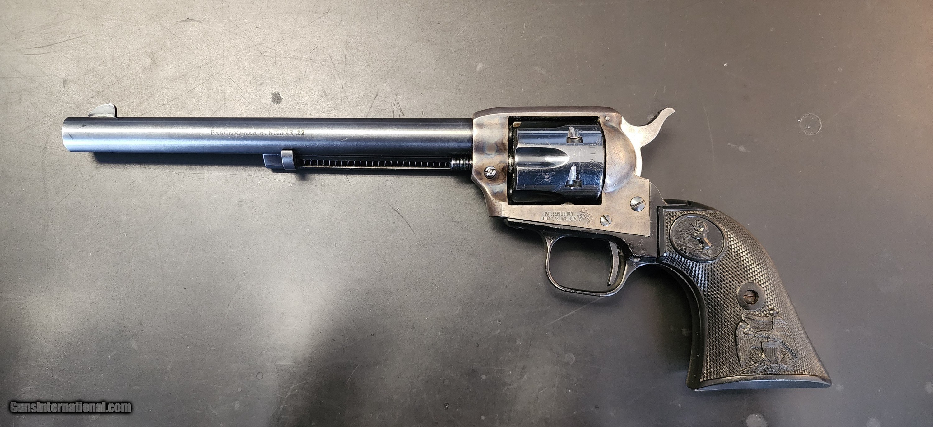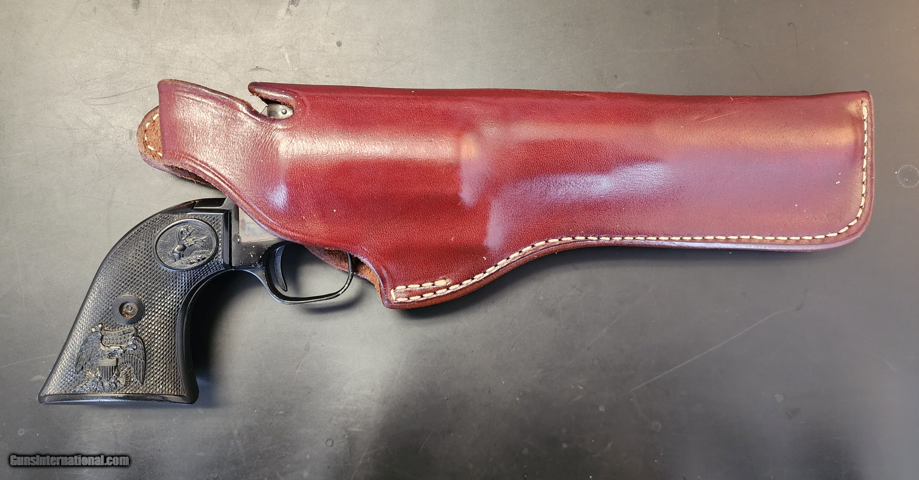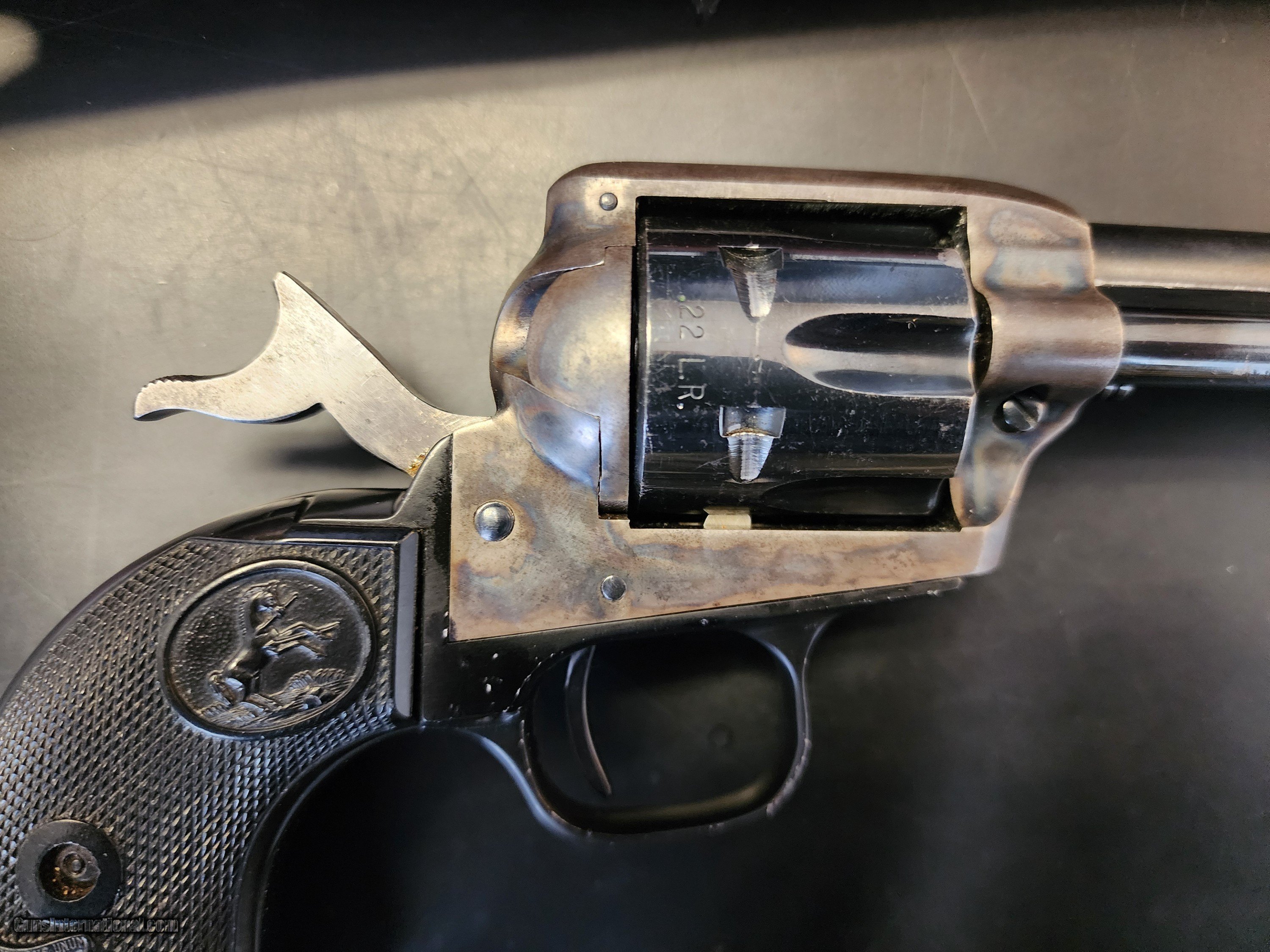 Description: Excellent condition. Made in 1974. Excellent case colors and blue. 7.5" barrel. Faint turn line on the Cylinder. Comes as pictured with new Triple K holster. Trigger is excellent! Feel free to call or text with question. Thanks, Ed SOLD Handgun Caliber: .22 Long Rifle Manufacturer: Colt Barrel Length: 7.5 Condition: Excellent Bore Condition: Excellent |
