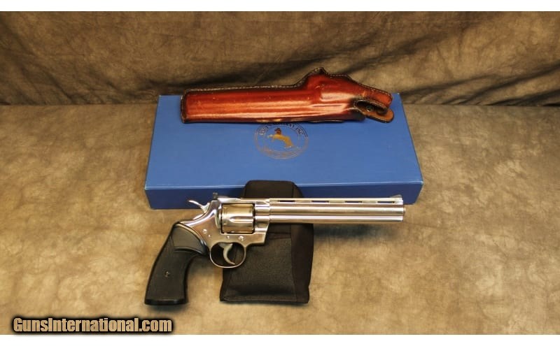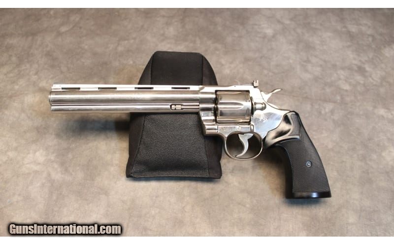 Description: This Colt Python is in very good condition. It has a somewhat rare 8" barrel. It also has black Pachmayer synthetic grips. It would make a great addition to a Colt Python collection. .357 Mag SOLD Chambers: .357 Magnum Metal Condition: Very Good Bore Condition: Very Good Barrels: 8 Weight: 51 oz Sights: "Black rear adjustable for elevation and windage, black ramp front Item Location: Columbia, MO |