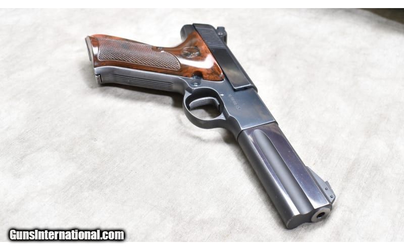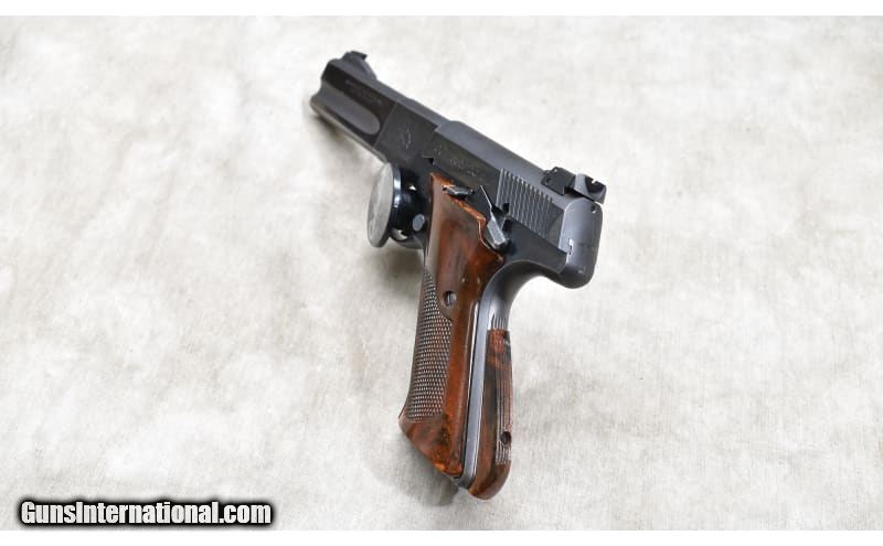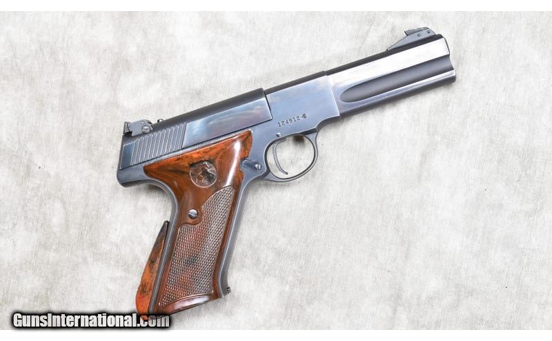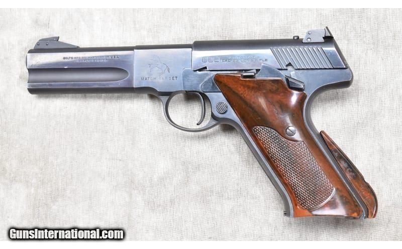 Description: Great little target pistol from Colt featuring a 4-1/2 inch heavy contour barrel, Patridge target sights, landfilling grips, and target pistol style grips. It was manufactured in 1954. .22 Long Rifle SOLD Chambers: 10 rounds Metal Condition: Very good. There are some light handling marks. Wood Condition: Very good. Light handling marks. Bore Condition: Shiny and bright with good rifling. Barrels: 4-1/2 inch heavyweight barrel. Triggers: Factory single action trigger Butt Pad: Checkered brown plastic with backstrap extension. Weight: 40 oz Sights: Patridge and adjustable notch target sights. Item Location: Rogers |