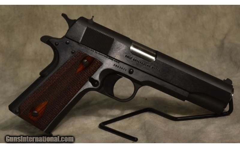 Description: Colt's PT. F. A. MFG. Government Model in excellent overall condition chambered in .45 Auto. Includes three 7 round magazines and factory hard case. .45 Auto SOLD Metal Condition: Excellent Wood Condition: Excellent Bore Condition: Bright Barrels: 5 Item Location: Chesterfield, MI |