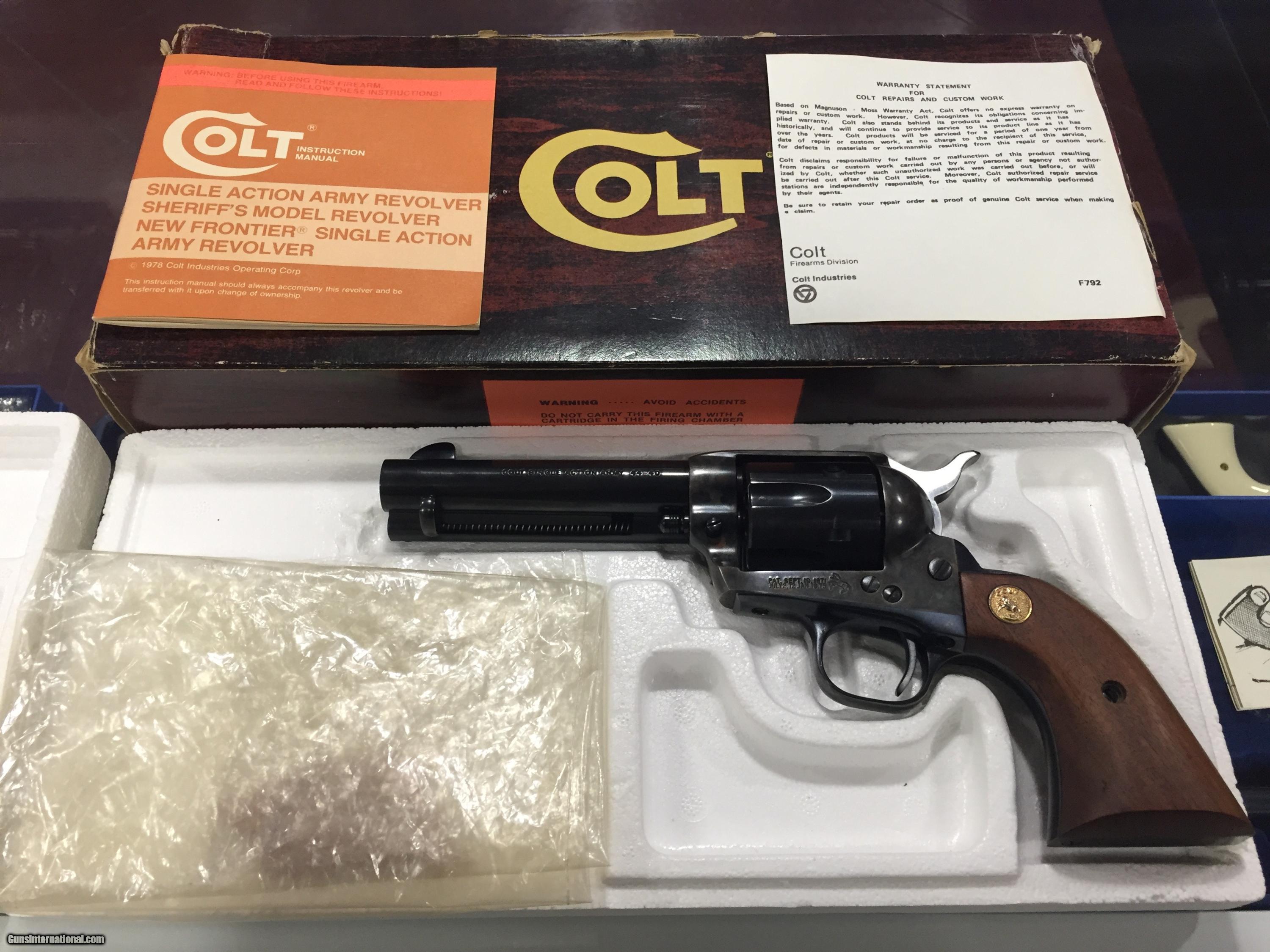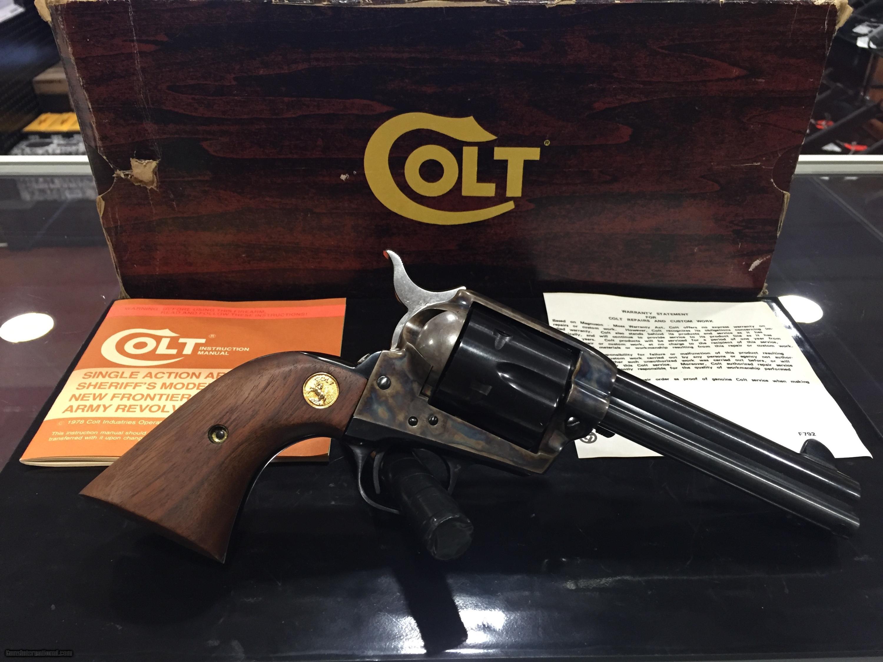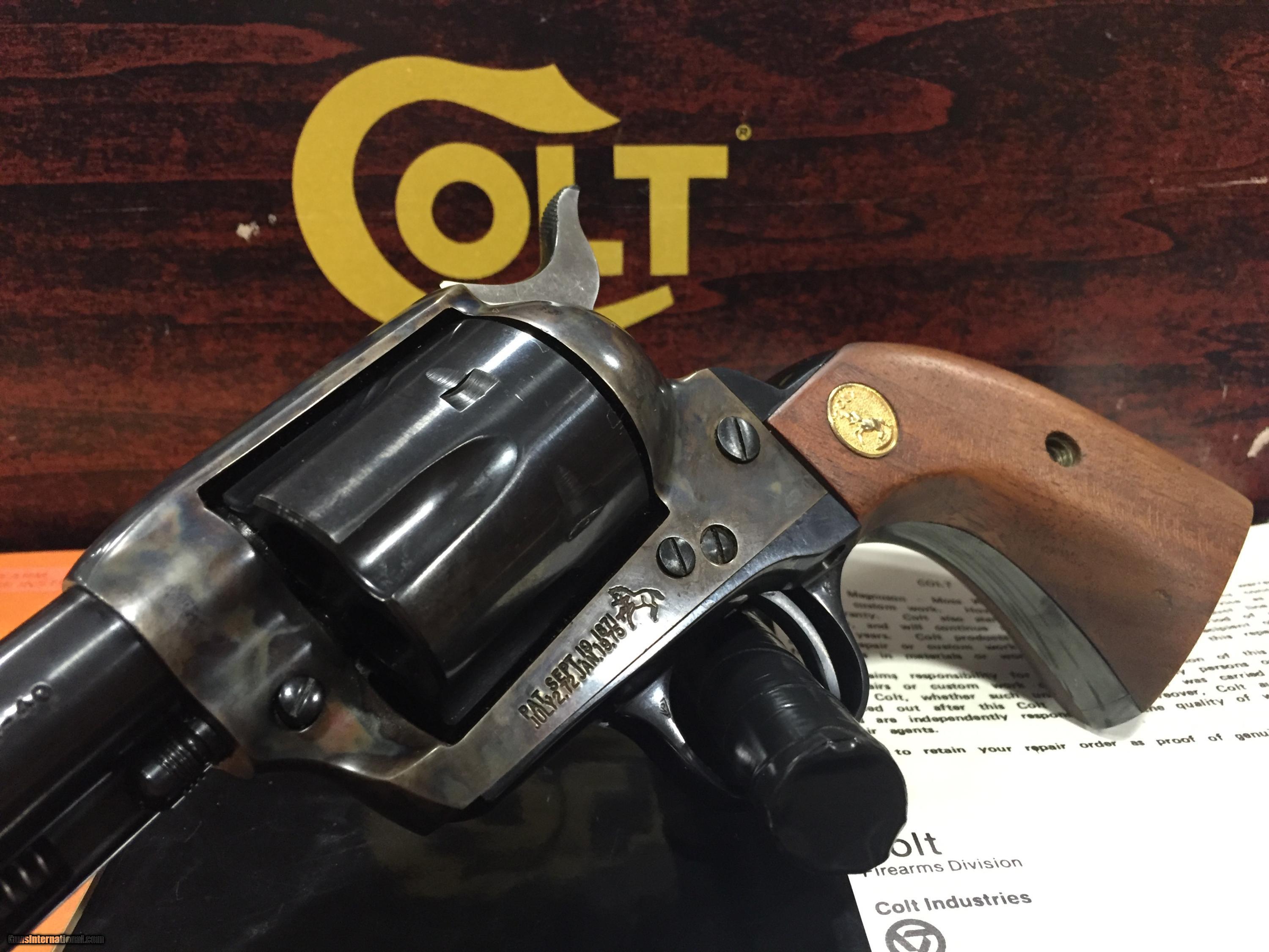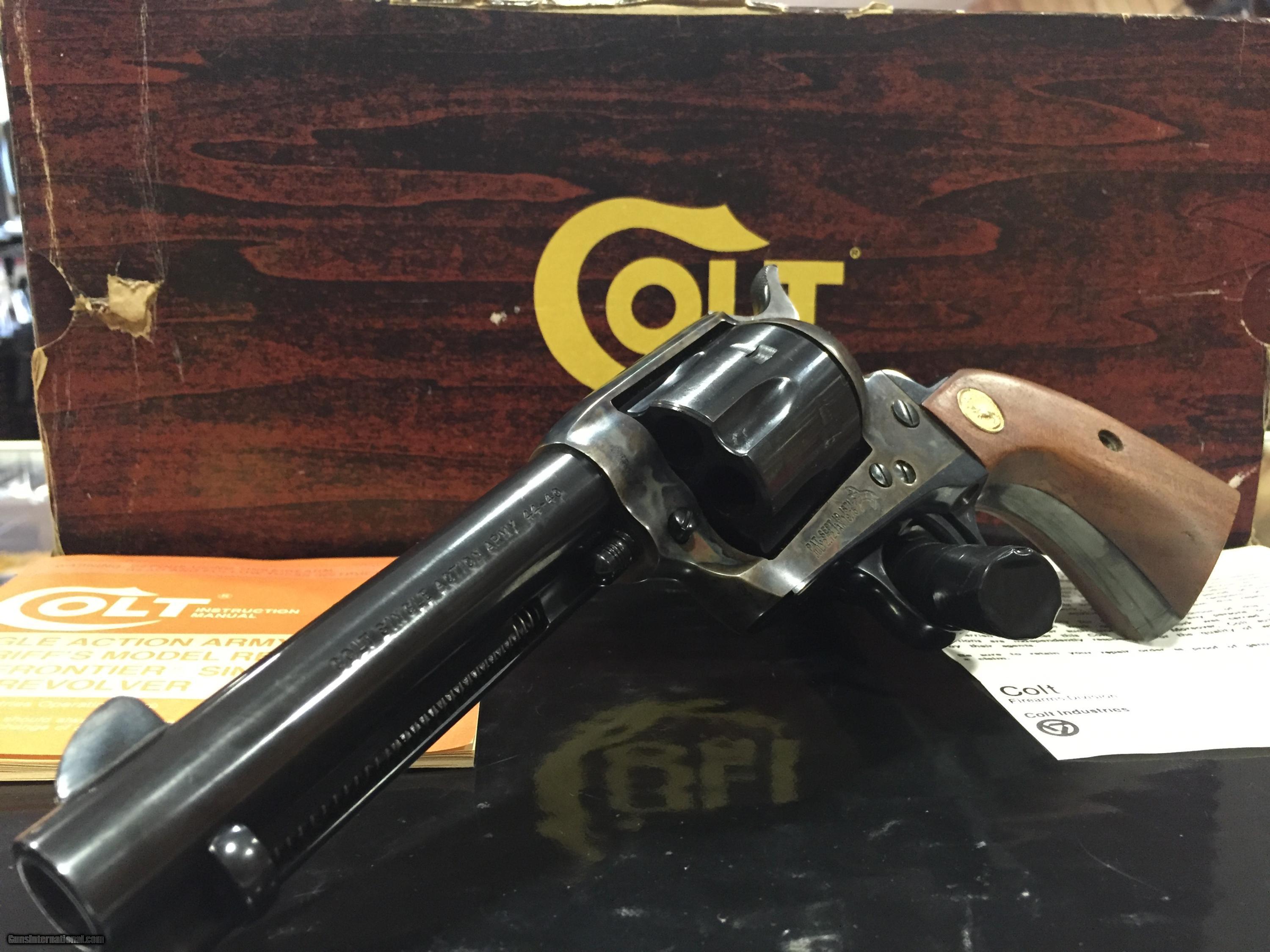 Description: THIS IS A BEAUTIFUL COLT SINGLE ACTION 44-40 CALIBER. THIS COLT IS A 3RD GENERATION AND IS IN IMMACULATE CONDITION. THIS GUN COMES WITH THE ORIGINAL BOX AND PAPERWORK. + $25.00 SHIPPING CHARGE ***SORRY, NO SALE TO CALIFORNIA*** SOLD |