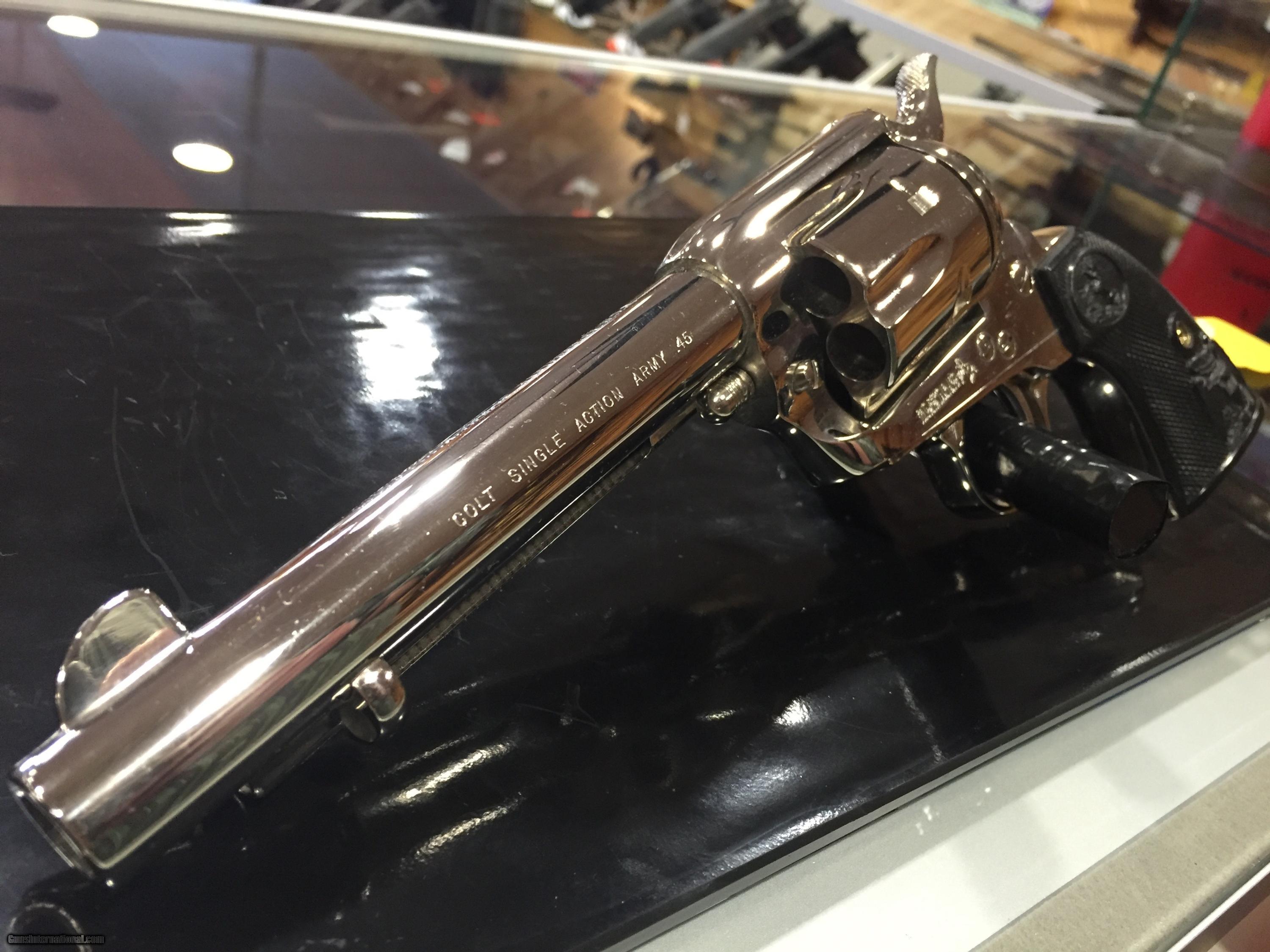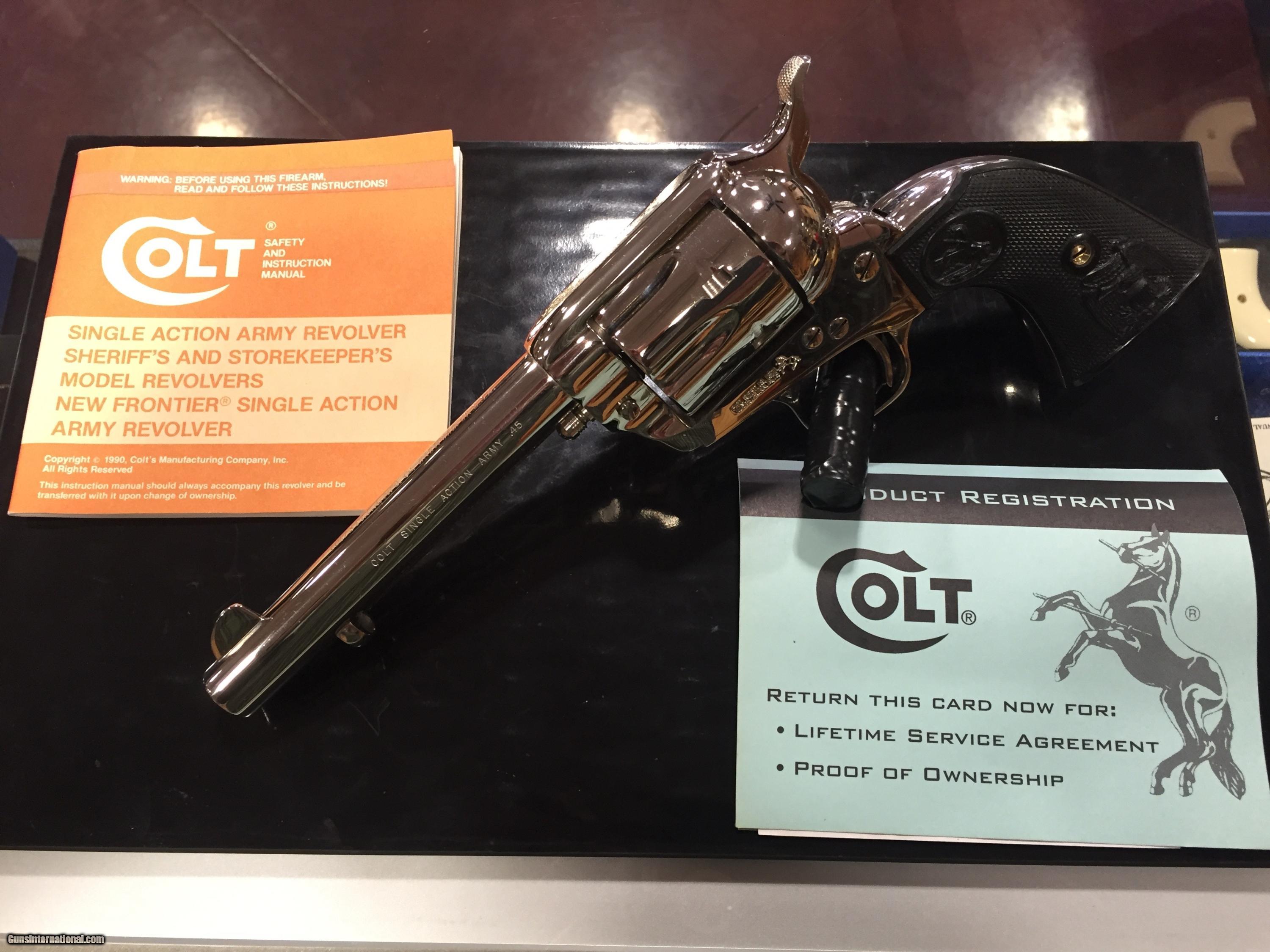 Description: THIS IS A BEAUTIFUL COLT SINGLE ACTION ARMY 45LC. THIS COLT IS IN IMMACULATE CONDITION. THIS GUN COMES WITH THE ORIGINAL BOX AND ALL PAPERWORK. + $25.00 SHIPPING CHARGE ***SORRY, NO SALE TO CALIFORNIA*** SOLD |