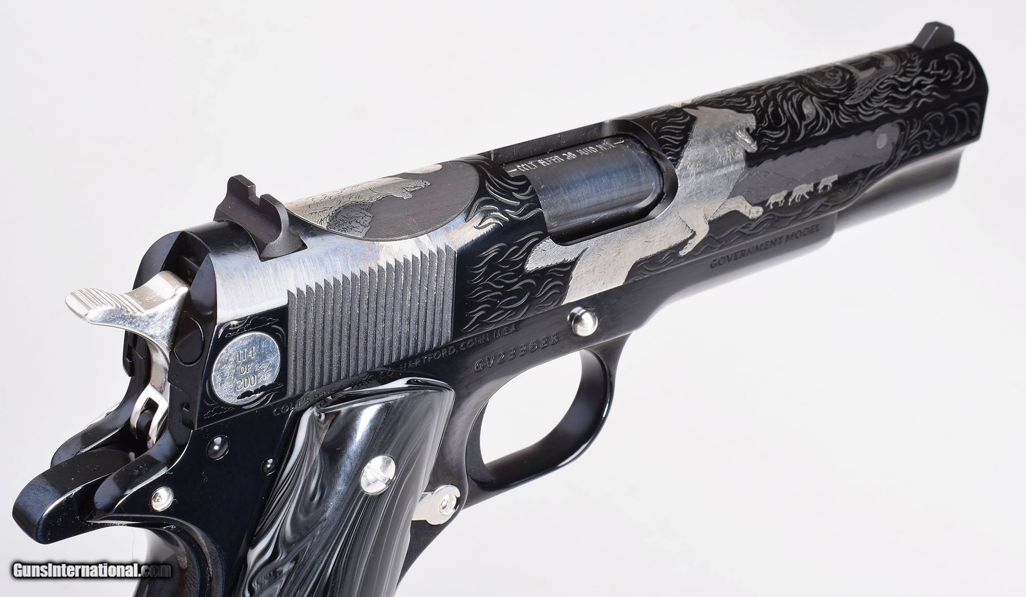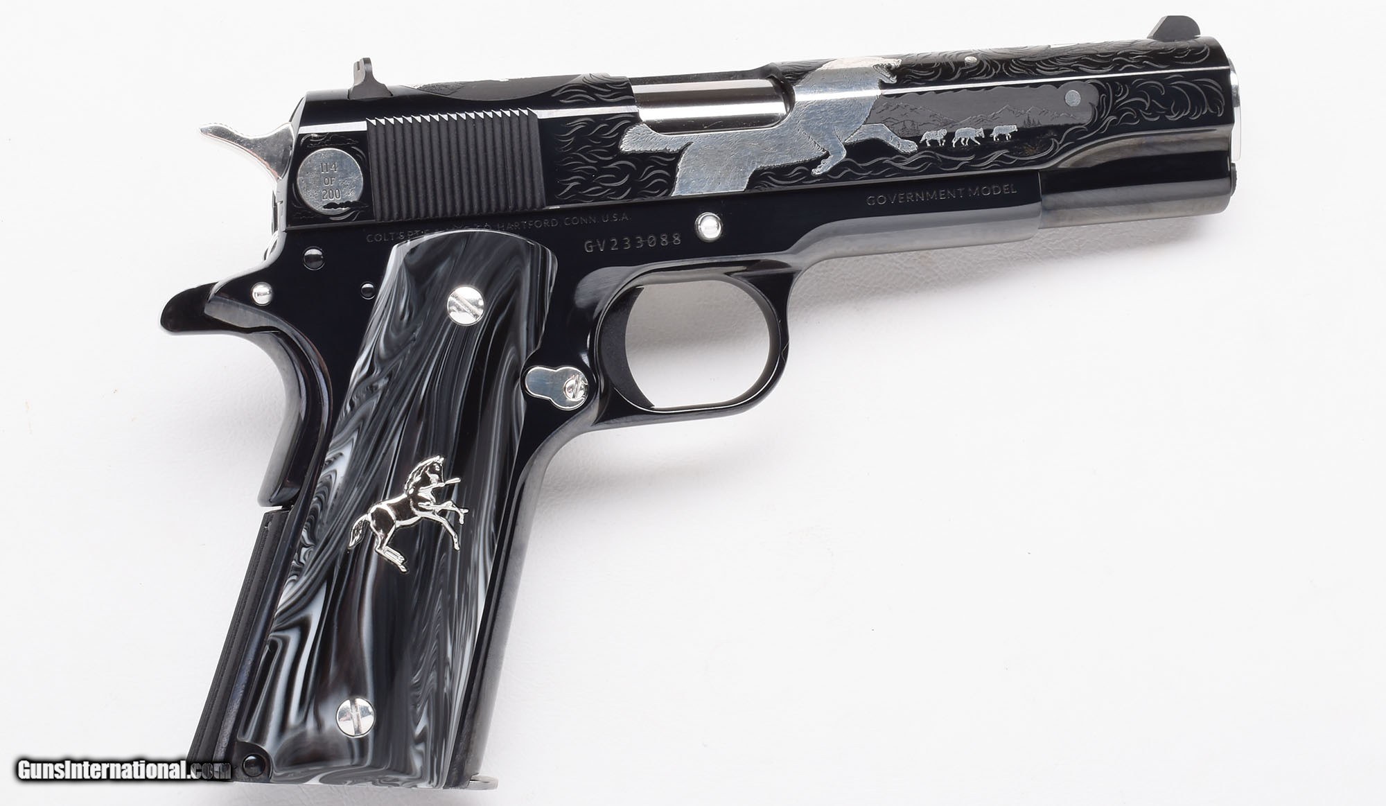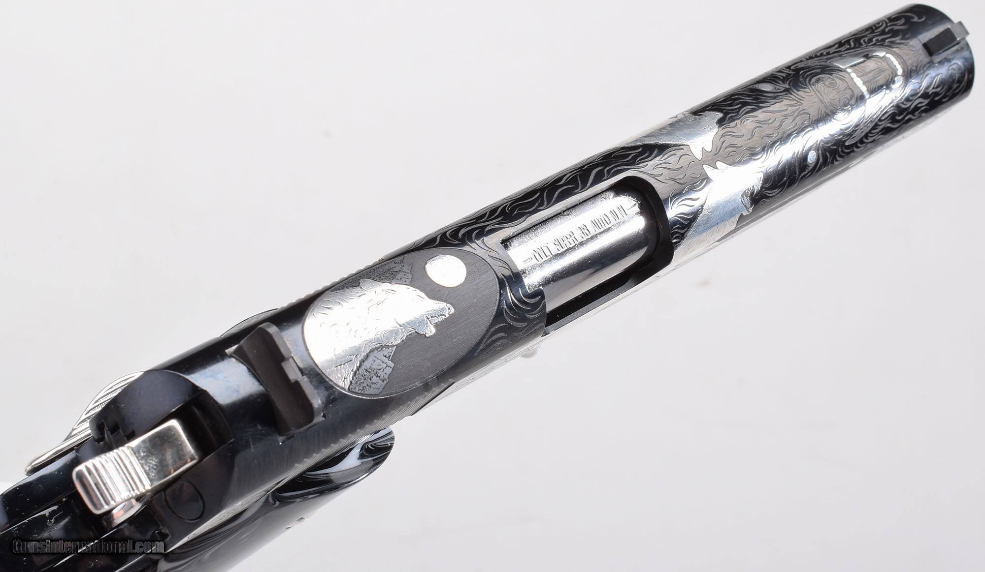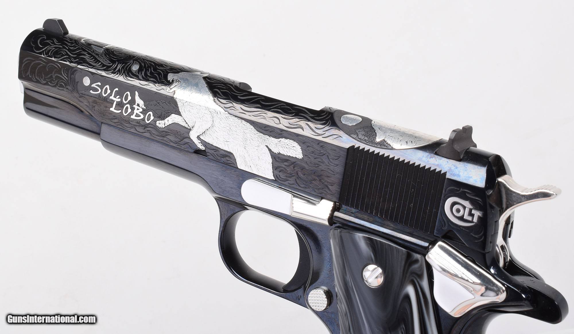 Description: Factory New in Box Colt Solo Lobo in .38 Super; #114 of 200. The "SOLO LOBO" is a limited-edition production run of only (200) 1911 Full-Size Government Models chambered in 38 Super, featuring a Colt royal blue polished finish on the slide and frame. The pistol is covered in .999 pure Silver, the Colt logo decorates the rear left panel, and the right is engraved with each gun's unique issued series number.The production comes complete with a set of black pearl Kirinite grips showing with the Silver Colt Rampart inserts. Includes factory box and 1 7RD magazine. SOLD Manufacturer: COLT Model: Solo Lobo Caliber Info: .38 Super Condition: Factory New Metal Condition: Excellent Bore Condition: NEW Barrel Type: Rifled Action: Single Action Auto Triggers: SAO Weight: 38.7 oz Sights: Fixed |