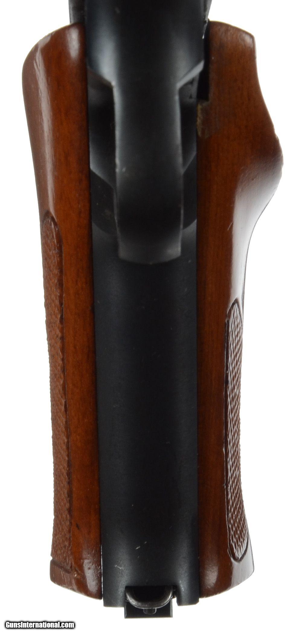 Description: 22 Long Rifle; 98% blue, excellent bore, excellent grips, 6'' barrel, Manufactured in 1973. Original blue finish and checkered walnut grips. Fixed front and adjustable rear sights. Factory 10-shot magazine. Used, with a few scattered minor handling marks. Mechanically fine. FFL Please call (309)342-5800 Tues-Fri, 10 am -6pm (CST), or Sat 1pm-6pm (CST), to speak with our sales team for further information, or to purchase firearms. FEDERAL FIREARMS LICENSE (FFL): is required on all shipments of modern guns. We must wait for a copy from your dealer before we can ship to them. We will also ship C&R eligible firearms to Curio and Relic (C&R) license holders. We accept your signed, legible FFL and C&R licenses via fax at 309/ 342-5730 (always on), email at FFLsimpsonltd or through the mail at Simpson Ltd; 140 S Seminary St; Galesburg, IL 61401. Pre-1898 firearms and non-firearms items are exempt from licensing requirements. All items shipped to an Illinois address will be charged 8.75% sales tax. NOTE: Because of recent shipping restrictions and charges placed on us by UPS and FedEx (handguns must ship via next day or 2nd day air and they have added a $10 surcharge for parcels over 48”. Our return policy lasts a maximum of 3 days from the time you receive your item. If 3 days have passed since you received your purchase, and we have not been contacted by you, unfortunately, we can’t offer you a refund or exchange. If you are not happy with your purchase, please contact us by phone and/or email to arrange for a return. Items must be shipped back to us to arrive with 7 days of notification of return. SOLD Serial Number: 049507S |