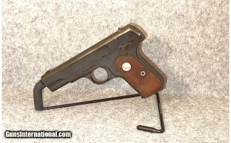 Description: Gorgeous Colt Hammerless pistol chambered in powerful .380acp cartridge. 1928 Mfg. Pistol remains in good to very good condition with original finish. Various scattered light handling marks , with small scratches. Action is tight and functions as intended, good bore with strong rifling. Full checkered original grips with Silver Colt Ramparts medallions in very good condition with no cracks or heavy wear. A hand gun that any collector would love to have!! .380 ACP SOLD Chambers: 1 Metal Condition: Good Wood Condition: Very good condition. Bore Condition: Good Barrels: 3 Inches Triggers: 7.5 pounds. Weight: 1.5 pounds Sights: Low profile steel front and rear Item Location: Lone Tree, CO |