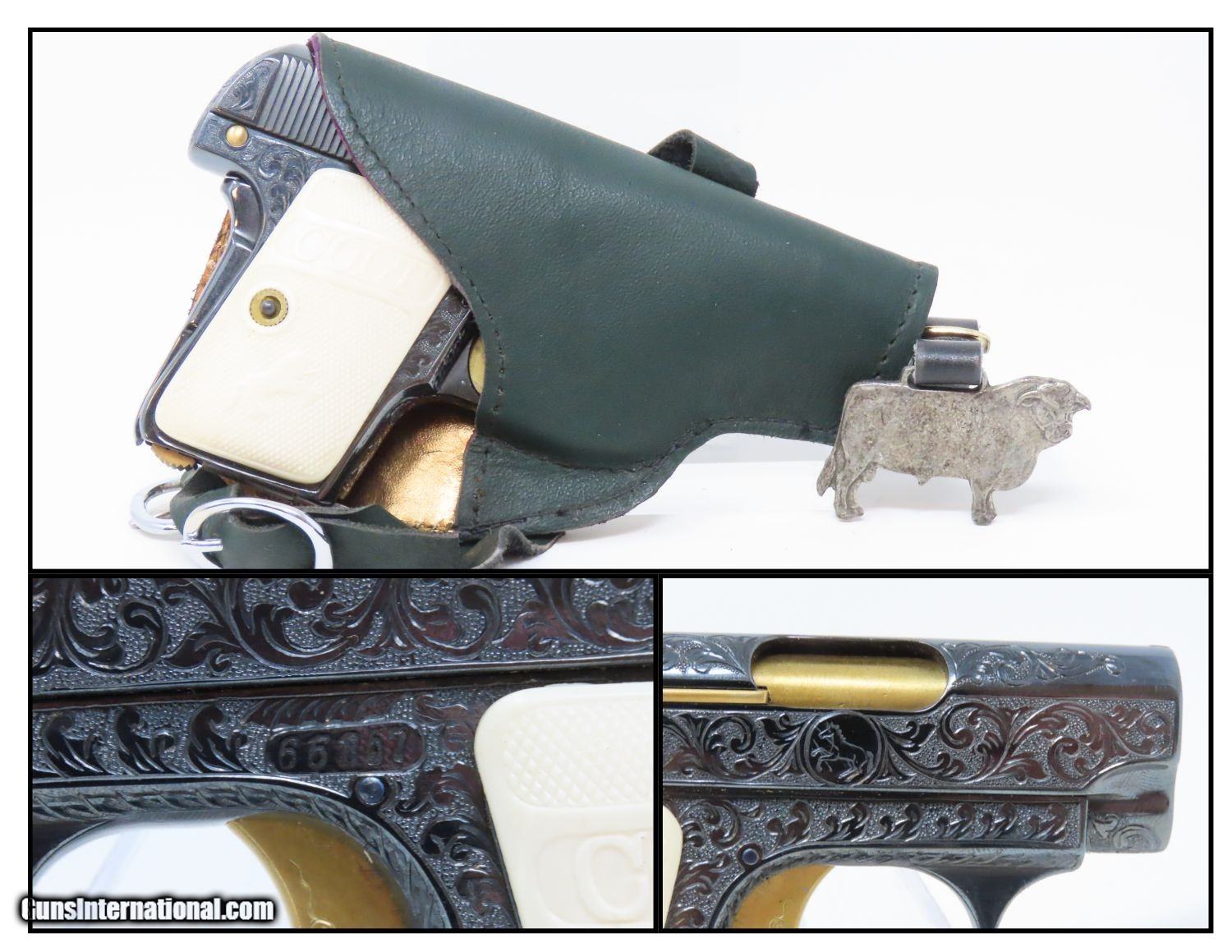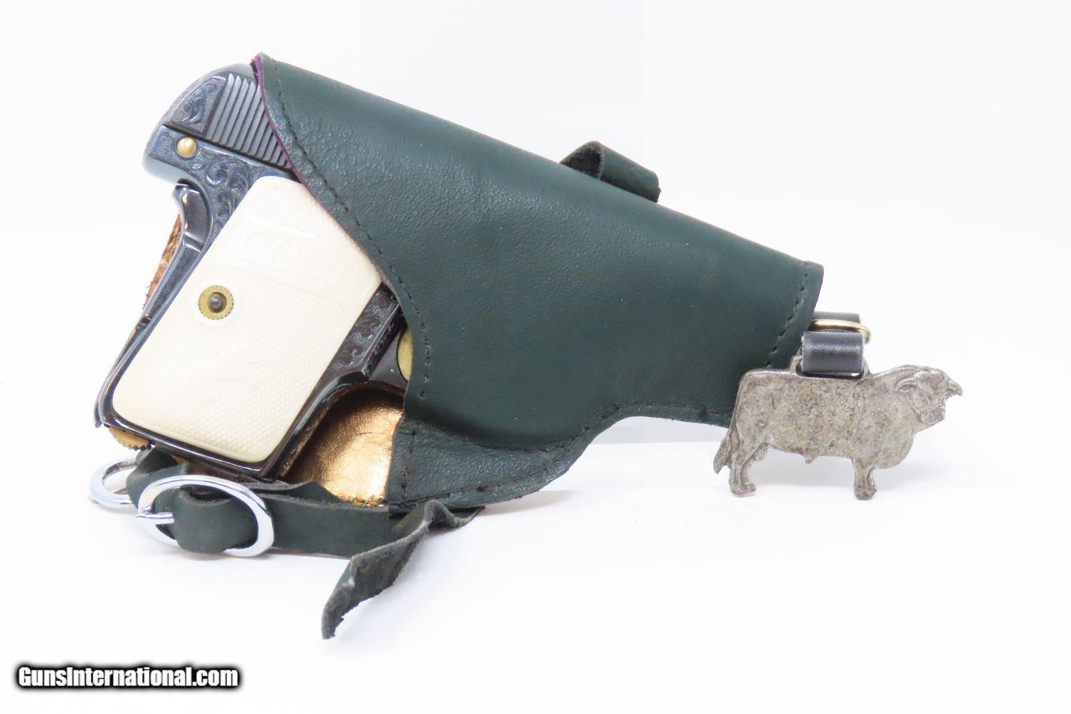 ENGRAVED Early COLT Model 1908 VEST POCKET .25 ACP Pistol HOLSTER 6.35 C&R