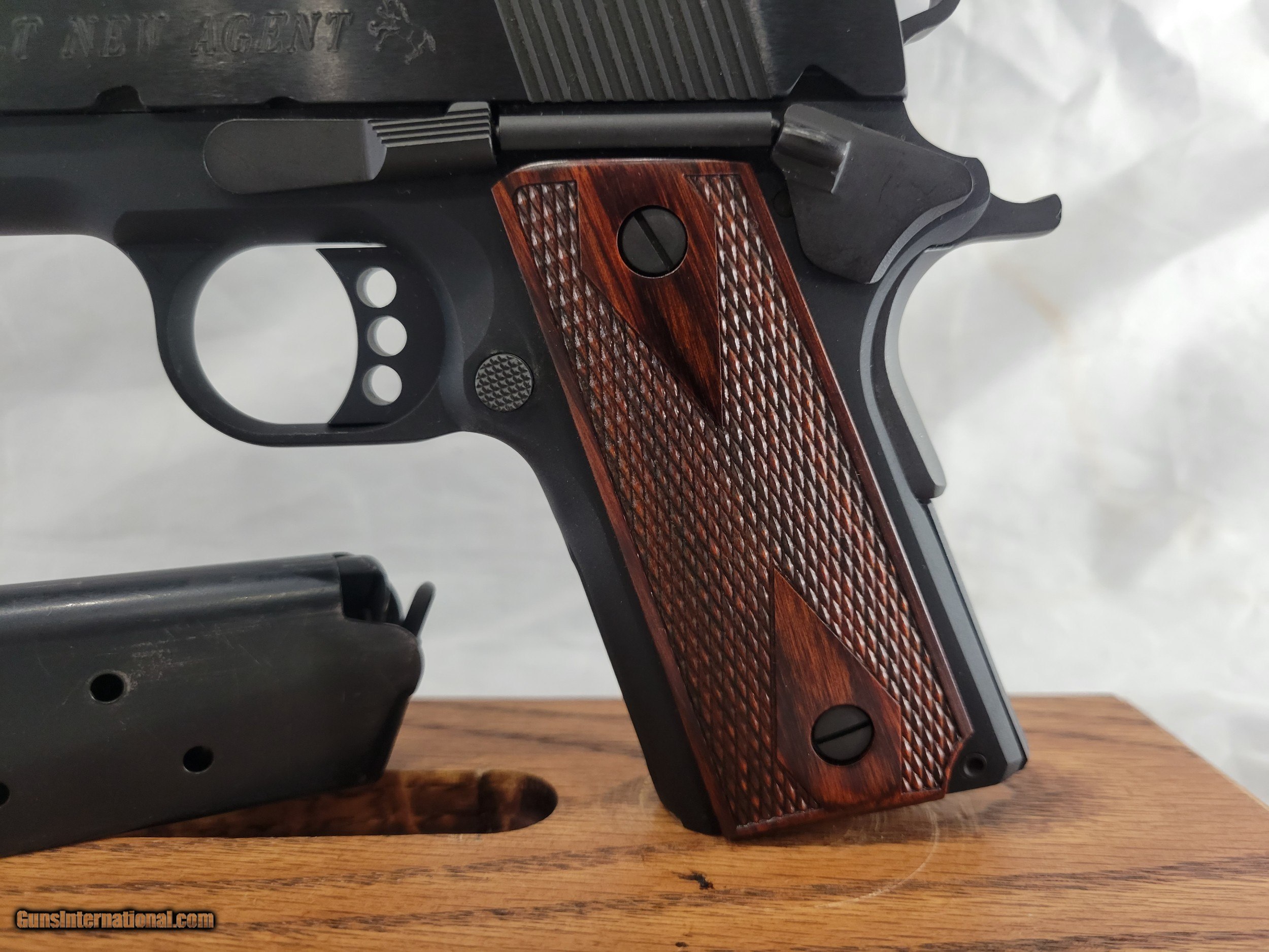 Description: INV. 11015 MINT COLT NEW AGENT CAL. .45 ACP. SER. GT117015. ABSOLUTELY BEAUTIFUL AND IN MINT CONDITION. THE SELLER SAYS HE SHOT ABOUT HALF A BOX AND DECIDED IT WAS A LITTLE MORE GUN THAN HE NEEDED. IT IS TRULY WITHOUT A BLEMISH ANYWHERE. THE GRIP STRAPS SHOW NO SIGN OF HANDLING. ALL PARTS ARE ORIGINAL TO THE GUN. THE BORE IS FACTORY NEW SUNSHINE BRIGHT WITH RAZOR SHARP RIFLING. NOT A WHISP OF FROST ANYWHERE. IT COMES WITH ONE ORIGINAL COLT MAGAZINE AND THE ORIGINAL COLT PLASTIC BOX. VERY MODESTLY PRICED AT... $895.*** To purchase this firearm or if you want to request more information contact us at: Email ckguns[at]ymail[dot]com Phone 201-512-0002 Cell 201-575-6838 FAX 201-215-4759 We accept most major credit cards. Prices shown are Discounted 3% for Cash or Check. The buyer must be familiar with all the laws governing the purchase and the ownership of firearms in their own city and state. The Yankee Armorer, Inc is not responsible for any failure to comply with or observe these laws. The Yankee Armorer, Inc will only ship after full payment and receipt of all required documents. Shipping: Add $35.00 for handguns, $45.00 for long guns. New Jersey buyers are subject to a 7% sales tax. The Yankee Armorer, Inc offers a 3 day inspection period with full refund upon return of intact firearm and in the original condition. The Yankee Armorer, Inc offers a no interest lay away program - 25% down; 25% in 30 days; 25% in 60 days; and full payment in 90 days. Any violation of this policy is subject to restocking and forfeiture of all payments. Any variation from this policy must be agreed to in advance. Unshipped Cancelled sales are subject to a 20% restocking fee. Be advised that all firearms sold by The Yankee Armorer, Inc. or the Gun Exchange, LLC (SELLER) are sold as collector’s items. They have not been fired or tested for safety and must be examined by a license gunsmith prior to use. By purchasing any item from the (SELLER), you are agreeing to hold the (SELLER) free from any damages or lawsuits of any nature. Any item left for transfer or storage will be charged to $25.00 per month, per item from the day of its receipt. Any variation from this policy must be agreed to in advance. Store hours 10:00 am to 5:00 pm Tuesday -Saturday. It's always best to call for appointment. Store 201-512-0002, cell 201-575-6838. SOLD |