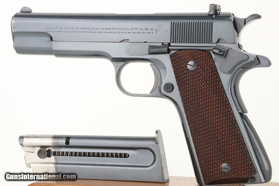 Description: This is a near-mint example of an early Colt ACE from 1931, chambered in .22 LR. It has retained nearly all of its original high polish bluing with just hints of muzzle and high edge wear and a few tiny marks on the slide. Fitted with beautiful wood grips and comes with one proper magazine. Mint bore. SOLD Curio/Relic: Yes Handgun Caliber: .22 Long Rifle |