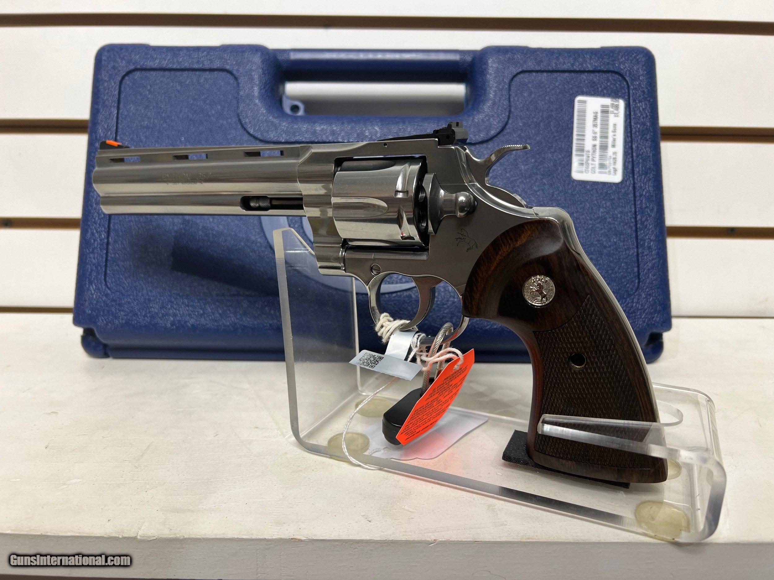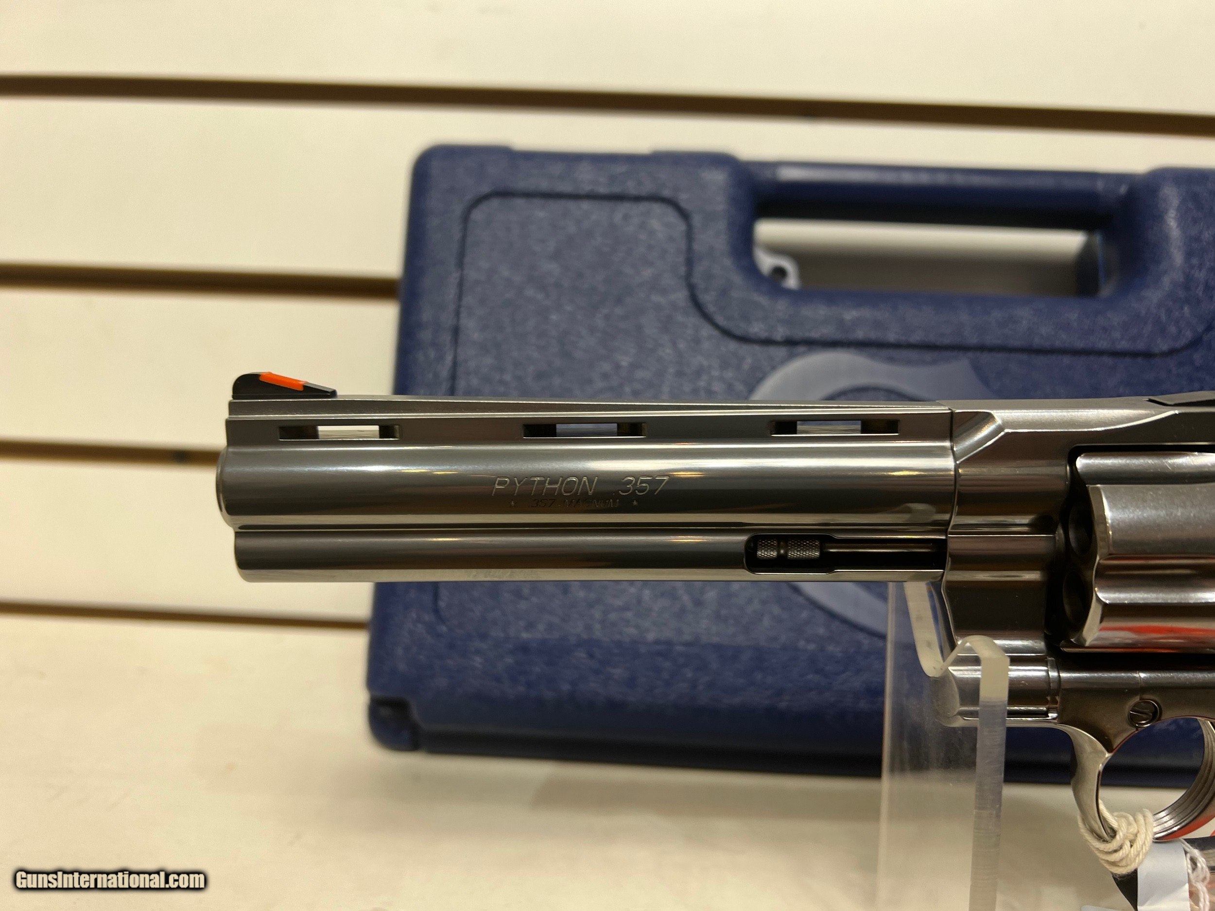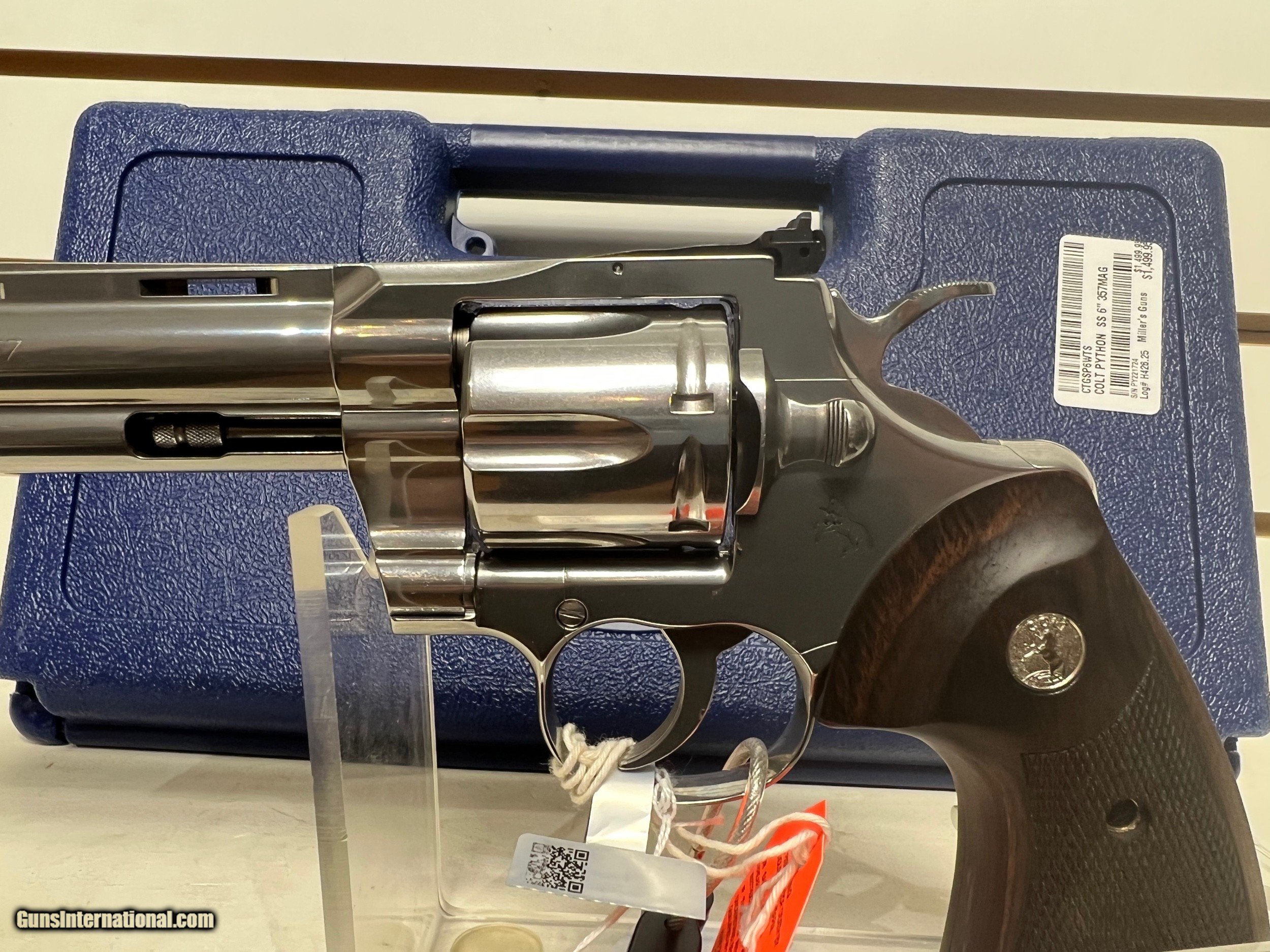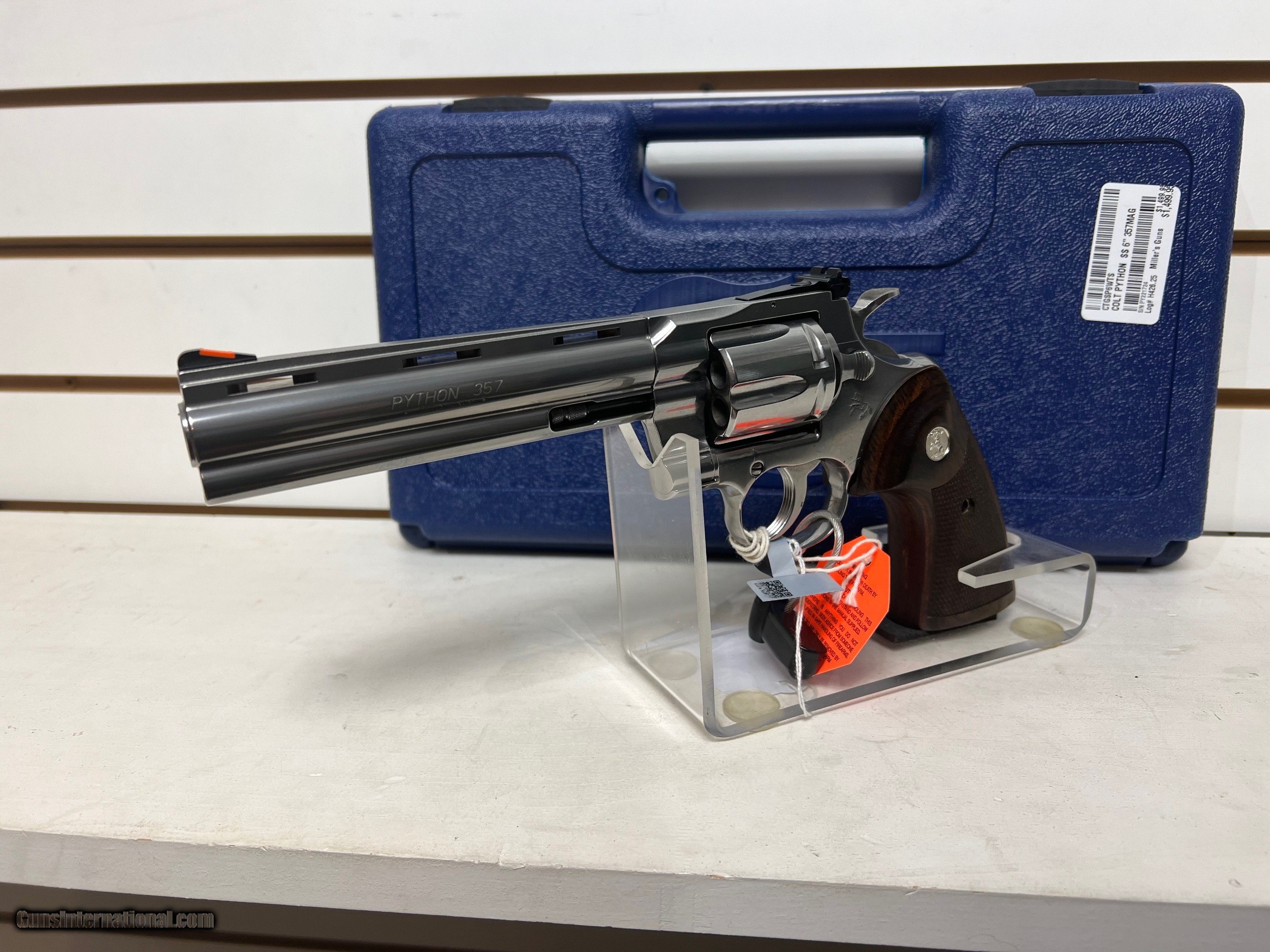 Description: New Colt Python 6" SS 357Mag The Python is back. Building on Colt’s Snake Gun legacy, the legendary double-action revolver returns in stainless steel in 4.25” and 6” barrel lengths. The 2020 Python features modern stainless steel alloys and a re-designed rear sight. Thirty percent more steel beneath the rear adjustable target sight gives you a stronger revolver and more robust shooting experience. A recessed target crown, user-interchangeable front sight, and Walnut grip with the iconic Colt medallion make this a gun you’ll want to shoot AND show off. The Python is chambered in .357 Magnum and also accommodates 38 Special cartridges. Buyer pays shipping Millers Gun Center Located in New Castle, Delaware "Home of TAX-Free shopping" No Credit Card Fees SOLD Handgun Caliber: .38 Special, .357 Magnum Manufacturer: Colt Model: Python Serial Number: PY221724 Barrel Length: 6 Condition: NEW |
