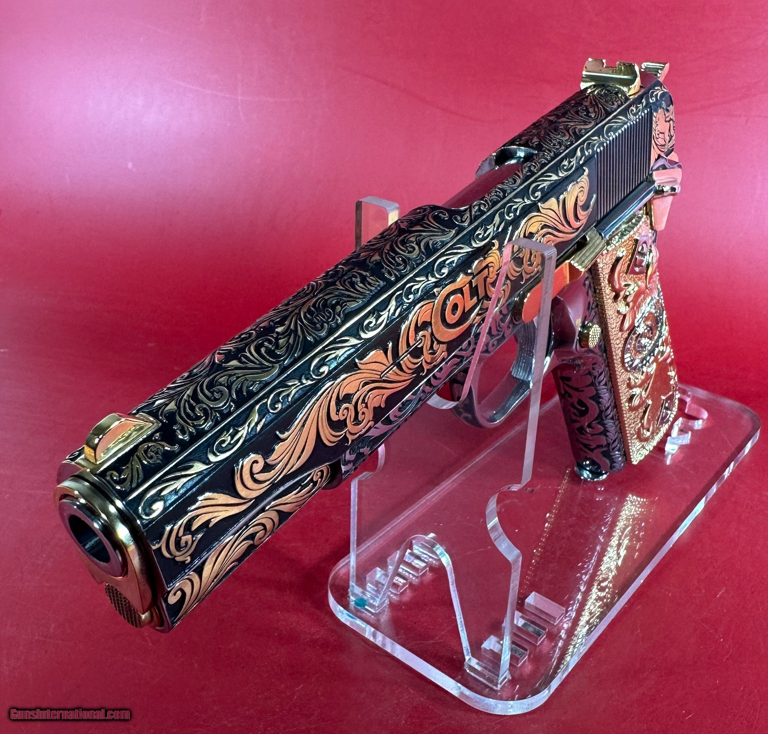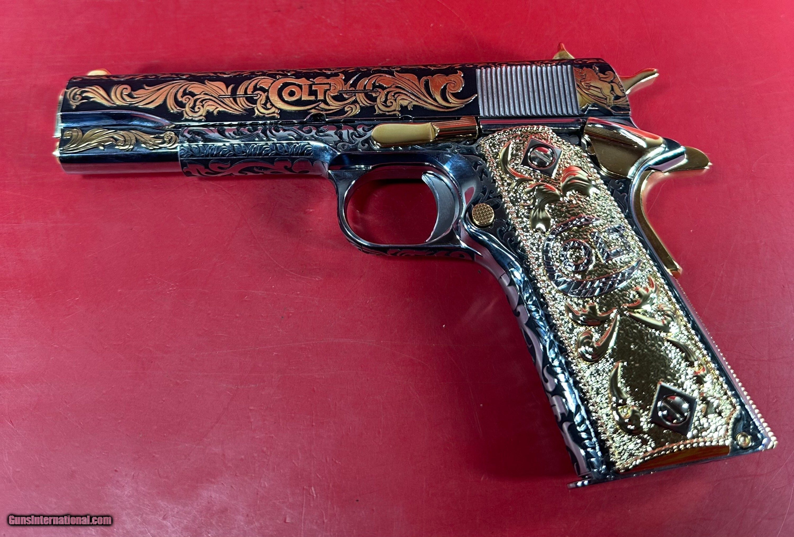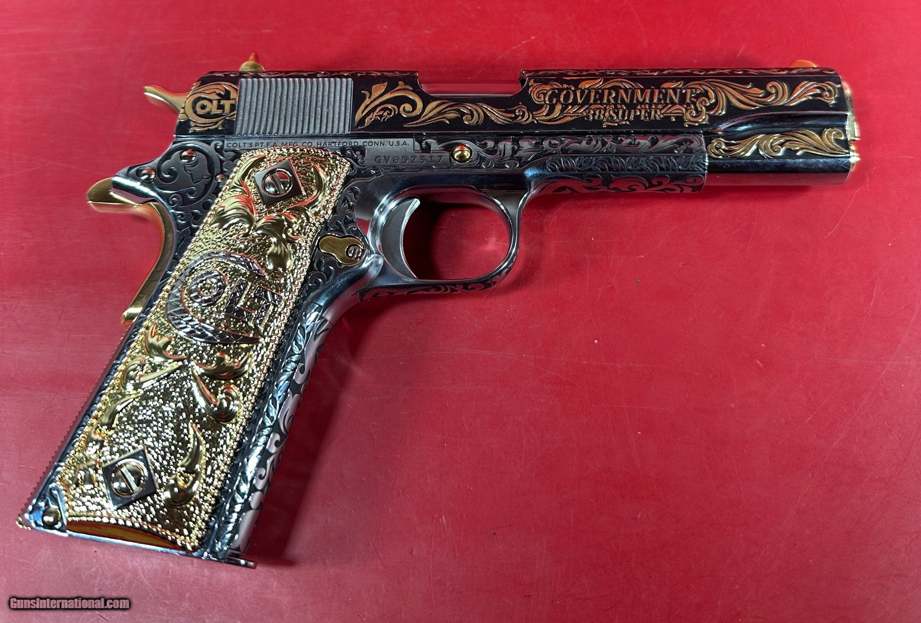 NIB Colt 1911 Government. Engraved, Gold Plated .38 Super. Stunning.