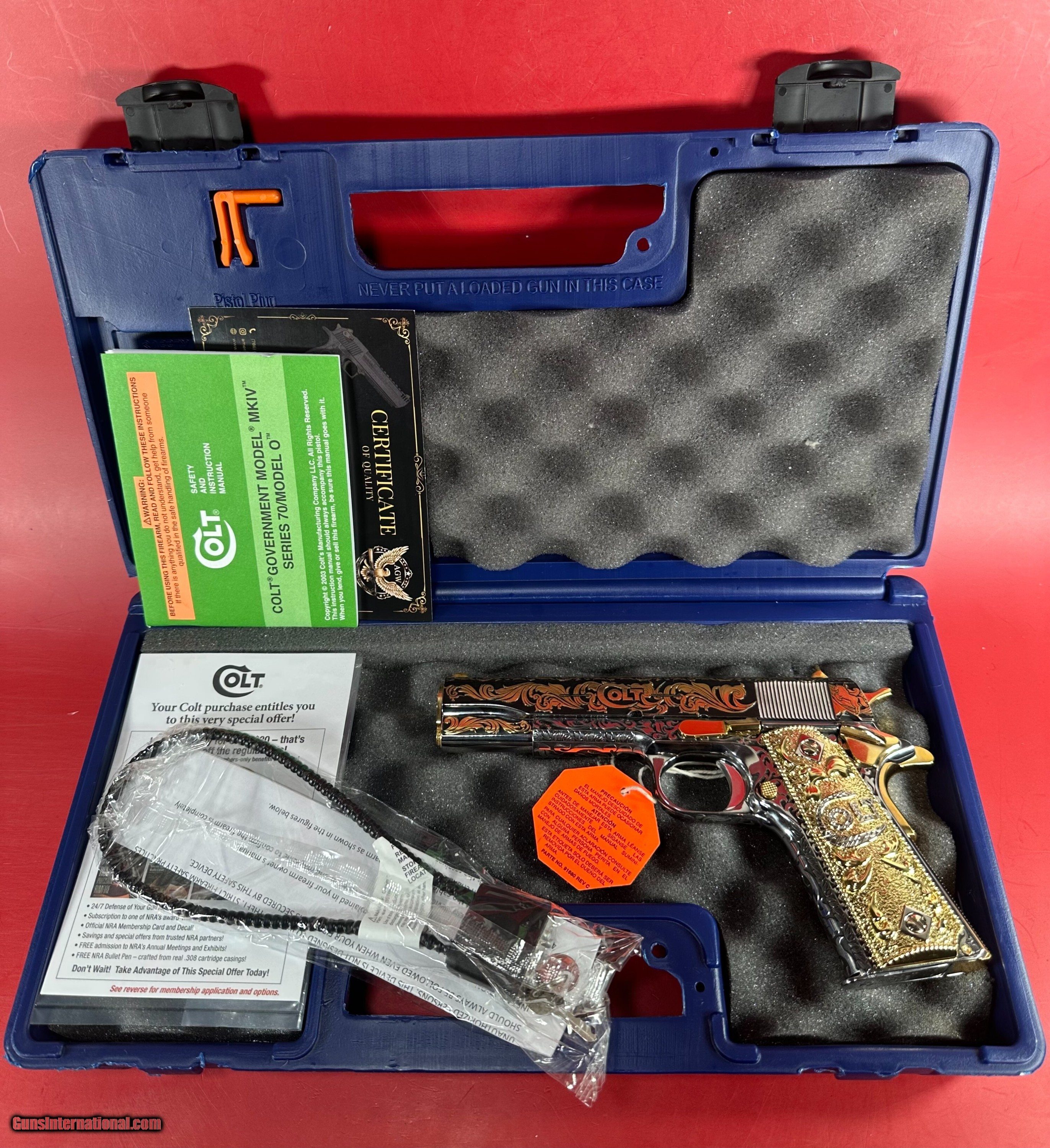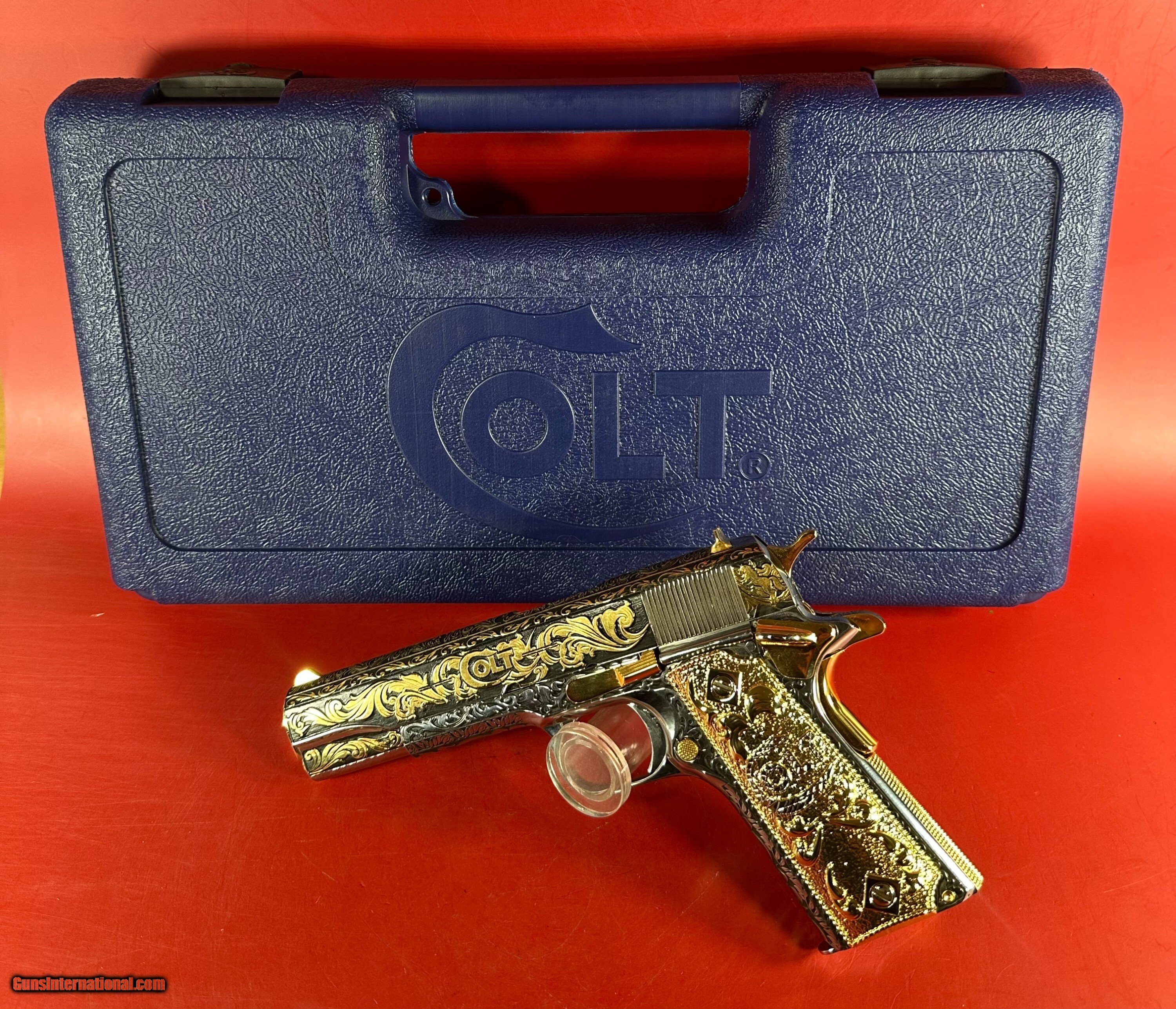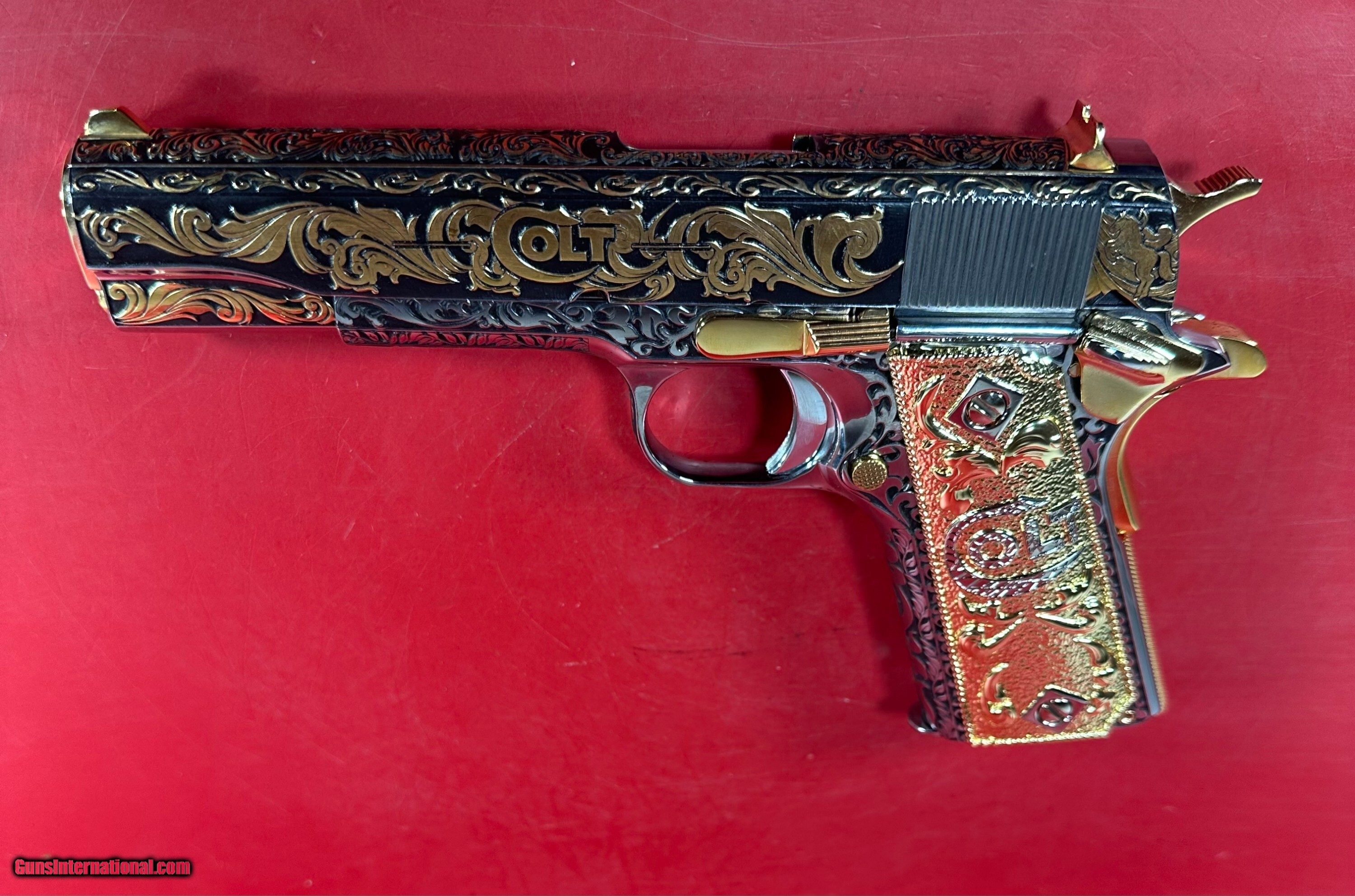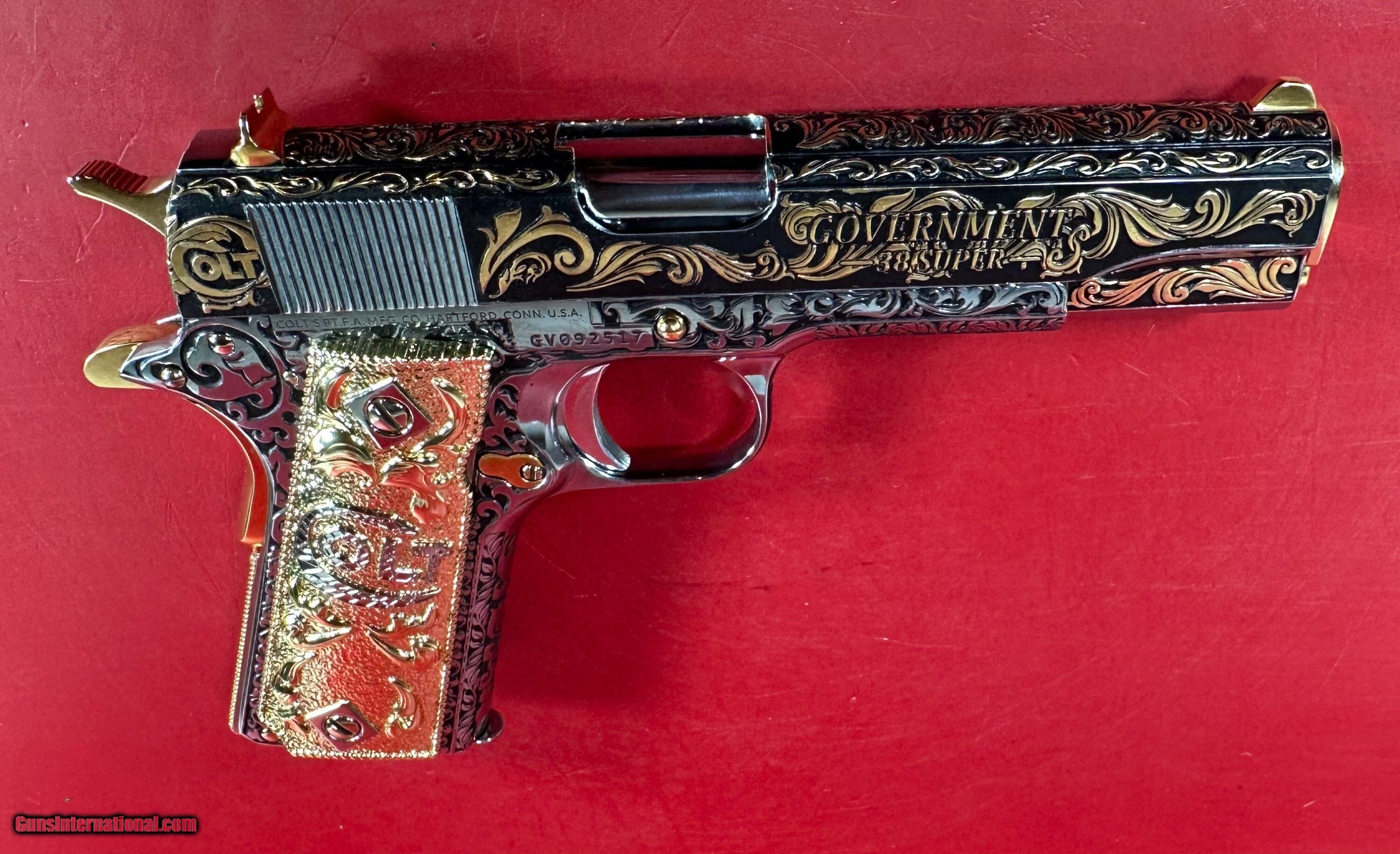 NIB Colt 1911 Government. Engraved, Gold Plated .38 Super. Stunning.