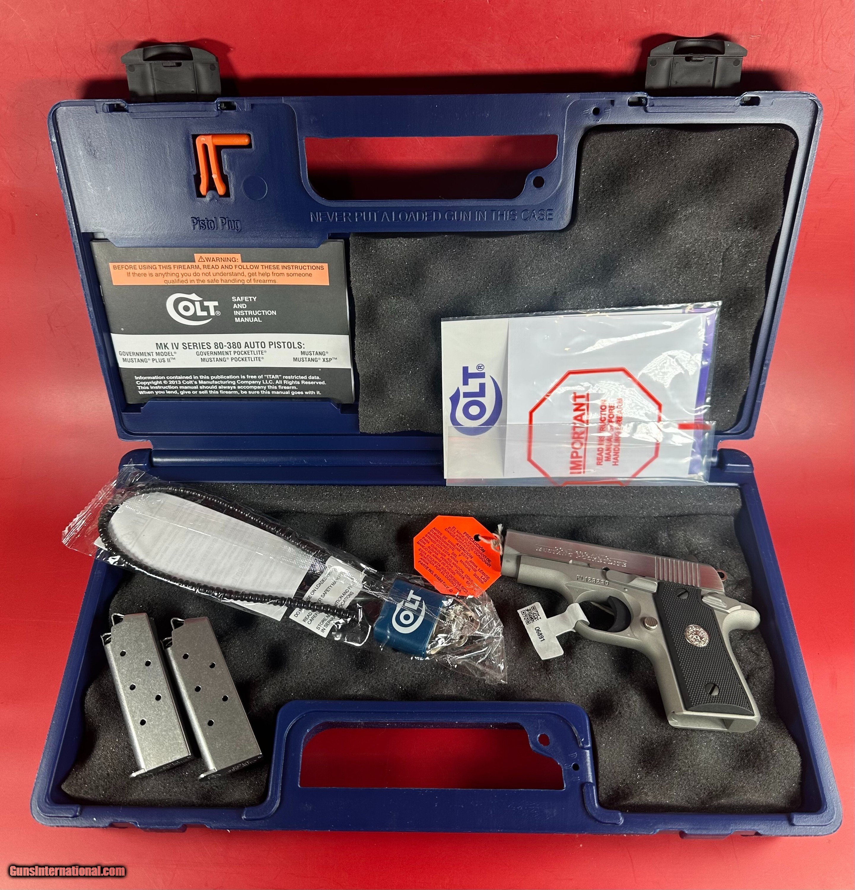Description: The Colt .380 Mustang Pocketlite and Mustang Lite are small, lightweight, and boast enhanced durability, reliability, and accuracy, making both ideal handguns for personal protection. The precise machining process, high-quality materials, and design improvements make the Colt Mustang Pocketlite and Mustang Lite two of the most consistent and reliable firearms on the market. With loaded magazines, each of these handguns weighs less than one pound. They both measure 5.5" long with a 2.75" barrel. The minimal weight and length of these guns, combined with the short single action trigger, grip design, frame design and firing pin safetyblock make the Mustang ideal for personal protection, or great addition to any collection. Pistol is in NIB condition. It seems to be unfired and has no handling marks anywhere. The trigger guard sticker is still there. Sale includes 2 original magazines (seem to be unused), manual and other paperwork, Colt safety lock, box serialized to the gun. This gun is an excellent choice for concealed carry and will make a great addition to any collection too. Don't miss it. Specifications