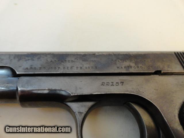 Nice Pre War Colt Model 1908 Blue .380 Automatic PIstol mfg. 1915