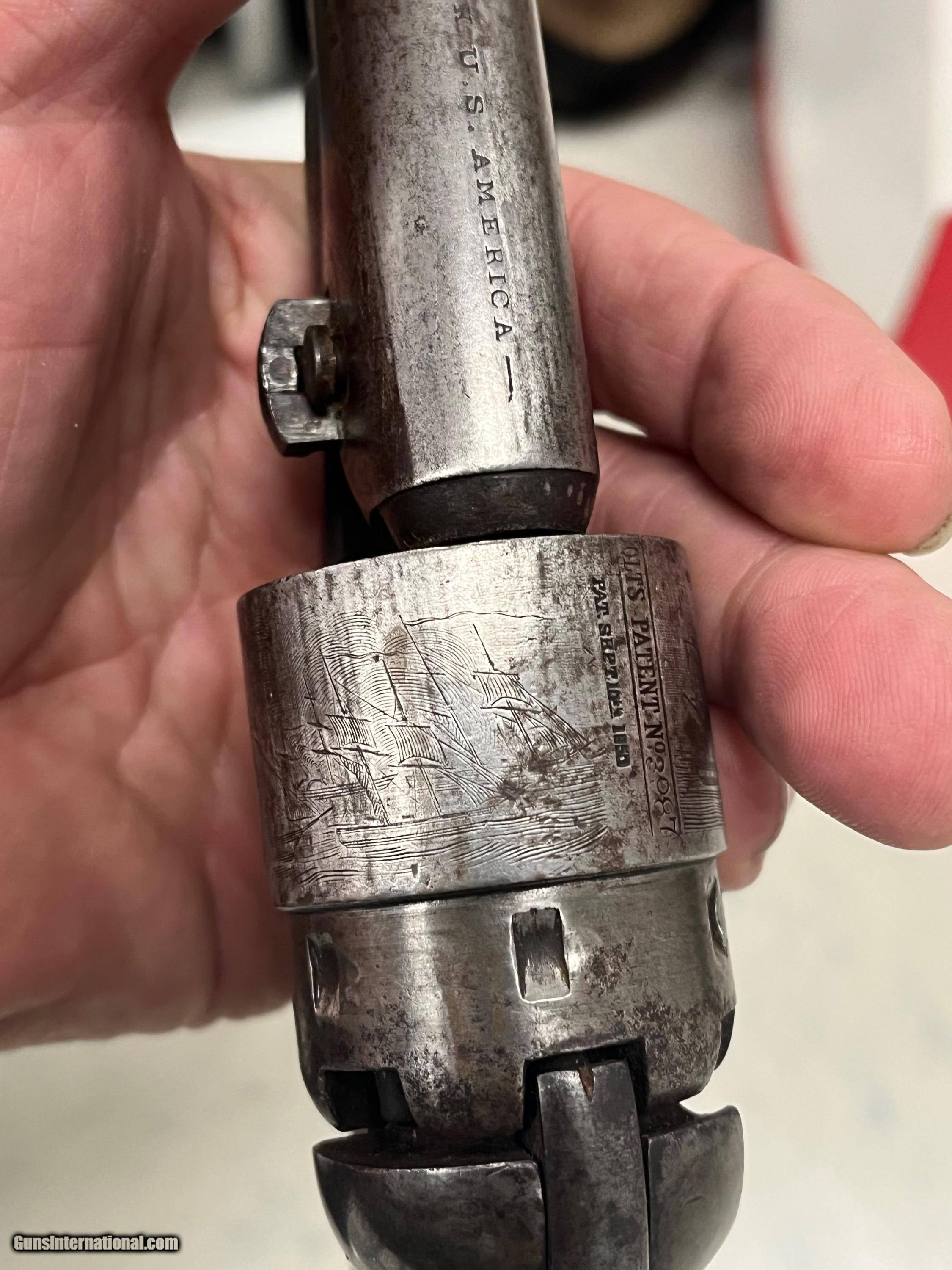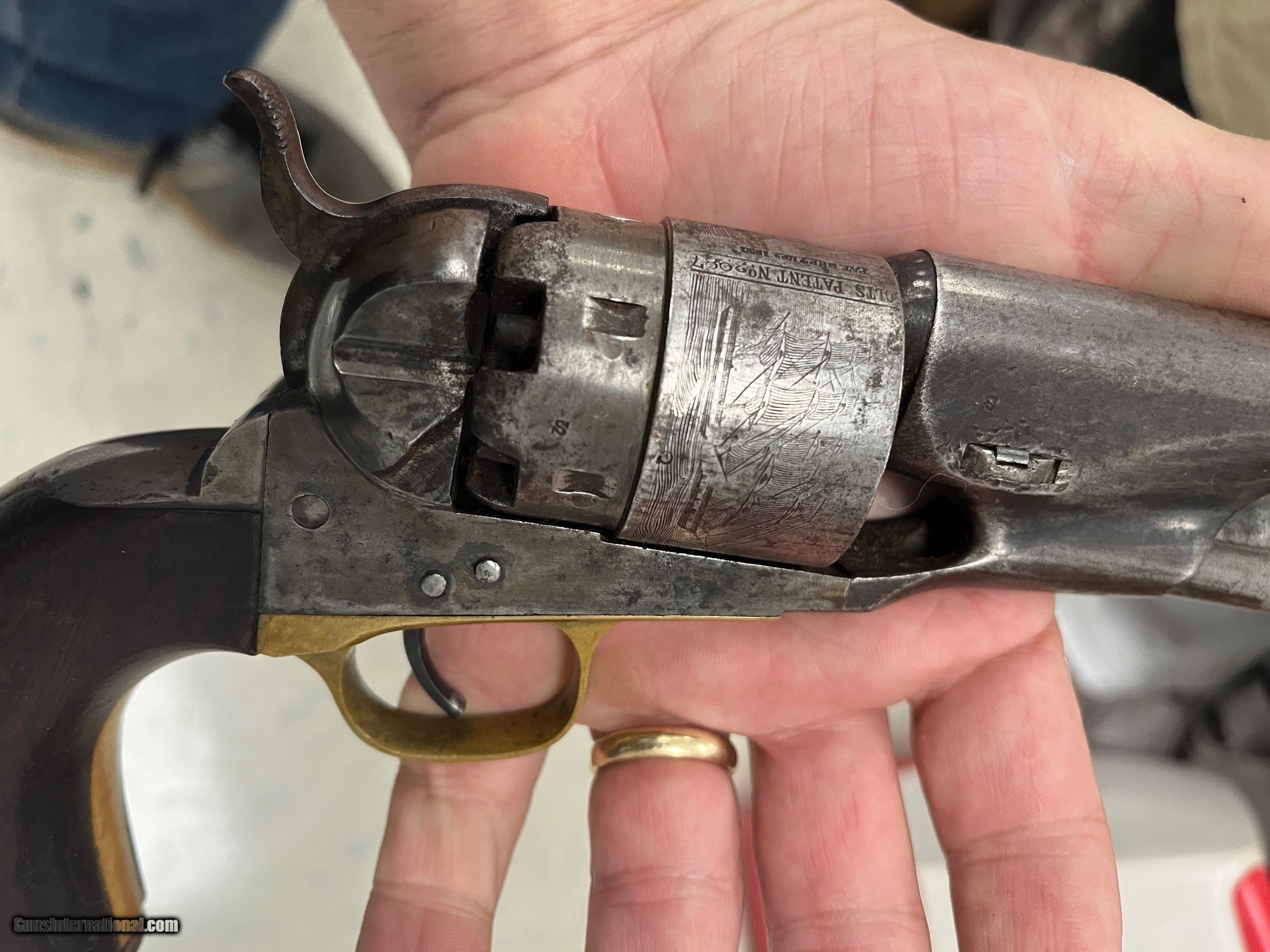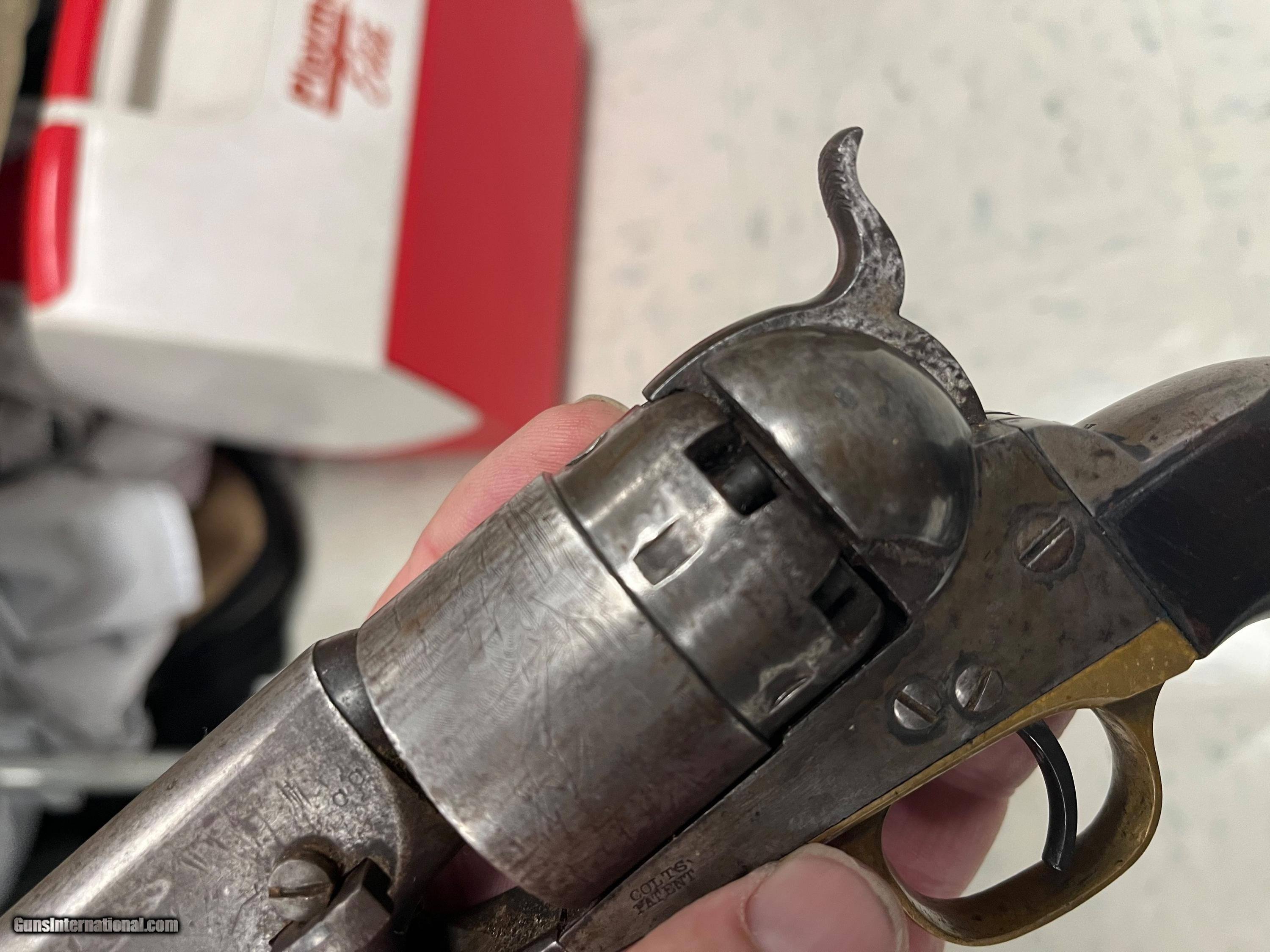 Description: Here is a really nice Colt Model 1860 Army 44 Cal. US government proofed grips . All matching serial numbers even wedge Serial #83987. 1862 production . Outstanding cylinder scene with some light original finishes . SOLD Curio/Relic: Yes Antique: Yes Handgun Caliber: .44 Colt Manufacturer: Colt Model: 1860 Serial Number: 83987 Wood Condition: Outstanding |