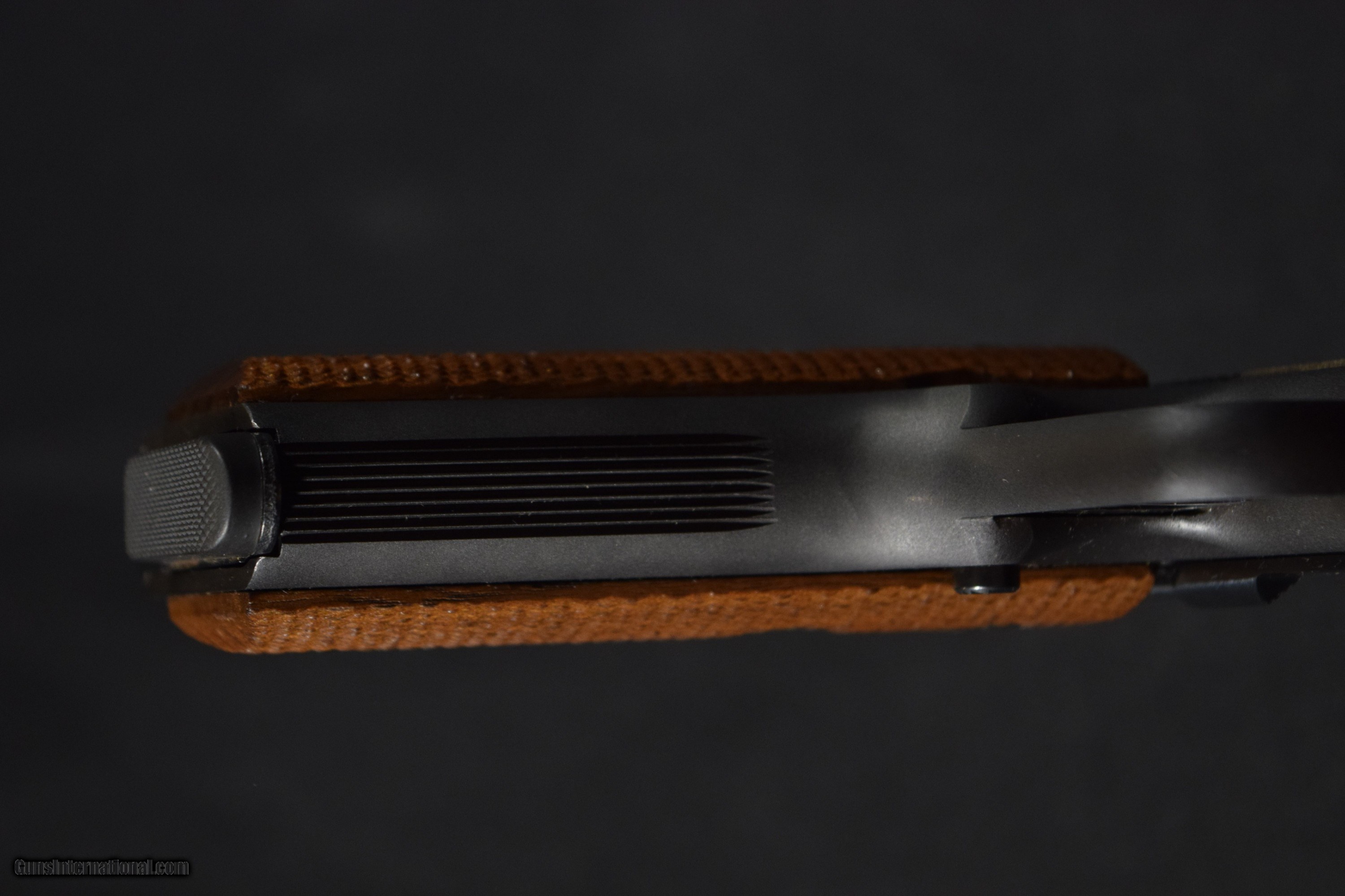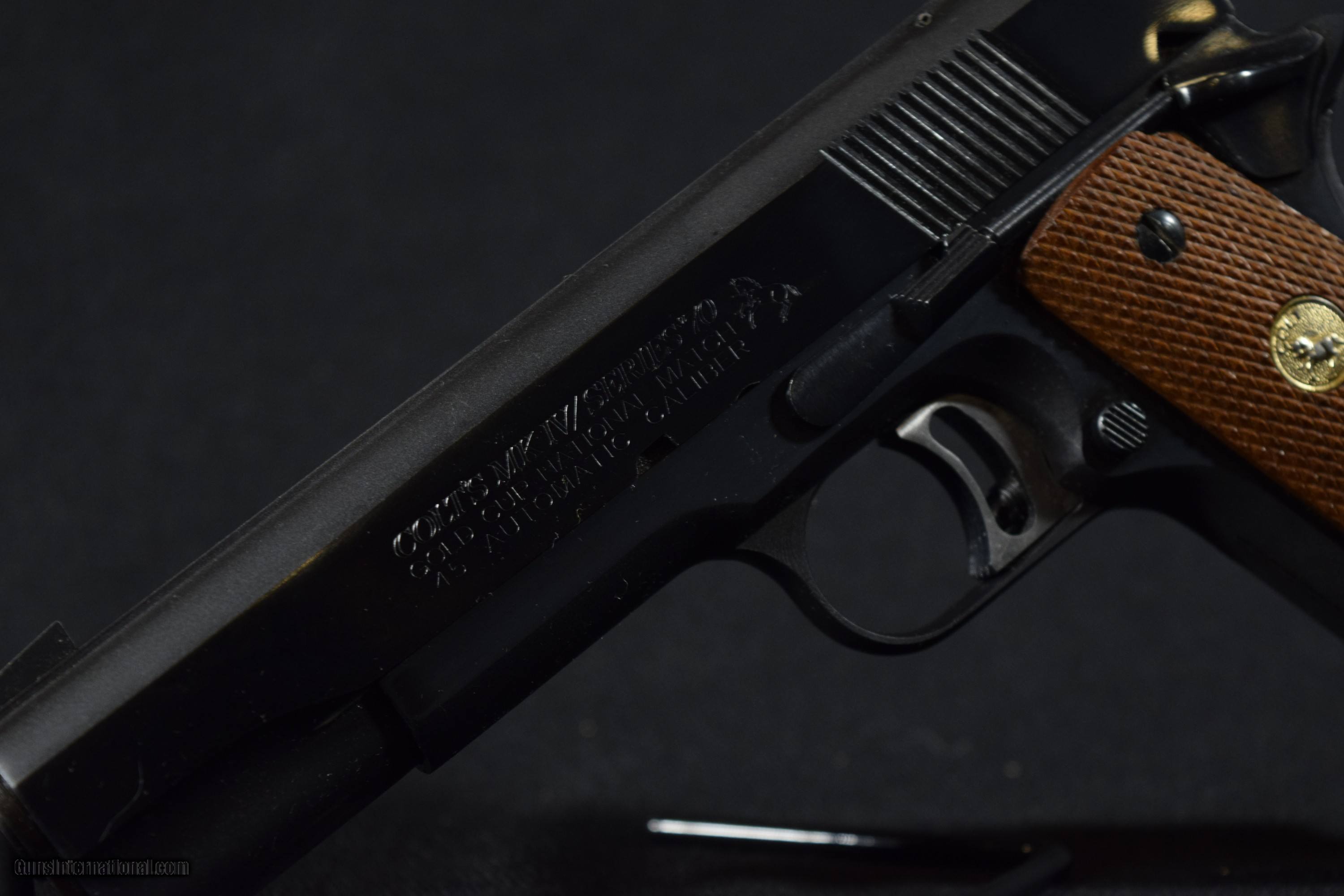 Description: The Colt MKIV Gold Cup National Match Series 70 45 ACP 5” is a masterpiece of American firearm engineering, meticulously crafted to embody precision, performance, and timeless elegance. Renowned as the gold standard in competition shooting, this pistol represents the pinnacle of Colt's expertise and heritage. This item does not come with a case and only one magazine. Overall condition is great with some minor wear from use. Pre-Owned - Colt MKIV Gold Cup National Match Series 70 45 ACP 5”