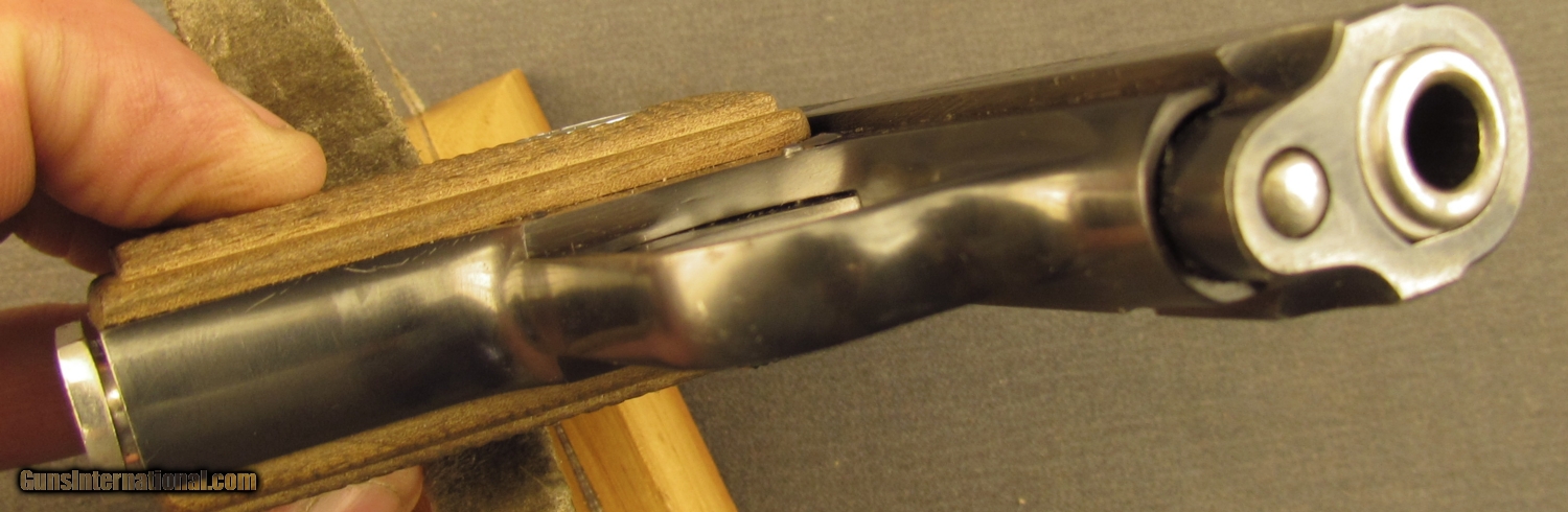 Description: S# 38355CC, 25 ACP, 2 1/4 inch barrel, bright excellent bore. This 1959 manufactured pistol remains in excellent condition with well over 90% blue showing very light silvering on high edges and a few scattered light scratches. The original checkered medallion grips show light wear with a few flattened diamonds. Pistol comes with two six round magazines, both are marked Colt on bottom plate. FFL or C&R. SOLD Manufacturer: Colt Model: Junior Serial Number: 38355CC Caliber Info: .25 ACP Gauge Info: .25 ACP |