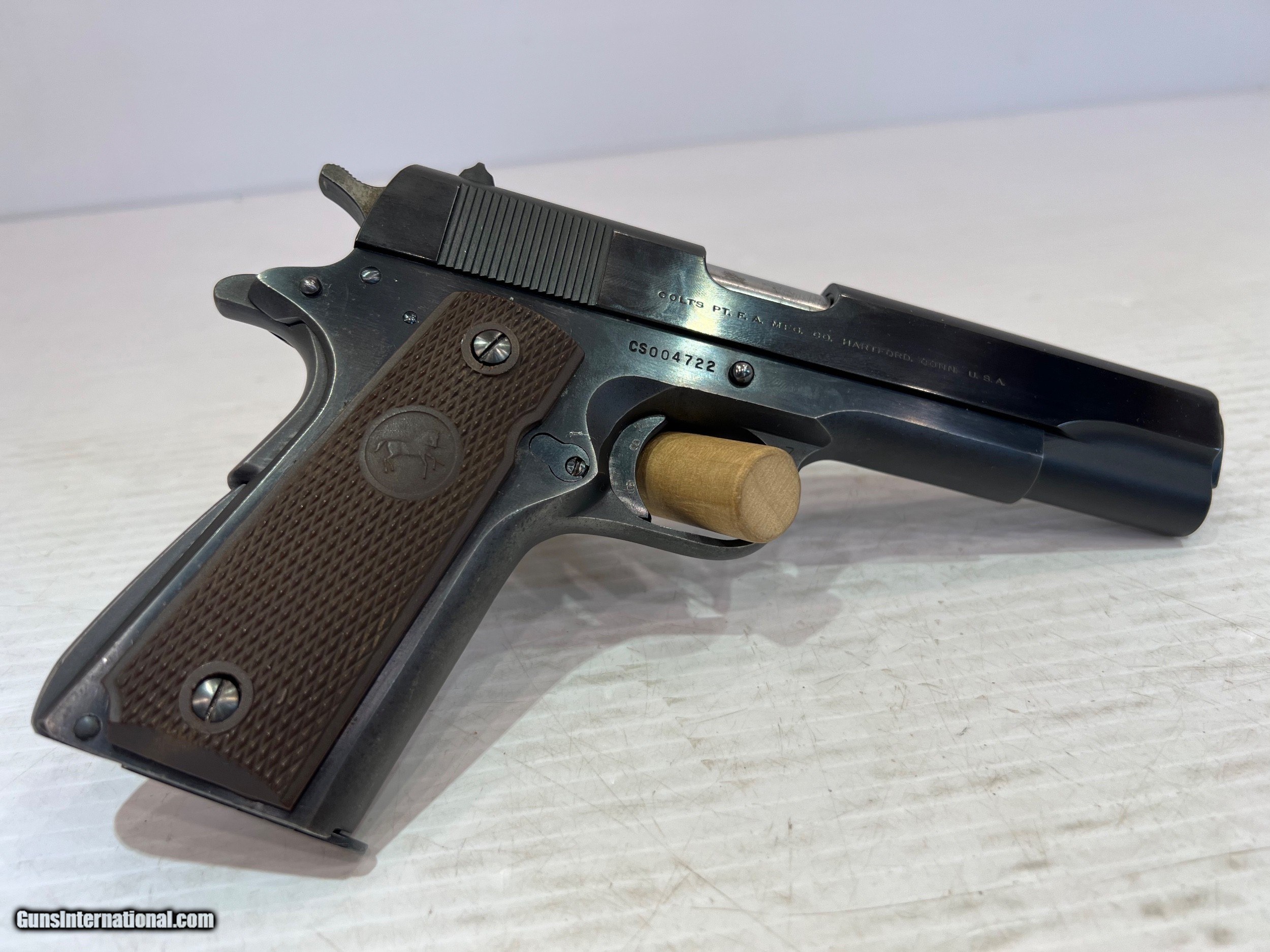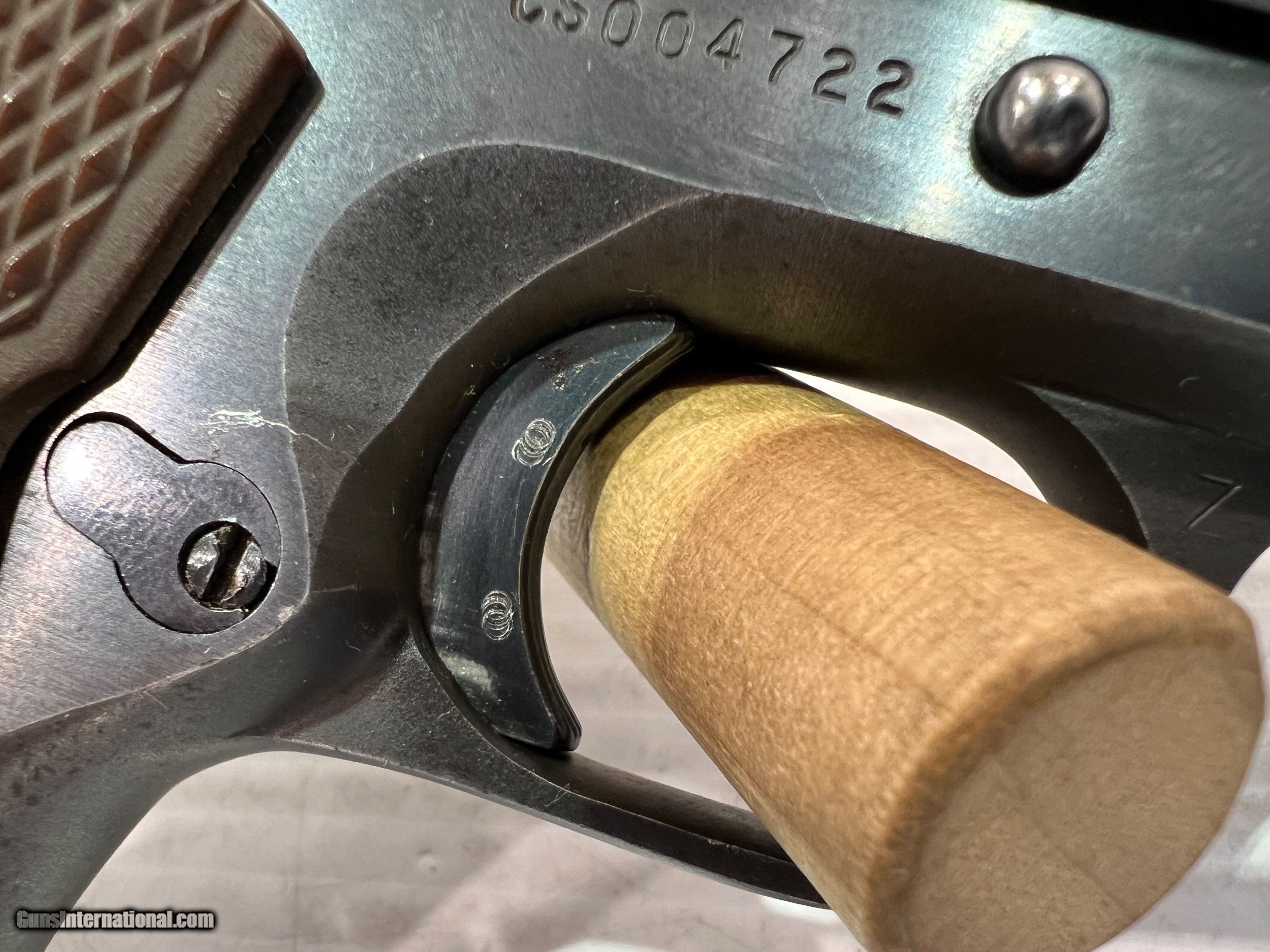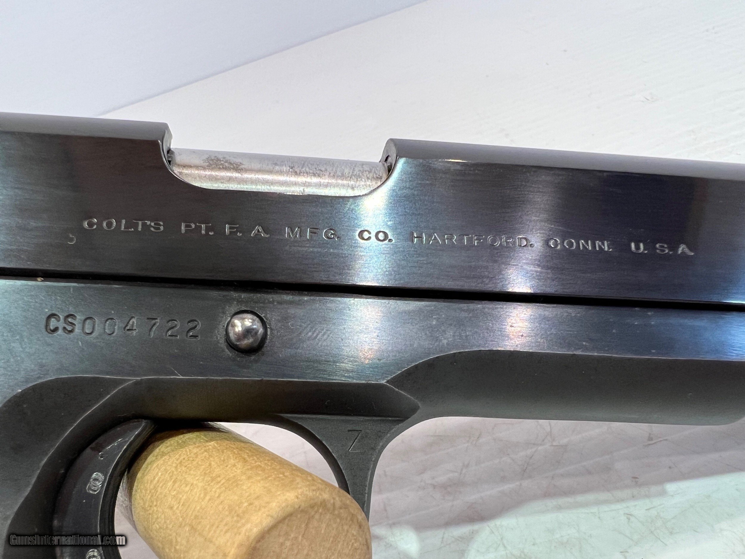Description: Used Lightly Handled Colt 1911 Super .38 Automatic .38 Auto, Semi-Auto Pistol, 5" Barrel Wood Grips, Blued Slide Finish, With Original Magazine, Early Model, Produced in 1970, No Box. WE DO NOT SHIP INTERNATIONALLY $40 Shipping. Pictures are of the item listed. Must be shipped to an FFL holder. The item is on display at our shop but will be taken off the shelf once the starting is met. Please feel free to contact us directly. Three day inspection from date items arrives at your FFL. Payment may be personal or cashiers check, money order or credit card "3% surcharge for credit card". QUESTIONS? CALL/TEXT STEVE AT 580.327.7372 SOLD Handgun Caliber: .38 Auto (.38 ACP) Serial Number: CS004722 |