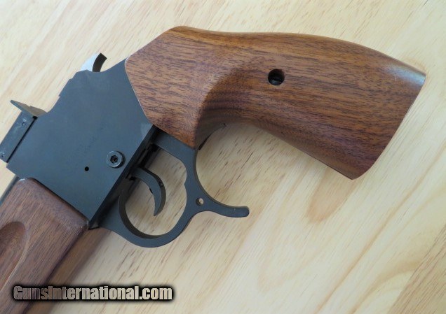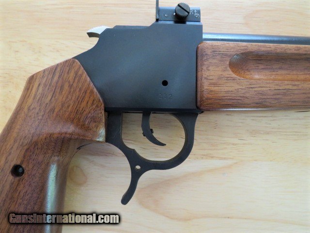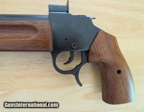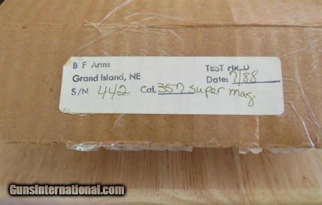 Description: Offered here is a very cool BF Arms single shot falling block silhouette target pistol. This item is chambered in 357 Supermag (357 Maximum). It was manufactured in Grand Island, Nebraska before the E. Arthur Brown Company assumed production; serial number is 442. This pistol has a 10-inch heavy, target barrel, adjustable trigger, adjustable front and rear sights and was factory-drilled and tapped for scope mounts. Mechanically excellent; It wears walnut stocks that show nice grain and color. These guns have a great reputation for accuracy. This gun is unfired beyond factory test and is in collectable condition. Would make an interesting competition, hunting or collectable. Not often available. The original box is provided – minus documentation. Please review the pictures to assess condition and contact me with questions; sold as-is. Shipping/insurance is included in the purchase price; item will be shipped by an FFL. An FFL is required to purchase. Please do not attempt to purchase this item if the laws of your state prevent receipt or transfer to you. Will be shipped according to the laws of the ship-to destination. SOLD Handgun Caliber: .357 Remington Maximum Manufacturer: BF Arms Barrel Length: 10-inches Condition: Like new Action: Falling block Triggers: Adjustable |