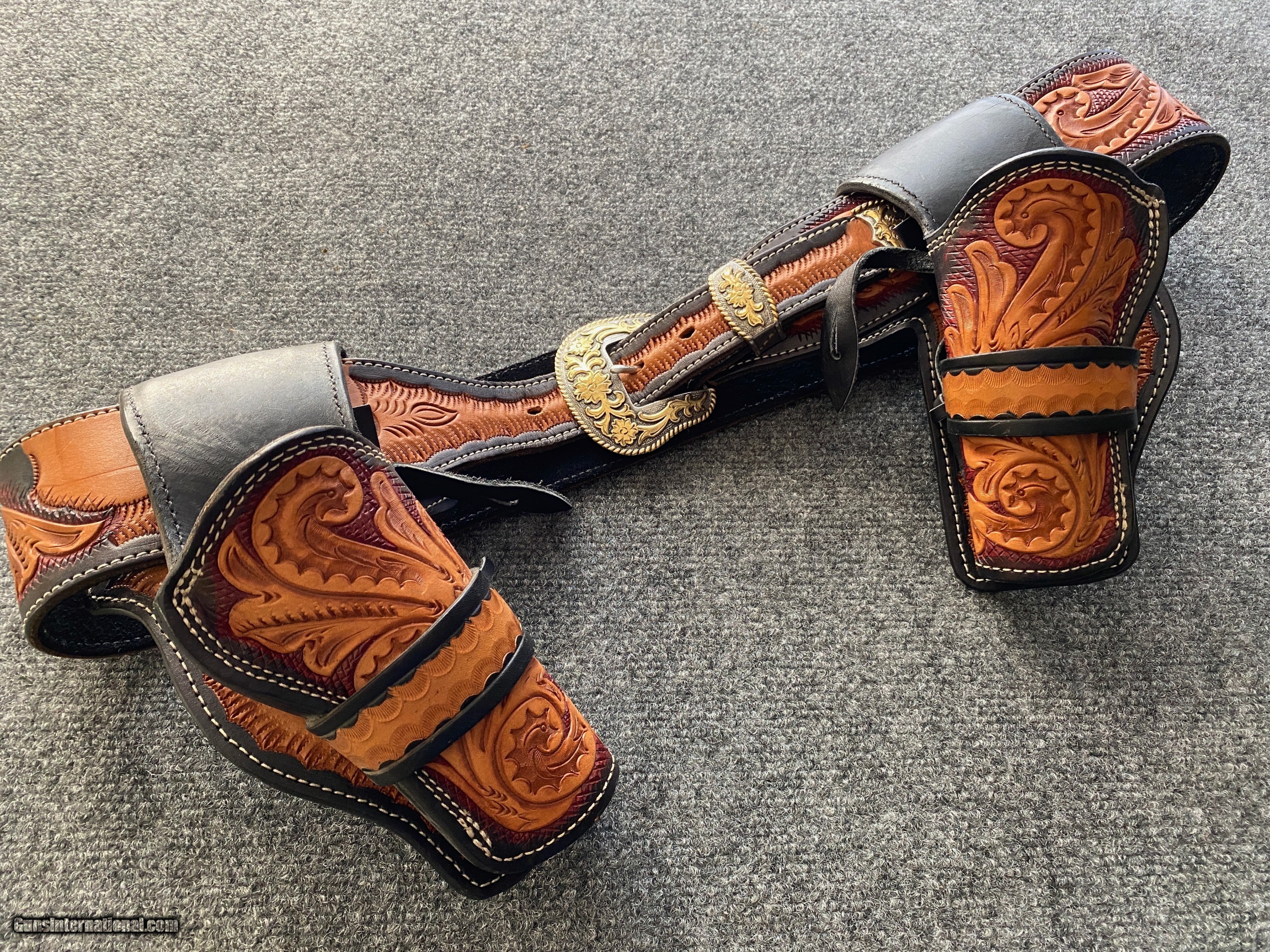 - Matching quick draw holster and belt rig, custom tooled by Bowman.