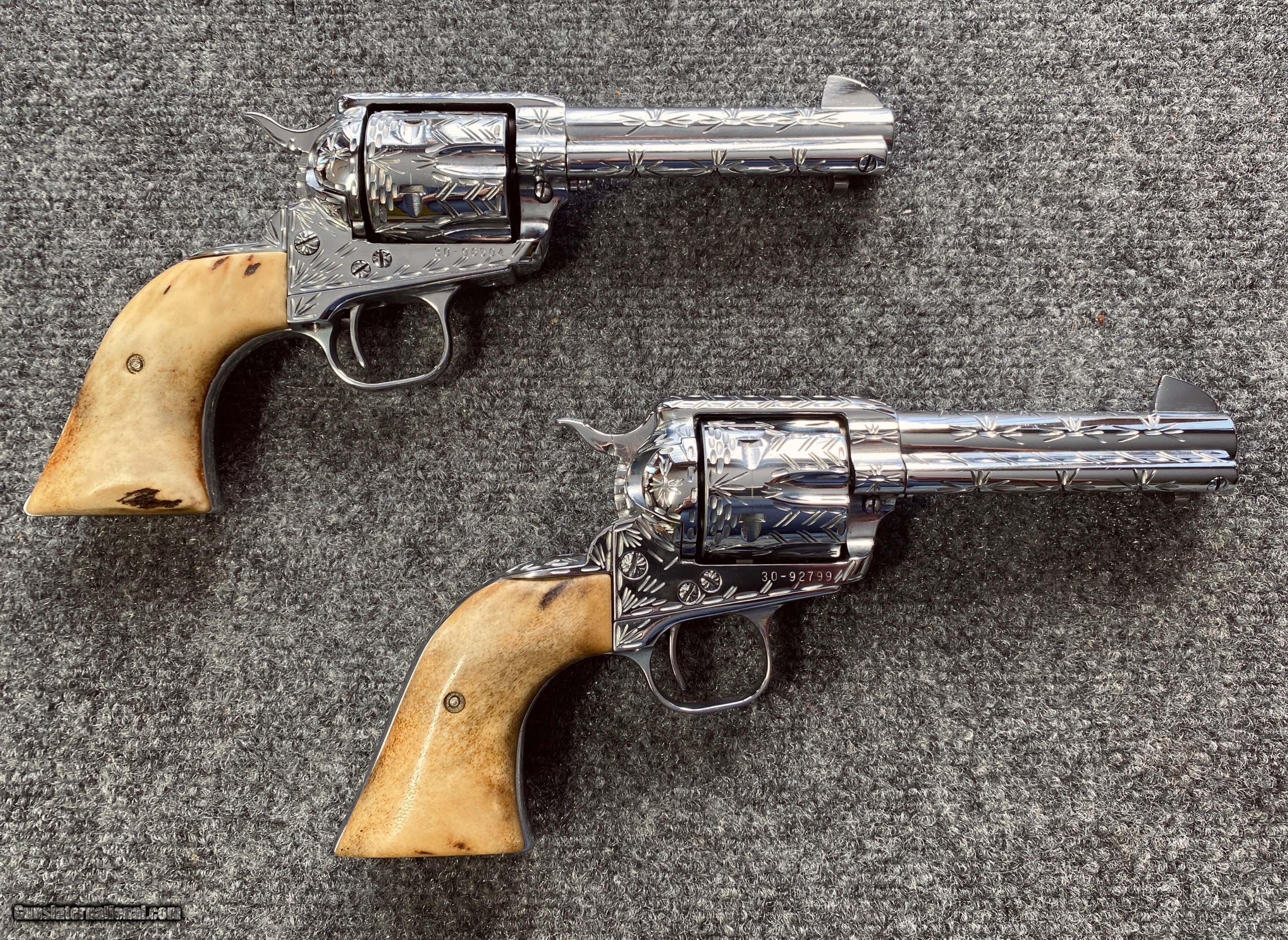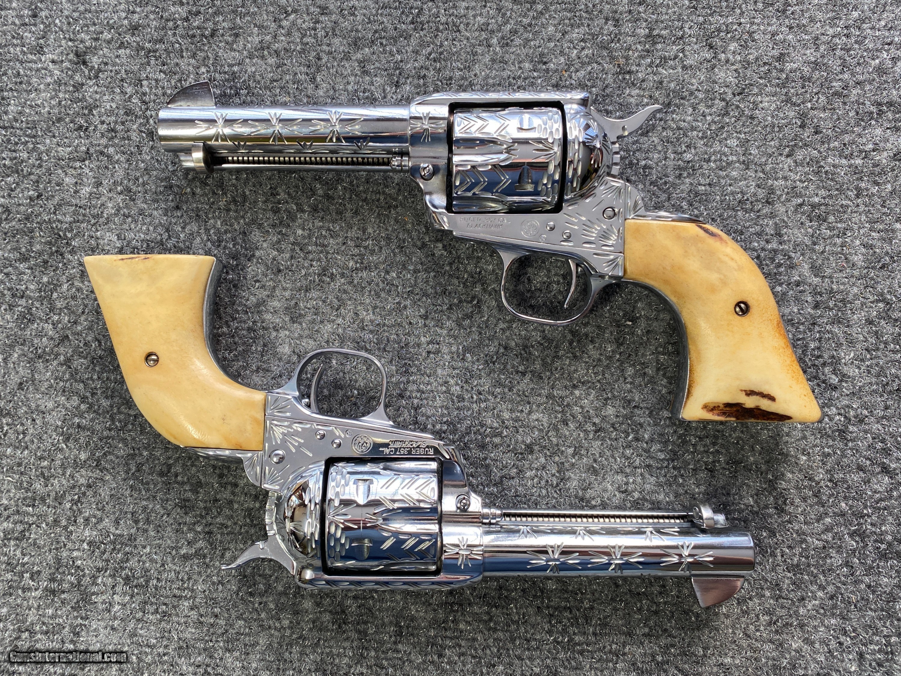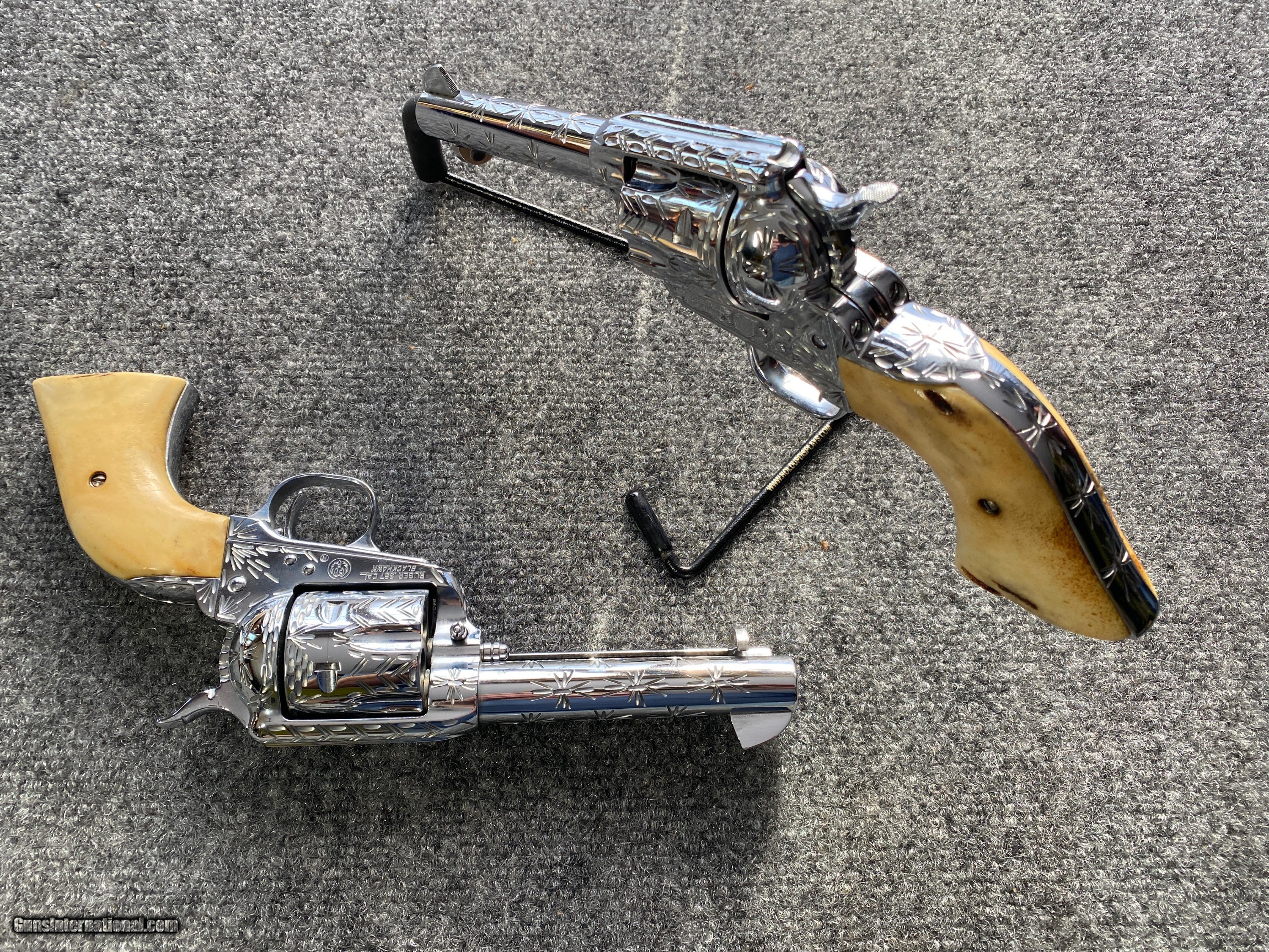 - 2 Ruger Blackhawk revolvers custom built and engraved by Joe Bowman.