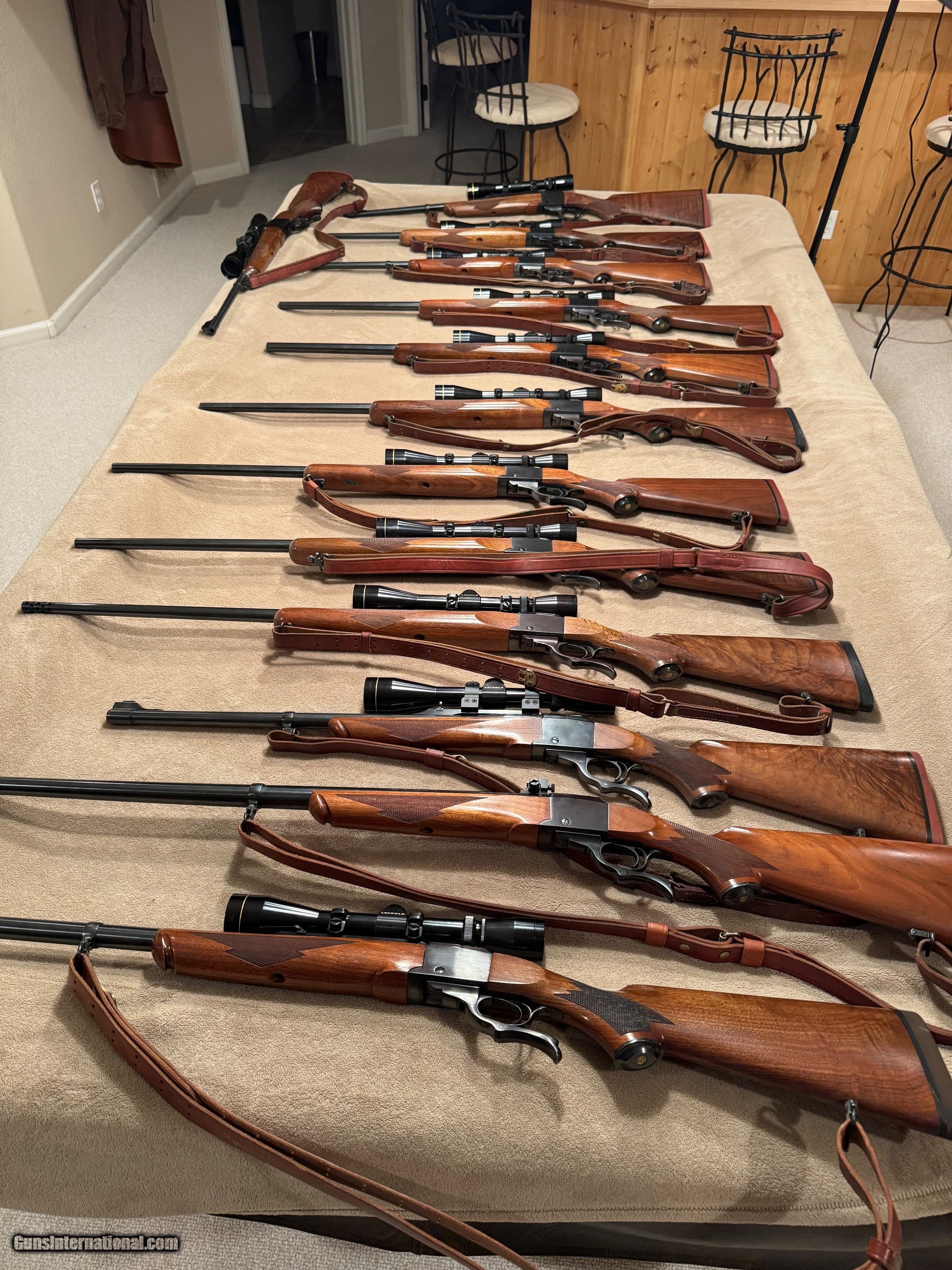 Very nice ruger no 1 collection. The majority of these rifles are in EXCELLENT condition, some are unfired. Caliber list in photos. More photos available upon request. Looking to sell the entire collection for $19500. 720998477six