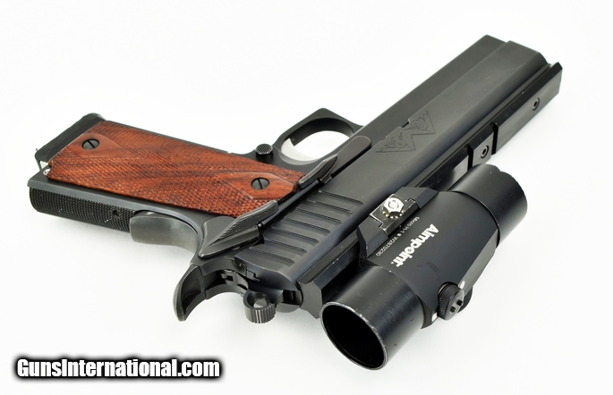 Description: Mountain Competition Schuem classic .45 ACP caliber pistol. Mountain competition pistol built with proprietary forged steel components to be super accurate and durable. Has an aimpoint micro H-1 sight. A world class bullseye pistol in excellent condition. Made to shoot best with 185 grain jacketed bullets.