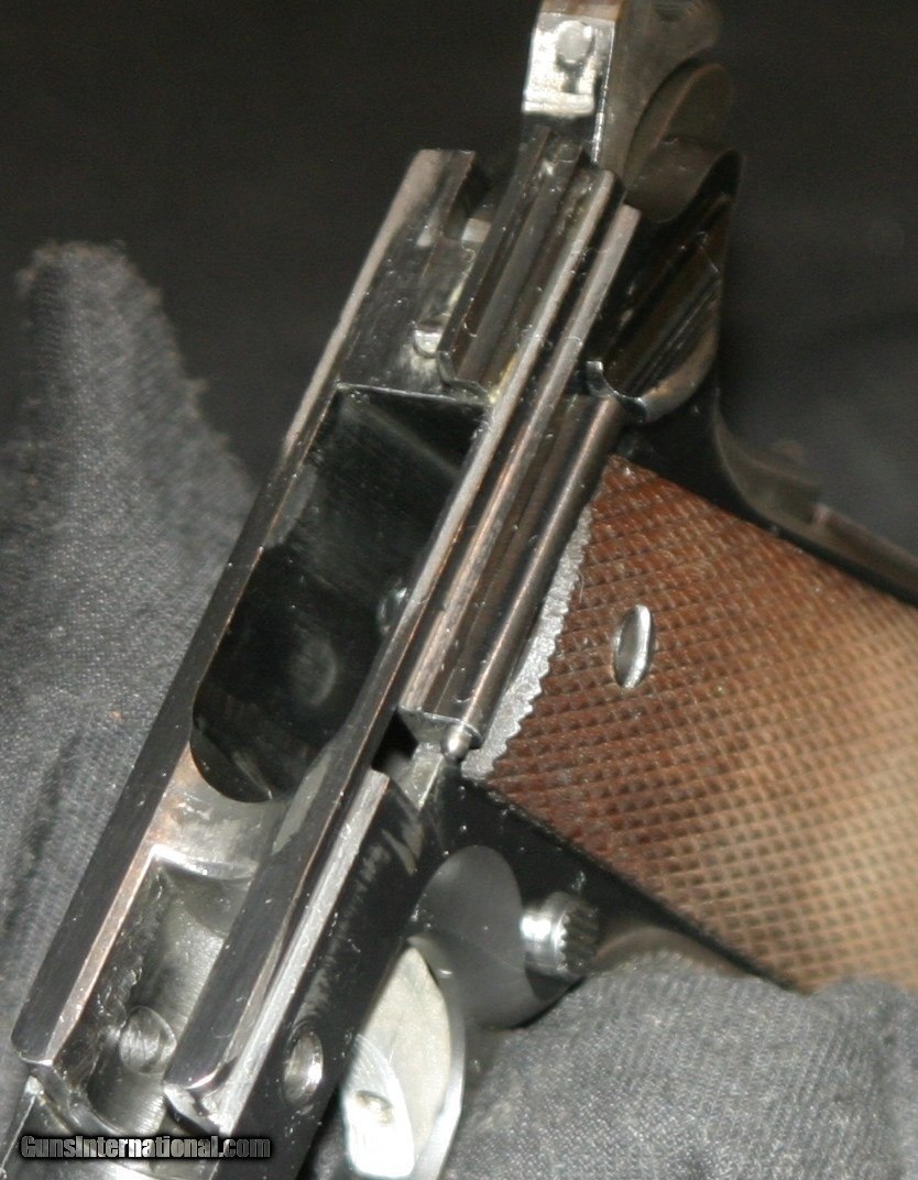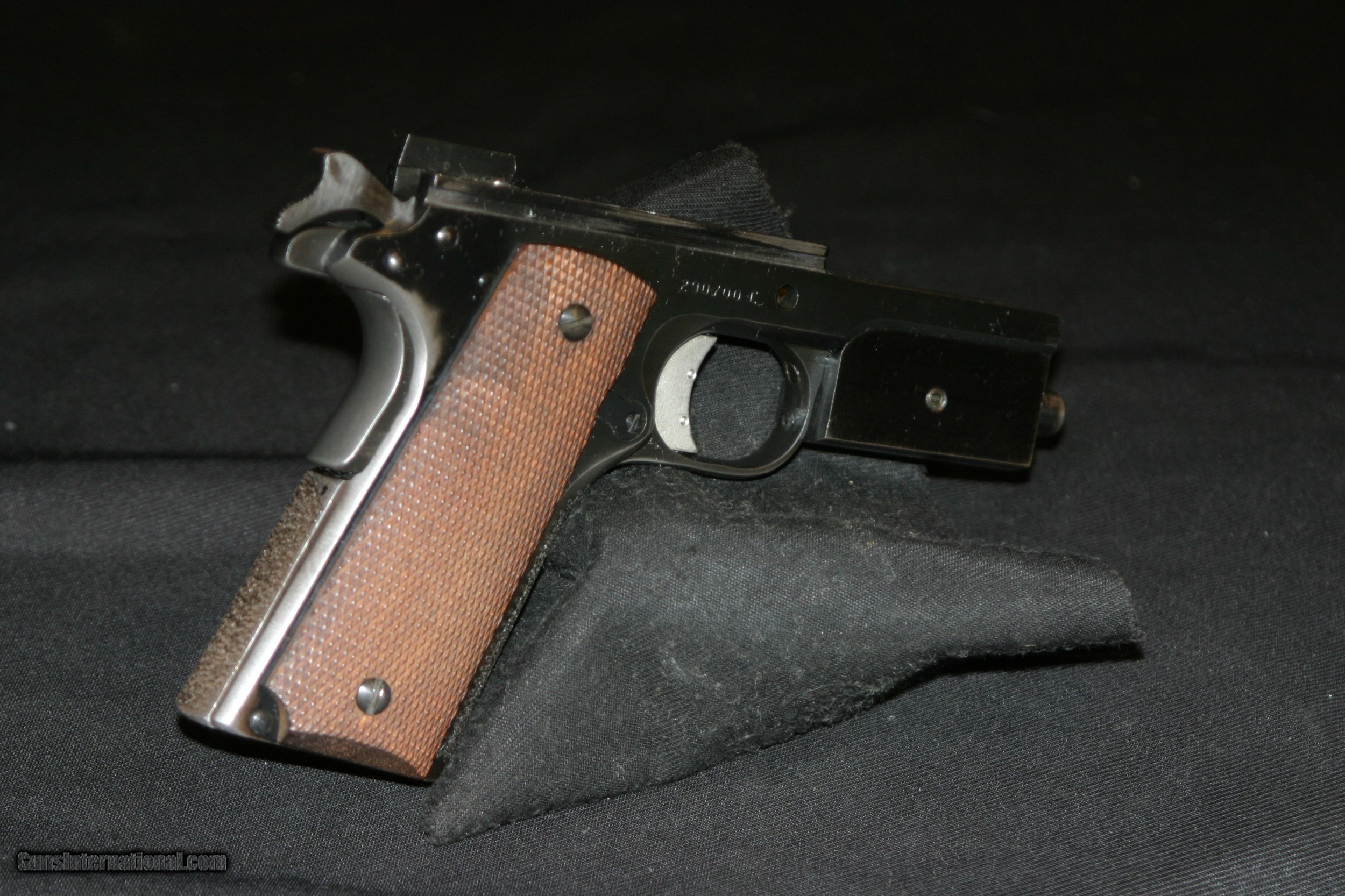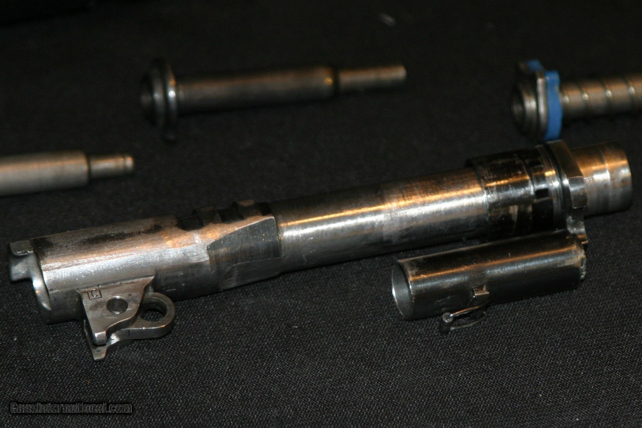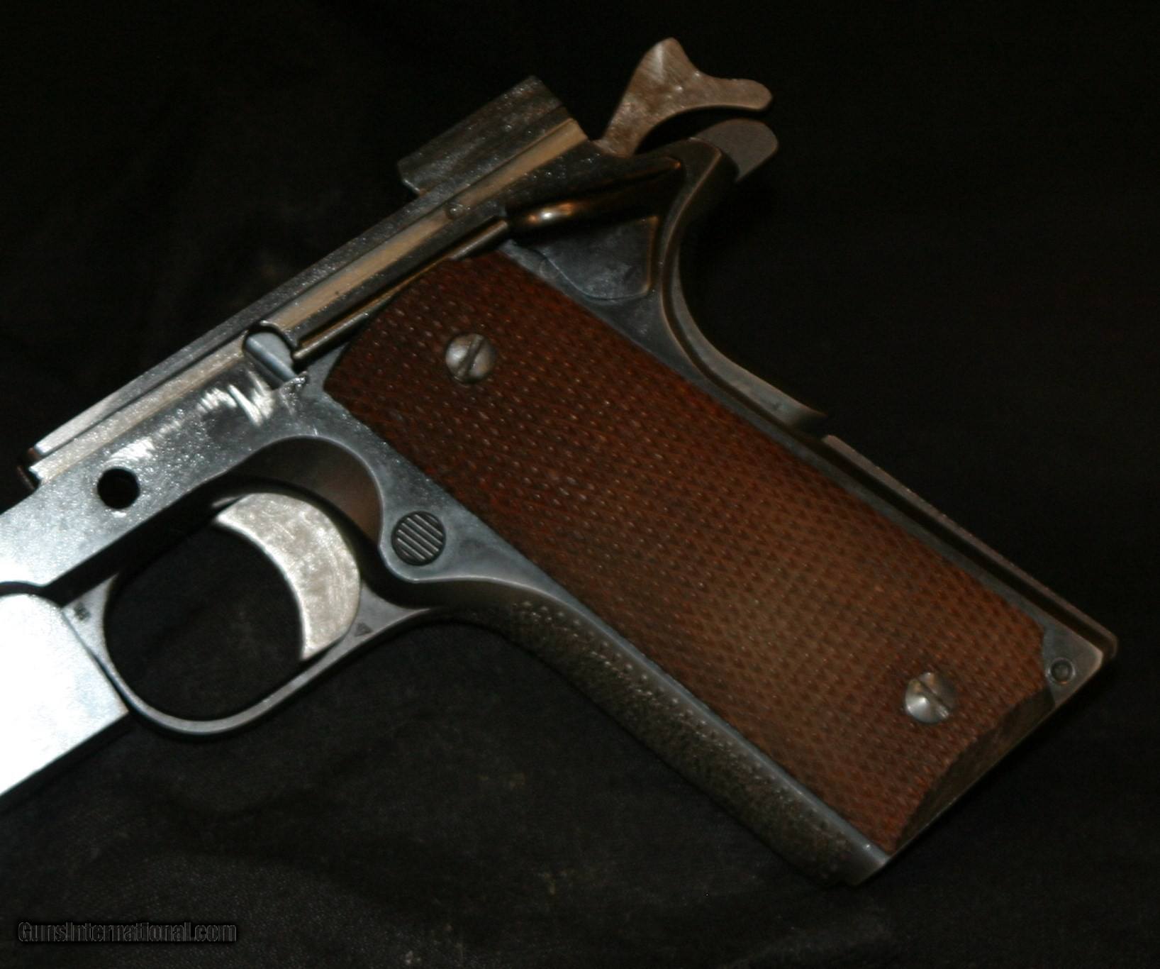 Description: LOTS OF PHOTOS FOR THIS VERY UNIQUE 1911 SET UP FOR BULL'S EYE TARGET SHOOTING.ROBERT L.SHOCKEY WAS A GIFTED GUNSMITH/BUILDER OF THE ERA AND CREATED MANY INVOCATIONS TO INCREASE ACCURCY AND MAINTAIN CONSISTANT SCORES. HE DEVOLVED HIS OWN WEIGHT SYSTEM THAT WAS ADJUSTABLE FOR THE SHOOTER AND A SMAILL HAIRPIN SPRING ON THE RECOIL PLUG TO HAVE UPWARD PRESSUE ON THE BARREL. 1963 COLT FRAME/SLIDE/BARREL. OVERALL VERY GOOD CONDITION! GREAT TRIGGER AS WELL "In the late 60's or early '70's his guns were listed in the Gil Hebard Guns catalog, a mail order vendor of bulls eye equipment". SOLD |