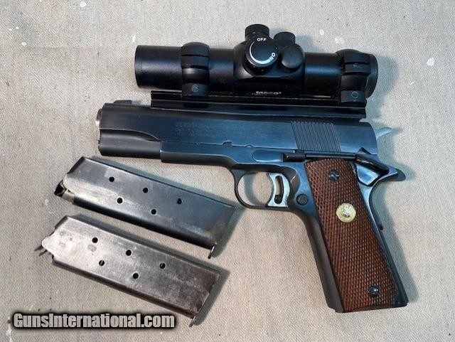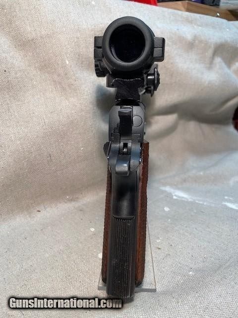 Description: Colt MK IV 1911 Series 70 Gold Cup National Match .45 ACP semi-auto, 7 shot magazine, 5.0 inch barrel, SN = 10400N70, made in 1981. The first Colt Gold Cup pistol was introduced in the late 1950's to give competitive shooters a gun to take directly from the dealer's showcase to the firing line. Colt Gold Cup pistols have been used to compete in local club matches through the annual National Pistol Matches at Camp Perry, Ohio. The Colt MK IV Series 70 was an improvement over the M1911A1/Government Model by redesigning the barrel bushing to grip the barrel and give the production gun much improved accuracy. The Colt Gold Cup is known as the finest shooting semi-automatic in the world, and is the standard for competitive guns. This Gold Cup National Match features an adjustable wide trigger and national match barrel. This is a one owner gun. I purchased the gun new and immediately sent it to a well known gunsmith in Columbus, Georgia, Jackie Best, to be accurized for NRA Precision Pistol competition (formerly know as NRA Conventional Pistol). Jackie Best also removed the adjustable rear sight and installed a permanent rail (weaver base) on the top of the slide. The original (new) adjustable rear sight is included with the price of the gun. Jackie completed the work on the gun in April 1985. He test fired the gun at 50 yards from a Ransom Rest using Federal wadcutter ammo. The 10 round shot group measured 1.8" spread. The actual paper test fire bullseye target was returned to me with the gun (see photo attached). A Tasco Pro Point II red dot sight (model # PDP2) is mounted to the rail and is included in the price of the gun. Red dot sights available from other manufacturers can easily be mounted to the same rail. Comes with 2 magazines. This gun has been optimized to fire .45 acp wadcutter ammunition. I competed in numerous state pistol championships, All Army Pistol Championships at Ft Benning, GA, and the National Pistol Matches at Camp Perry, OH using this gun for both the centerfire and .45 caliber 900 portions of the three gun 2700, one-handed, standing, NRA bullseye matches. The last time I fired this gun was June 5, 1994. The gun has been in storage for the last 27 years. Competition guns like this one are not listed for sale very often. Here are some comments from others on Jackie Best, the gunsmith: Re: jackie best gunsmith info by jglenn21 2/1/2020, 9:03 am Jackie was one of the most talented AMU (Army Markmanship Unit at Ft Benning, GA) smiths of his era. He made excellent 1911s that would flat shoot. I had the pleasure of knowing him while he was in GA. He ended up in Al. Like most smiths in the 60s,70s and 80s.he would build on what you brought him.. Heck of a shot too, although he didn't shoot much outside of Perry when I knew him.. if the pistol is in good shape you'll enjoy it. Owned one in the late 70s. Let it go like an idiot..... Post by john bickar » Tue May 11, 2010 11:31 pm BEST GUNS SHOOT Jackie (Best) was a good friend of my father's and built guns for my father, my uncle, and many of my father's friends. In 1991, he built the wad gun that I still shoot. I shot it as he built it for ~15 years before it needed to be rebuilt last year after a long life of admirable service. Among other things, I broke 2600 for the first time with that gun and still have my current Personal Best in CF/.45 and a 2700 with it. I bought another Best wad gun off of a couple of years ago just because I could. #5 · Nov 7, 2015 Hey, Y'all, I just wanted to chime in about the inquire into Jack Best, the pistolsmith. Jackie was a friend of mine and he taught me as much as my brain could hold on accurizing and shooting a 1911. He truly was one of the Best. I was at stationed at Ft. Benning, and I was a competitive shooter with all guns, but I shot mostly for AMU (Army Marksmanship Unit) as a 3 gun shooter. Jackie took me under his wing and showed me how to make a hardball gun shoot a group that, to me, seemed impossible. There were/are some of the best gunsmiths in the world at AMU, and I had the privilege of serving with them from '75 to '81. If you have one of Jackie's builds, consider yourself a lucky individual. I'm Tommy Loomis. by SW-52 4/1/2020, 8:27 am Information describe Jackie Best was a High level Gunsmith in early days and was AMU (Army Marksmanship Unit) armorer. His builds are very tight and very rare to see one on sale. The original box for the gun is not available. All original papers for the gun are included. All Pro Point original papers and accessories are included. A second used Tasco Pro Point red dot sight (Model # PDP1) is available for sale from the seller. Contact the seller for details. A second set of grips is available for sale from the seller. Pachmayr black wrap-around rubber Model GM-45 (see photo). New old stock in original box. Add $29 to the purchase price. Shipping to your FFL only. Inspection must be done on the premises of the receiving FFL only. Do not remove firearm from receiving FFL before inspection is completed and firearm is accepted. We provide a 3 day window to complete reasonable inspection. Inspection starts on date of delivery to receiving FFL. Do not disassemble. If you are unsatisfied, do not complete transfer. Promptly return item using original packaging. We do not refund shipping cost from the seller to the buyer. We also do not reimburse return shipping cost. Add shipping cost of $45. SOLD Handgun Caliber: .45 ACP (.45 Auto) |