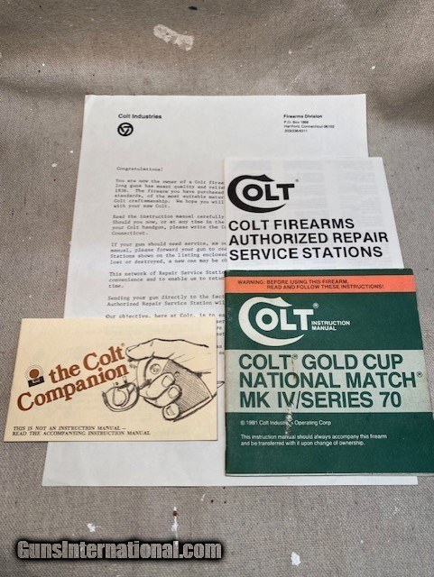 Colt MK IV 1911 Series 70 Gold Cup National Match .45 ACP semi-auto - NRA Bullseye Competition Gun