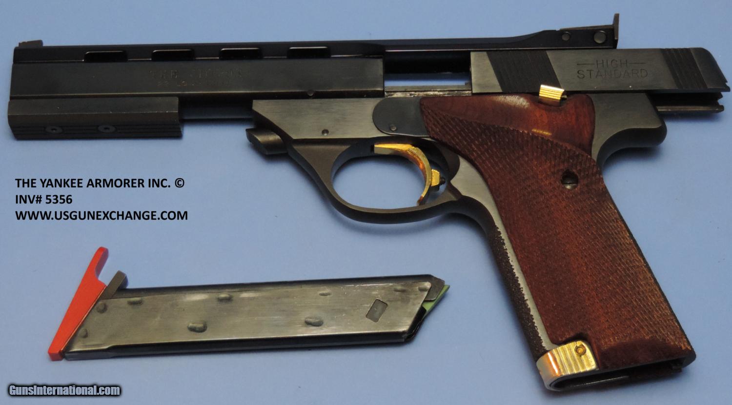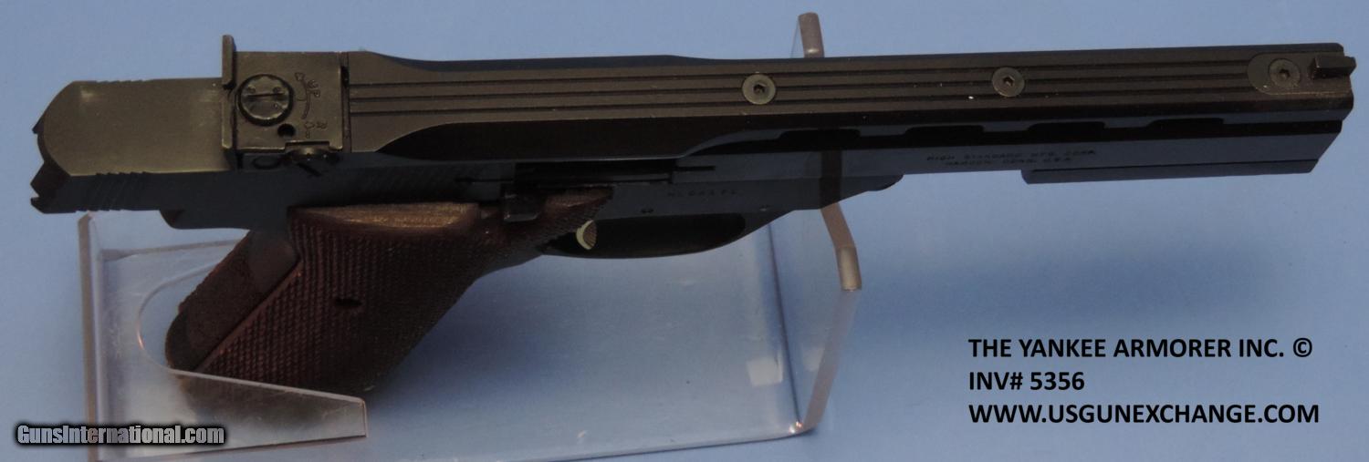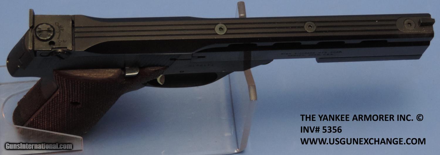 Description: Inv. 5356 High Standard Victor Ventilated Rib. Original Hamden, CT. gun. Ser. 041XX. Mint in the original box with one extra mag and original parts list. The gun appears to be un-fired. It came from a High Standard collector in Connecticut that had 30-40 un-fired guns all in the original boxes. All parts match. The blue is 100% factory original. As are the walnut grips. The bore is as new also. The gun comes with two original magazines an original barrel weight. It just doesn't get better than this. Would almost be a shame to shoot it, however if your score doesn't leap up, maybe the answer is golf...$1195 To purchase this firearm or if you want to request more information contact us at: Email ckgunsymail Phone 201-512-0002 Cell 201-575-6838 FAX 201-215-4759 We accept most major credit cards. Prices shown are Discounted 3% for Cash or Check. The buyer must be familiar with all the laws governing the purchase and the ownership of firearms in their own city and state. The Yankee Armorer, Inc is not responsible for any failure to comply with or observe these laws. The Yankee Armorer, Inc will only ship after full payment and receipt of all required documents. Shipping: Add $35.00 for handguns, $45.00 for long guns. New Jersey buyers are subject to a 7% sales tax. The Yankee Armorer, Inc offers a 3 day inspection period with full refund upon return of intact firearm and in the original condition. The Yankee Armorer, Inc offers a no interest lay away program - 25% down; 25% in 30 days; 25% in 60 days; and full payment in 90 days. Any violation of this policy is subject to restocking and forfeiture of all payments. Any variation from this policy must be agreed to in advance. Unshipped Cancelled sales are subject to a 20% restocking fee. Be advised that all firearms sold by The Yankee Armorer, Inc. or the Gun Exchange, LLC (SELLER) are sold as collector’s items. They have not been fired or tested for safety and must be examined by a license gunsmith prior to use. By purchasing any item from the (SELLER), you are agreeing to hold the (SELLER) free from any damages or lawsuits of any nature. Any item left for transfer or storage will be charged to $25.00 per month, per item from the day of its receipt. Any variation from this policy must be agreed to in advance. Store hours 10:00 am to 5:00 pm Tuesday -Saturday. It's always best to call for appointment. Store 201-512-0002, cell 201-575-6838. SOLD Curio/Relic: Yes |