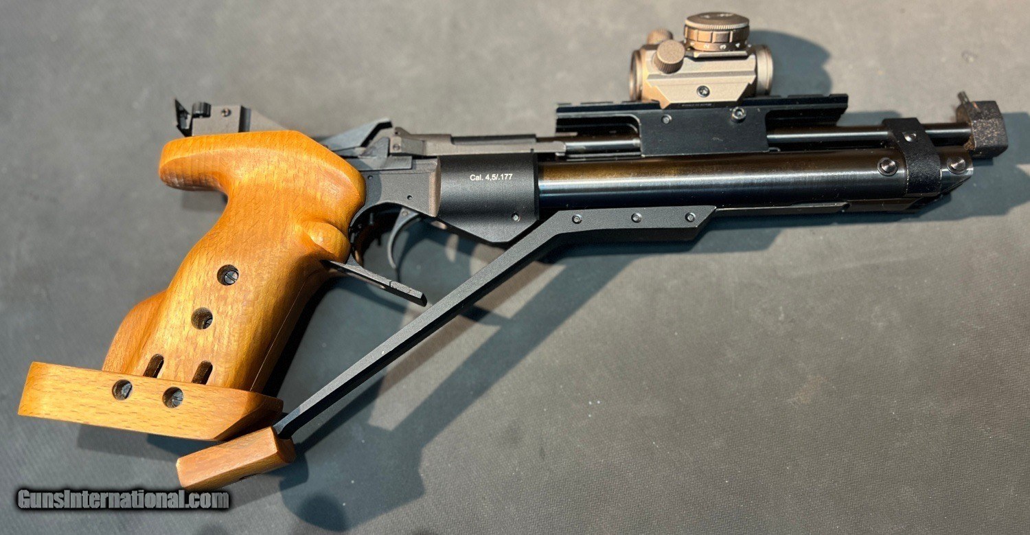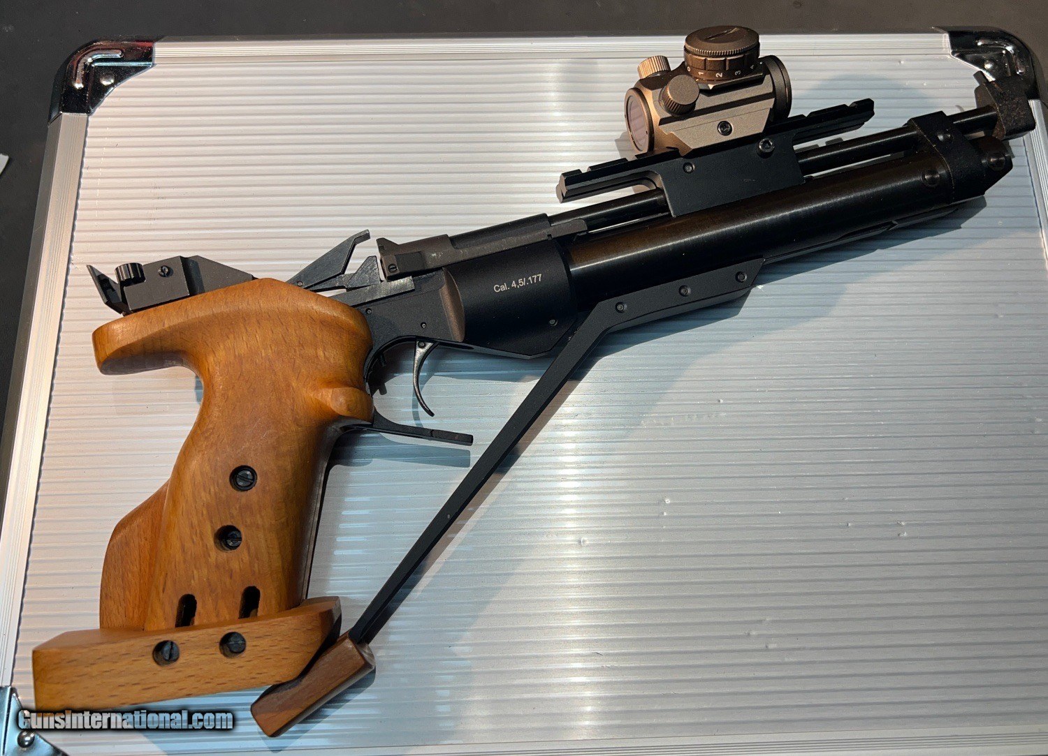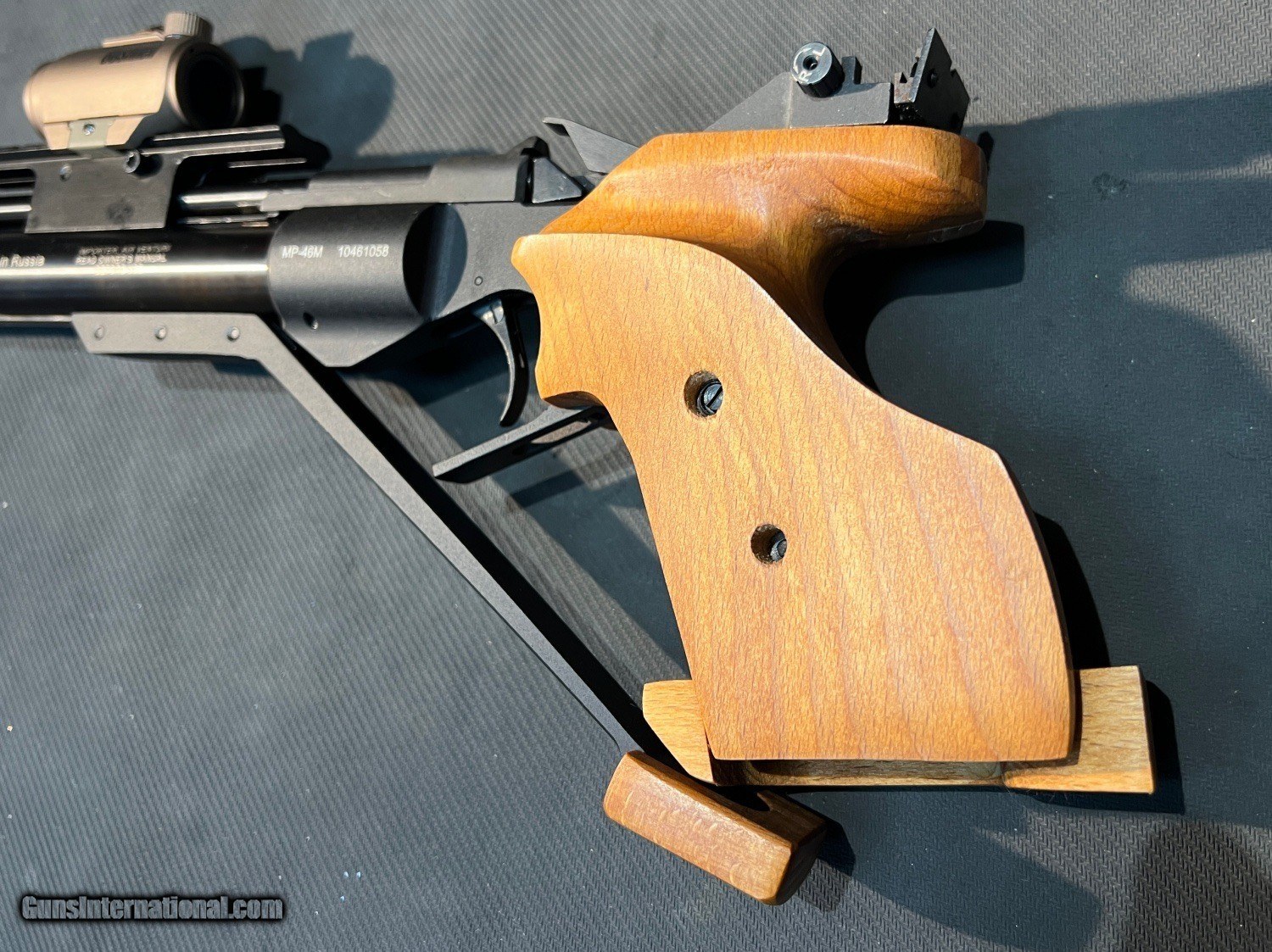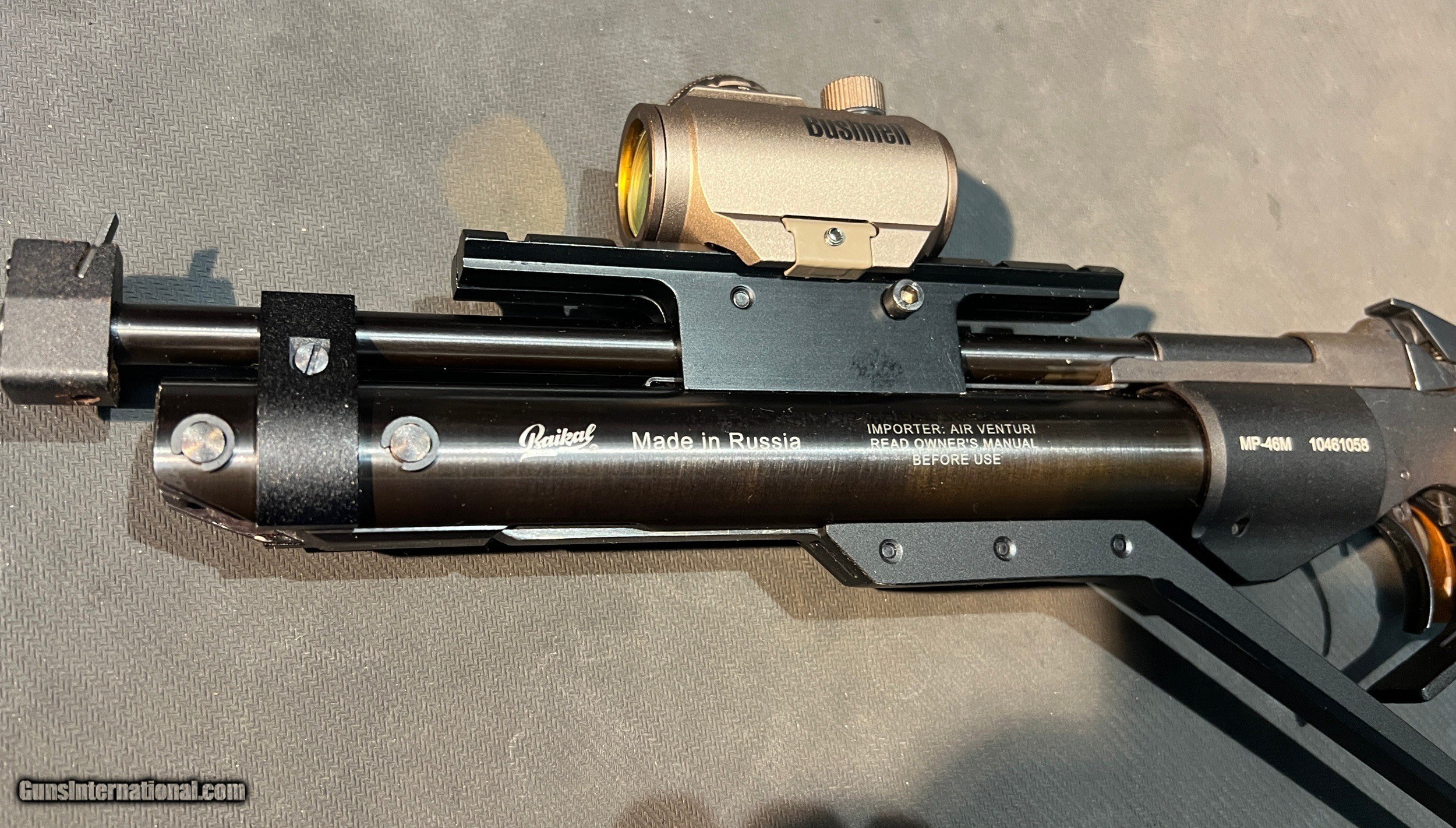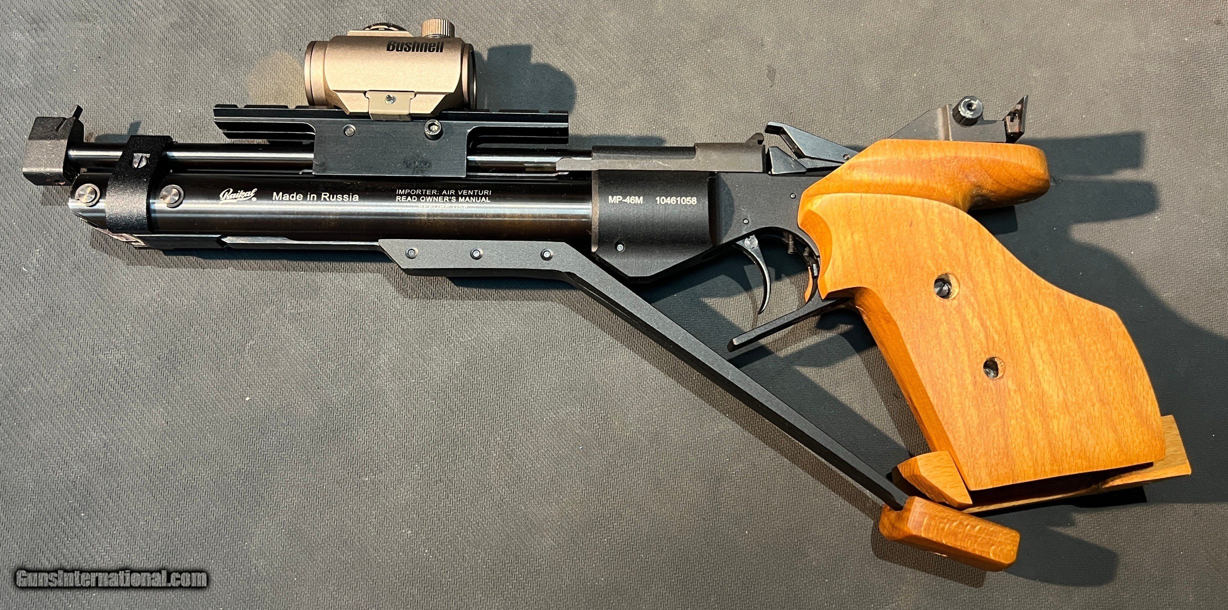 Description: Baikal MP-46M (IZH 46M) .177 Match Grade Competition Air Pistol Package with Aluminum Case, Tool kit, pellets, Bushnell Red Dot Optic, Manual The Baikal MP-46M (IZH 46M) .177 Match Grade Competition Air Pistol is a high-quality air pistol designed for competitive shooting. Made by Baikal in the Russian Federation, this pellet gun has an average velocity of 480 feet per second, making it ideal for precision shooting. Its .177 (4,5) caliber and competition features make it is an excellent choice whether you're shooting competitively or just for fun. The single stroke pneumatic design eliminates the need for an air tank or compressor. No longer available, this is the nicest example I have seen. Was purchased years ago, fired approx 200 rds, and lovingly stored away. You will not find a finer example or air pistol. Can be seen by appointment in our Raleigh NC PROSHOP purchase can be made online at goshoot Manufacturer: BAIKAL Model: MP-46M Serial Number: 10461058 Price: $799.95 Shipping: $50.00 Contact Seller |
