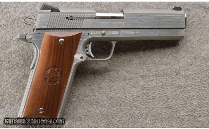 Description: This is a hard to find Coonan .357 semi-auto pistol. The pistol is in very nice condition and comes with a spring so you can shoot .38 special in the pistol. The stainless steel frame and slide along with the walnut grips look like new. This nice pistol comes in the factory soft case. SOLD Caliber Info: .357 Magnum Chambers: Semi-Auto. Metal Condition: Excellent. Wood Condition: Excellent. Bore Condition: Bright and shiny. Barrels: 5 inch stainless steel. Triggers: Single. Stock: Walnut. Weight: 2 Lbs 12 Oz. Sights: Three dot, White. Extras: Comes with the factory case, oil, lock and paperwork. Item Location: Owatonna, MN |