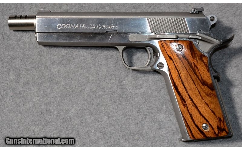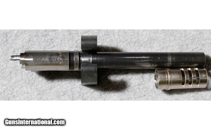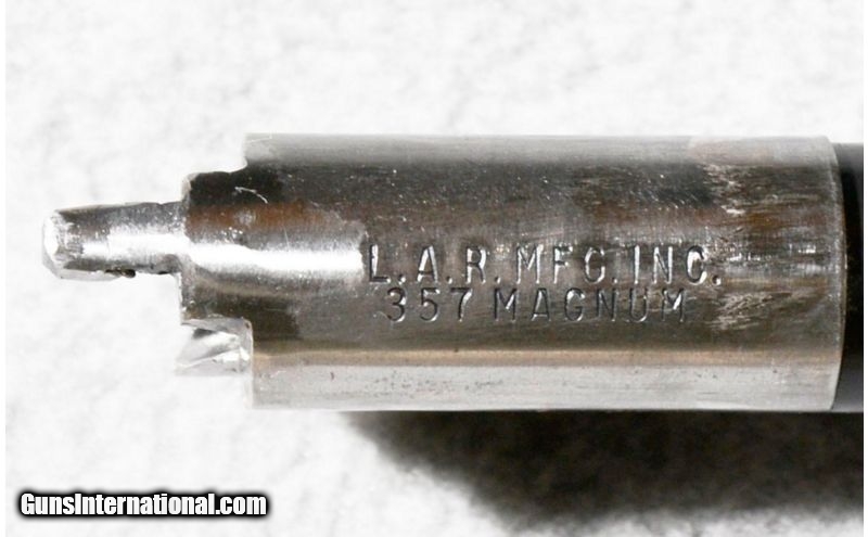 Description: Serial number 1575 fewer than 1200 of these pistols were made under special orders until parts ran out in 1991. The barrel has been replaced with one made by LAR MFG. and modified, poorly, by an unknown "gunsmith". Thankfully the upper barrel tang was only for accuracy and is not a safety hazard. The Model A differs from the later Model B in it's pivoting link to lock and unlock the barrel, while the Model B uses a linkless system. Barrels and spare parts are generally unavailable for the Model A based on its semi-custom nature, but many standard parts such as grips and magazines are interchangeable albeit expensive. .357 Magnum SOLD Chambers: .357 Magnum Metal Condition: "Good, Overall condition of this pistol is very good with one glaring problem. The barrel is a modified LAR MFG. barrel that has had the tail welded on and then ground down to fit. Wood Condition: "Very Good, Some minor bumps but otherwise in great shape. Bore Condition: "Very Good, Clean and shiny with good rifling. Barrels: "Modified LAR MFG. barrel, 6"" Triggers: Factory trigger Butt Pad: Custom Zebrawood grips Weight: 2lbs 13oz Sights: Fixed front sight with MMC adjustable rear sight. Item Location: Lacey, WA |