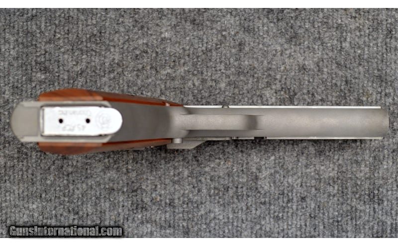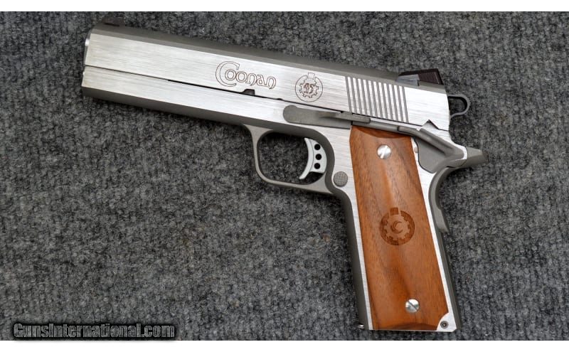 Description: For your consideration, a Coonan MOT 45 chambered in .45 ACP. While Coonan is known for their adaptations of the 1911 design to the .357 Magnum cartridge, the MOT .45 is more conventional 1911. Much like a Les Baer Monolith, the dustcover of the frame extends forward until flush with the muzzle in order to reduce muzzle rise when firing. .45 ACP SOLD Metal Condition: Excellent Wood Condition: Excellent Bore Condition: Excellent Barrels: 5 Triggers: Smooth Face Weight: 2.5 lbs Sights: Iron Sights Item Location: Hamburg, PA |