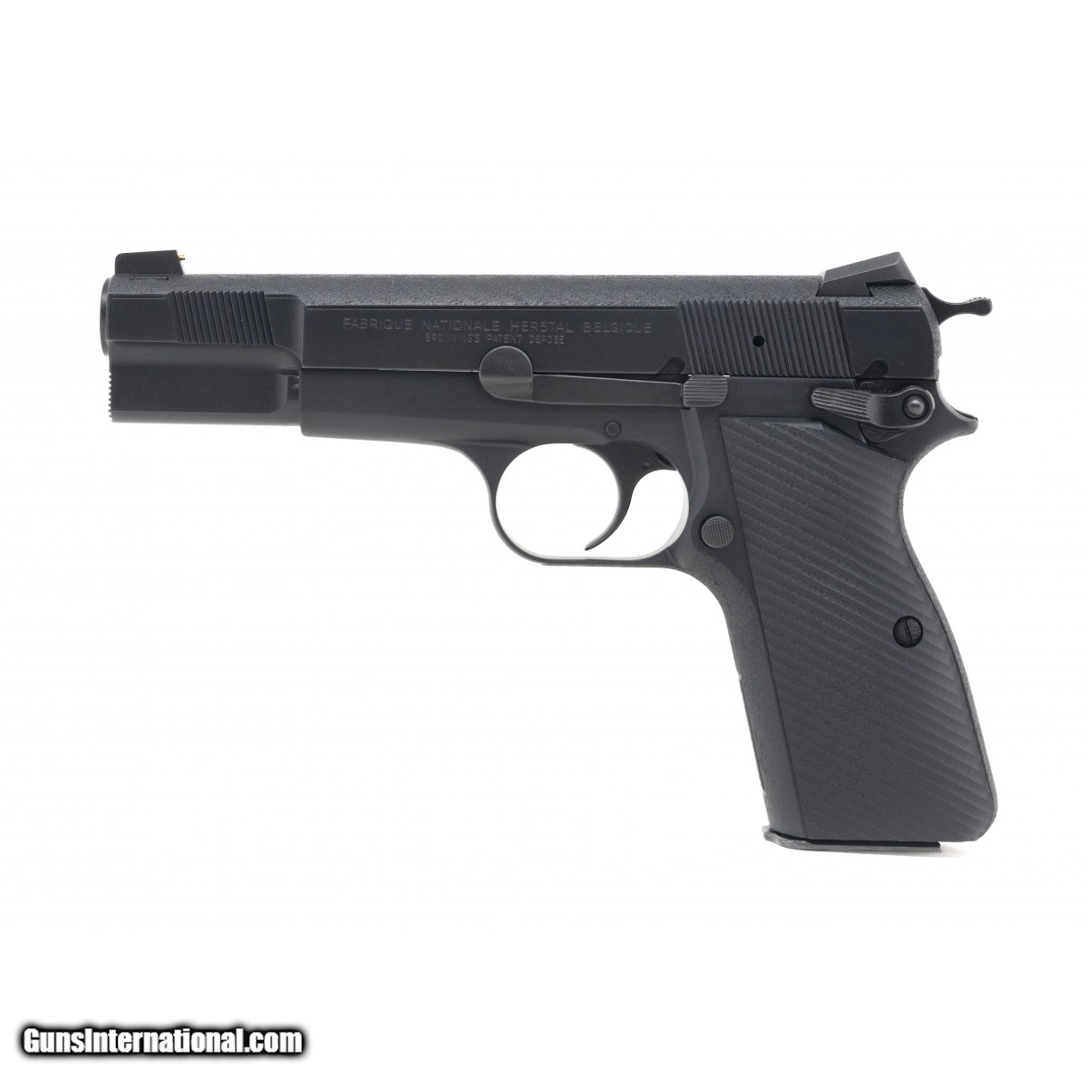 Description: " Very desirable light weight Hi-Power customized by Novak. Top of slide and front and back grip straps are stippled. Gold bead front sight. Nice notch action job. Serrations under muzzle. Ambi-safety. Bar Sto barrel. G10 grips. Excellent condition. A top notch custom Hi-Power! SOLD |
