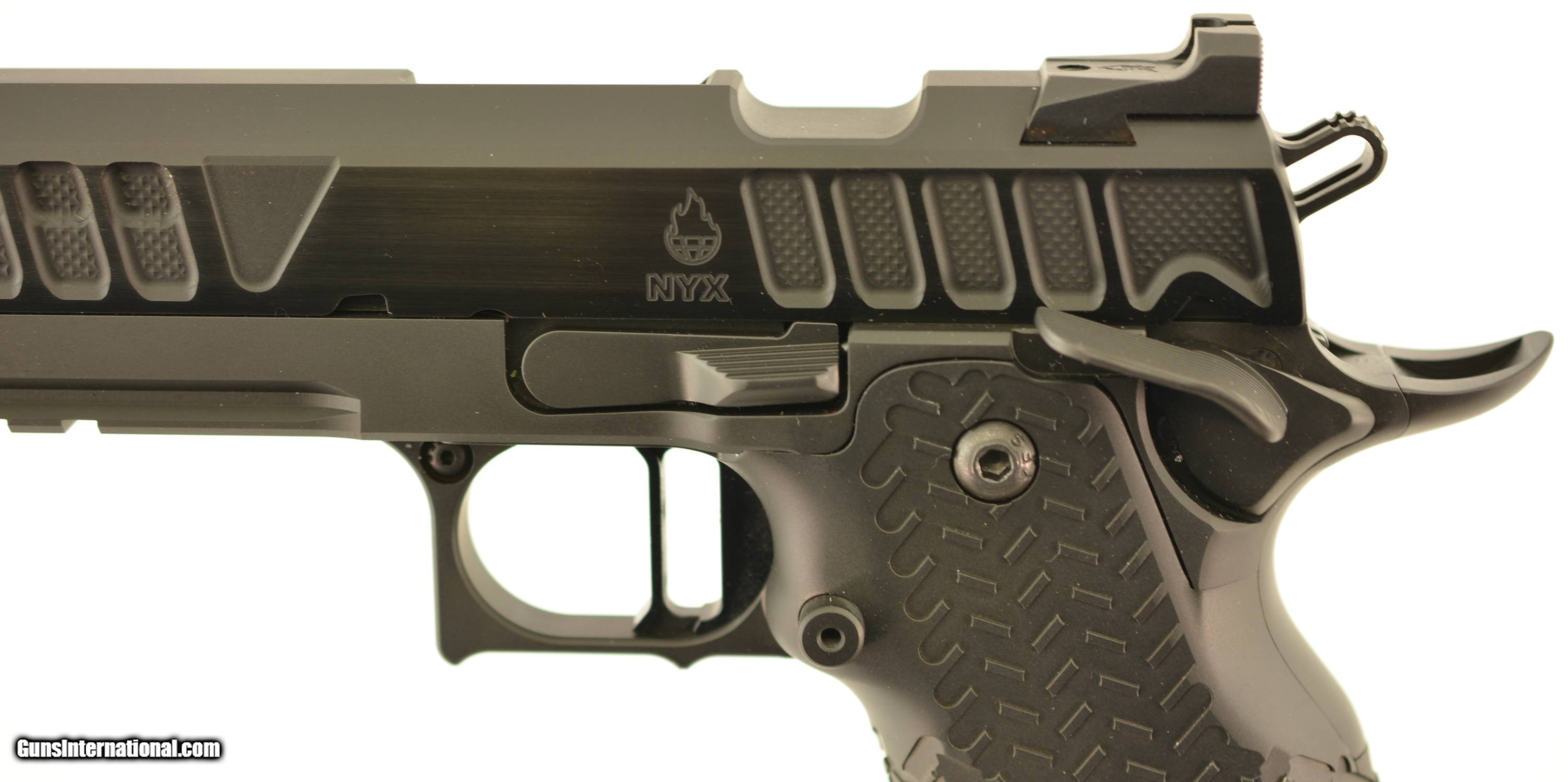 Description: Serial #VTC0341, 9mm Para., 4" barrel with an excellent, bright bore. This is a very well-made pistol that features: a heavy duty barrel with deeply crowned muzzle, sculpted slide, combat sights, ambidextrous safety, textured grip, and tactical rail. The pistol is in virtually unused condition, and is housed in a nylon case with four MBX Extreme 18 rd. magazines, original Atlas Gunworks shipping bag, and a form-fit black Kydex holster. These bespoke pistols are of extremely high quality, and this example has not been fired very much at all. FFL SOLD Manufacturer: Atlas Model: Nyx Serial Number: VTC0341 Caliber Info: 9mm Gauge Info: 9mm |
