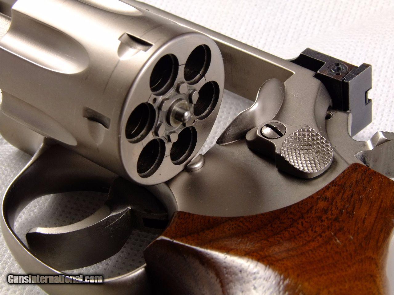 Description: SOLD-SOLD! Here is a Rare Austin Behlert Custom Smith and Wesson Model 14-3 Conversion in .32 H&R Magnum with 6" Barrel, Target Trigger, Target Hammer, Behlert Patent Adjustible Sight, and Custom Target Grips. Has Pinned Barrel and Recessed Cylinder with an After Market finish, possibly Chrome. Tolerances are tight with barely a sliver of light passing between the barrel and cylinder. Timing and lockup are precise and tight. The action is smooth as silk and breaks like glass. The finish has some slight handling marks and a slight turn line, but otherwise looks fantastic. I don't have any provenance to verify the Austin Behlert build, however Behlert sight and incredible custom build are his hallmarks. This is a finely crafted conversion to .32 H&R Magnum and extremely rare! SOLD Manufacturer: Austin Behlert Custom Conversion Smith and Wesson Model: 14-3 Serial Number: 3K31730 Caliber Info: .32 H&R Magnum Condition: Excellent to Near Mint Action: Double Action Finish: After Market Sights: Austin Behlert Adjustible Manufacture Date: Unknown Case: None Item Location: Rio Rancho, NM |