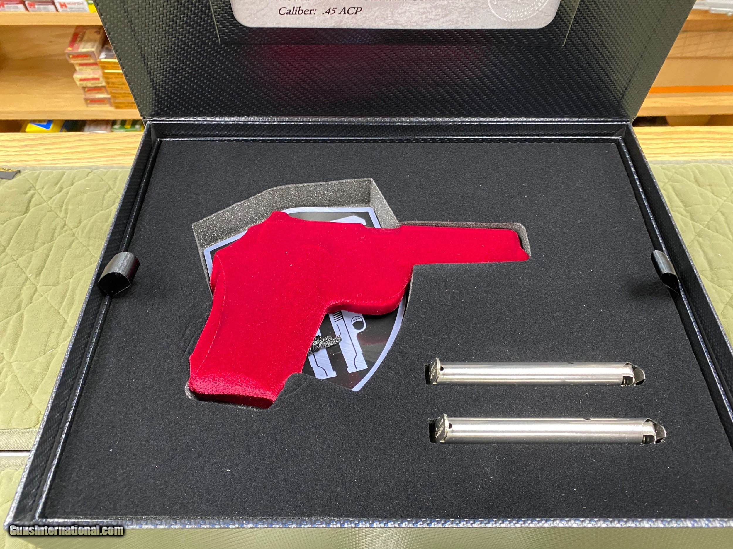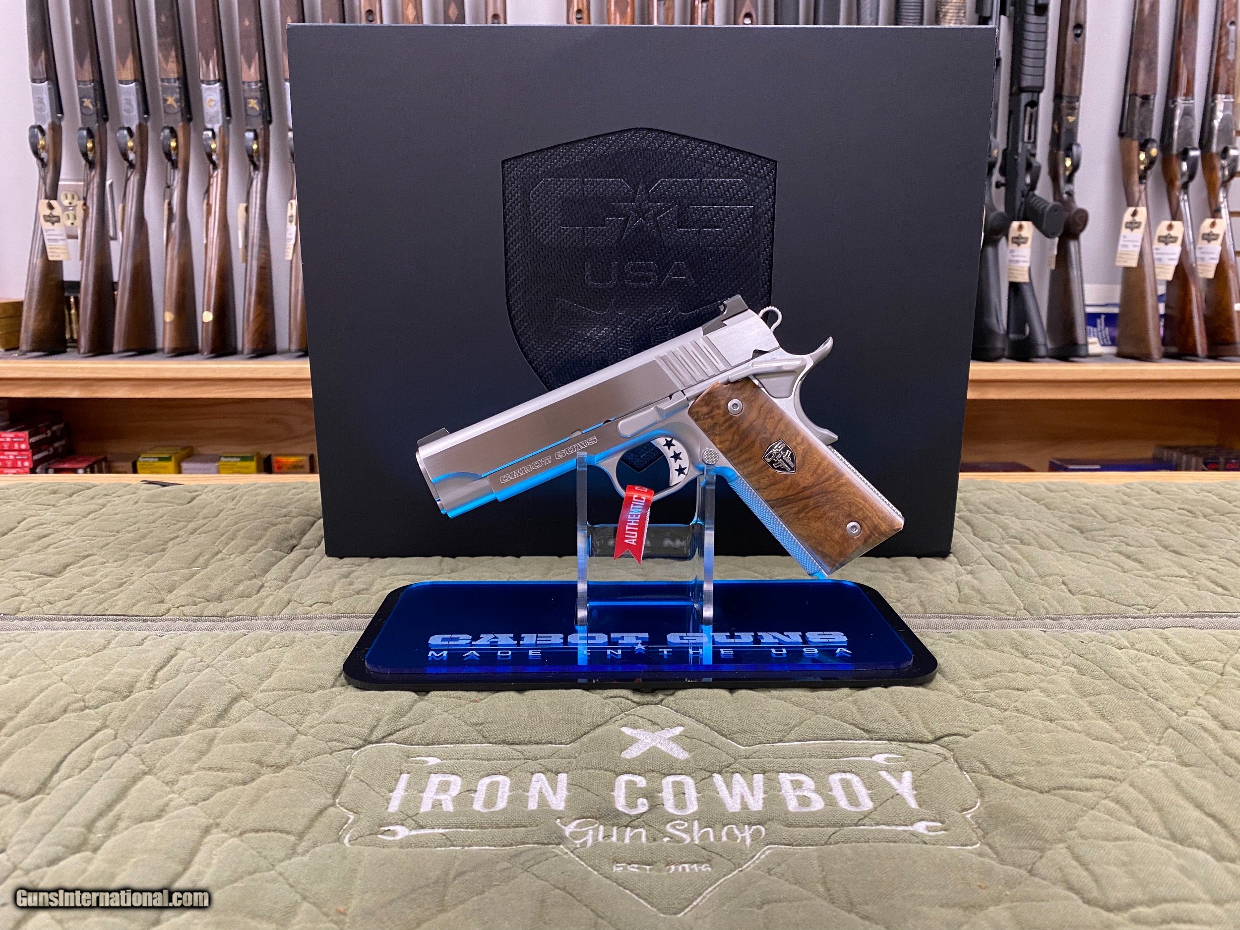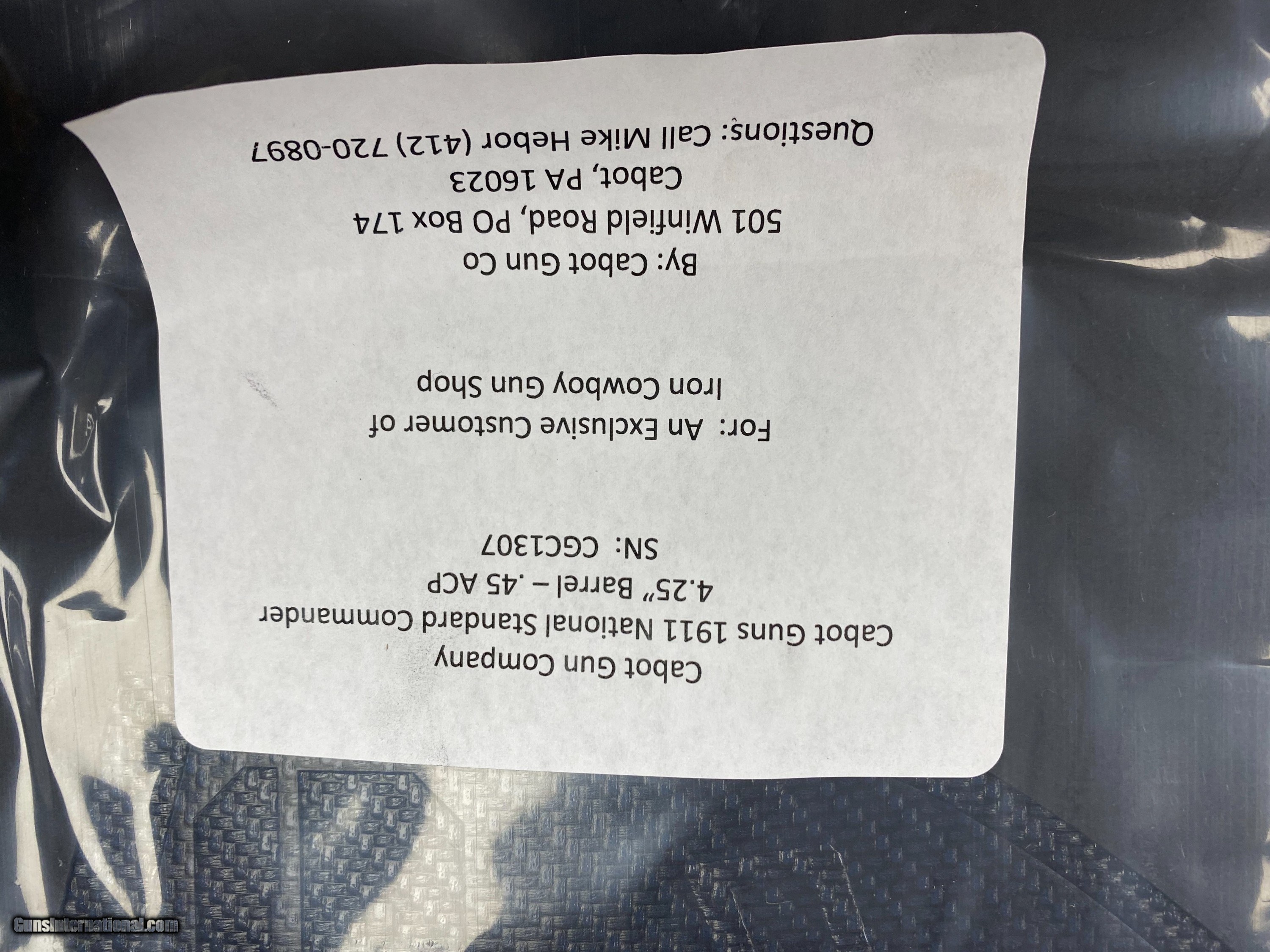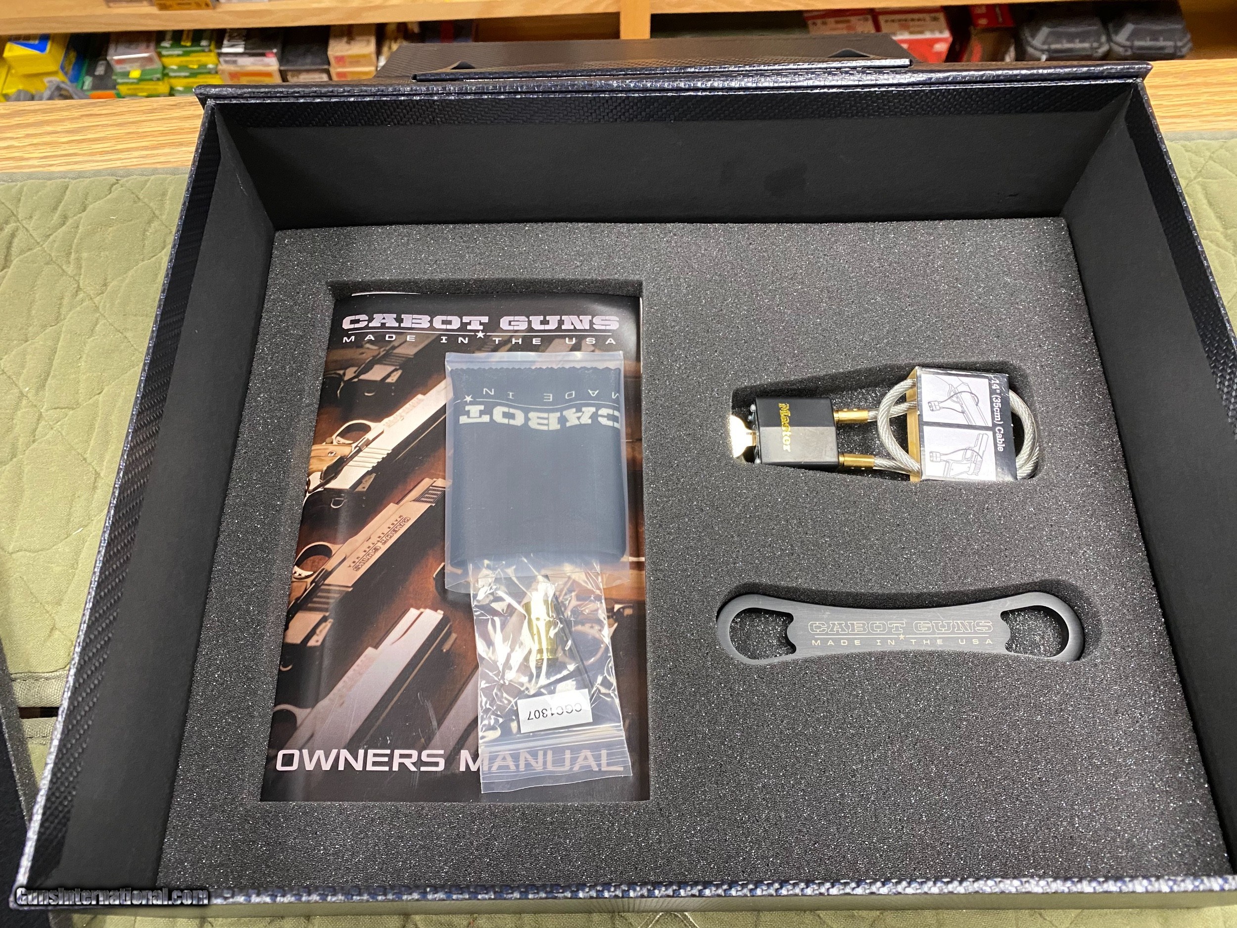 Description: New Cabot The National Standard. This beautiful Cabot is chambered in 45 Acp. Below you will find a description from Cabot’ssite. The wait time for this pistol is well over a year this one is ready to go. Two words, one promise. National Standard. A pistol befitting its name: 100% all-American. A benchmark that sets the modern standard for an American classic. Cabot’s National Standard 1911 is our gauntlet for American quality, a challenge by which the industry will be measured. World-class precision engineering, machining, and artisan craftsmanship are the beating heart of the National Standard 1911. Enshrined in our Made in America Manifesto, Cabot’s commitment to define the industry’s highest standards is why this icon is produced in the heartland of these United States. The smooth lines and elegant curves are accentuated with subtle details that elevate the National Standard to benchmark status—featuring both precision machining and hand-worked artisan craftsmanship to stand head and shoulders above the competition. The eye is drawn to our trademark Tristar trigger, one of many recognizable design elements that separate Cabot from the pack. Each star is precision-formed using CNC spark corrosion technology, notable for achieving tolerances finer than a fraction of the size of a human hair. The trigger is further refined with serrations along the front pad to improve tactile feel for the shooter. Even the National Standard’s slide serrations subtly reveal the level of care and quality lavished on this pistol. In between each serration is an additional micro-serration measuring a mere ten hairs wide, and from zero to three and a half hairs deep (and back again) from top to bottom. These markings are precision-ground into the slide, completing the National Standard’s unique look and further exemplifying the quality and attention to detail that ships with each Cabot Guns pistol. Cabot’s new-for-2021 rear sight has been designed to balance defensive and range functionality with the refinement you’ve come to expect from Cabot. The .140″ wide U-Notch was selected specifically for quick target acquisition while creating a sight picture that perfectly cradles any of our dot, fiber, or bead front sights. A heavy dehorn is applied to reduce potential snags and facilitate maximum carry comfort, without sacrificing the tactical advantages of its aggressive hook design. The rear-facing sight surface features 50 LPI checkering for glare reduction. The National Standard ships with luxurious walnut grips featuring an inlaid medallion, but a wide range of grip options are available to personalize your pistol. Available in both Government and Commander sizes and chambered in either .45 ACP or 9mm Luger, these choices are just the start of how you can make the National Standard your own. Should you choose your National Standard in our carry Commander format, you will benefit from the unique full-cycle technology we engineered, which provides the full-size stroke of a Government model and does not compromise the shooting experience. Cabot guarantees the accuracy of all our pistols with shot groups better than 1.5 inch at 25 yards. As deserving of a place on your mantle or at the range —the National Standard is a tool where state-of-the-art meets art. Modern 1911 styling, .45 ACP Cabot Frame and Slide, From 416 Stainless Steel Billet Proprietary Hardening Hand Satin Polished Flats 5 in. or 4.25in Match Grade Barrel, Hand-Fit, Crown Cut, Flush Fit Polished Feed Ramp Cabot National Standard Slide Serrations Top Slide Serrations Lowered and Flared Ejection Port Cabot Aluminum Tristar Trigger Rhombus Cut Front Strap Checkering 24 LPI Rhombus Checkered Billet Made Main Spring Housing Cabot Machined-In-Place Perfect Fit Ejector Cabot Billet One Piece Full Length Guide Rod Billet Thumb Safety Billet – Idiot Scratch Proof – Slide Stop Billet Magazine Release Billet Beaver Tail Grip Safety Cabot 9-Axis Billet Constructed Barrel Bushing Cabot Reverse Dovetail Front Sight – White Dot Cabot Fixed Rear Sight Optional Low Mount Adjustable Rear Sight, Black or Tritium Bar Beveled Magazine Well Smooth Figured Walnut Grips Standard Optional Grips, Walnut Fibonacci, Checkered Walnut, or Desert Ironwood Two 8 Round Magazines 45acp (9 Rounds for 9mm) Cabot Bushing Wrench and Gun Lock We stock a vast array of Caesar Guerini, Fabarm, Syren, Blaser, Merkel, Nighthawk Custom, Cabot Gun, and many more vintage guns too. It is impossible for me to list everything I will special order you anything your heart desires. Thanks for looking. WHY IRON COWBOY? Buying a fine gun is not shopping cart transaction. Buying from Iron Cowboy means buying a gun from me. It means buying from someone as passionate as you about fine guns. I want you to get the right gun both for you and your application, and my advice reflects what I feel is in your best interests. No clerks, no ‘other’ salesman – just me. Odds are we will have a discussion on my shooting experience with the gun you are after, and every transaction gets my personal best. Thank you, as always, for looking. GROWTH THROUGH SERVICE Everyone is a customer at some point. I’ve taken the good from my experiences and apply it to my transactions. I’ve taken the bad and sworn to never pass that same experience on to my customers. I strive to act the way I would respect someone else for acting. In this way, Iron Cowboy differentiates itself with growth through service and repeat business. It’s my commitment to you, my customer. Iron Cowboy Gun Shop, LLC Edward Kondraski III (570) 733-2042 SOLD |