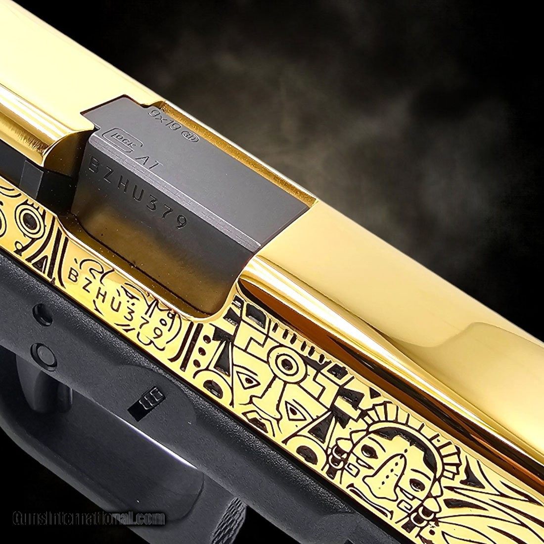 GLOCK Glock 17 - Gen 3 - Customized, 9mm, 24K GOLD, "MAYAN AZTEC" Engraved 9MM LUGER (9x19 PARA)