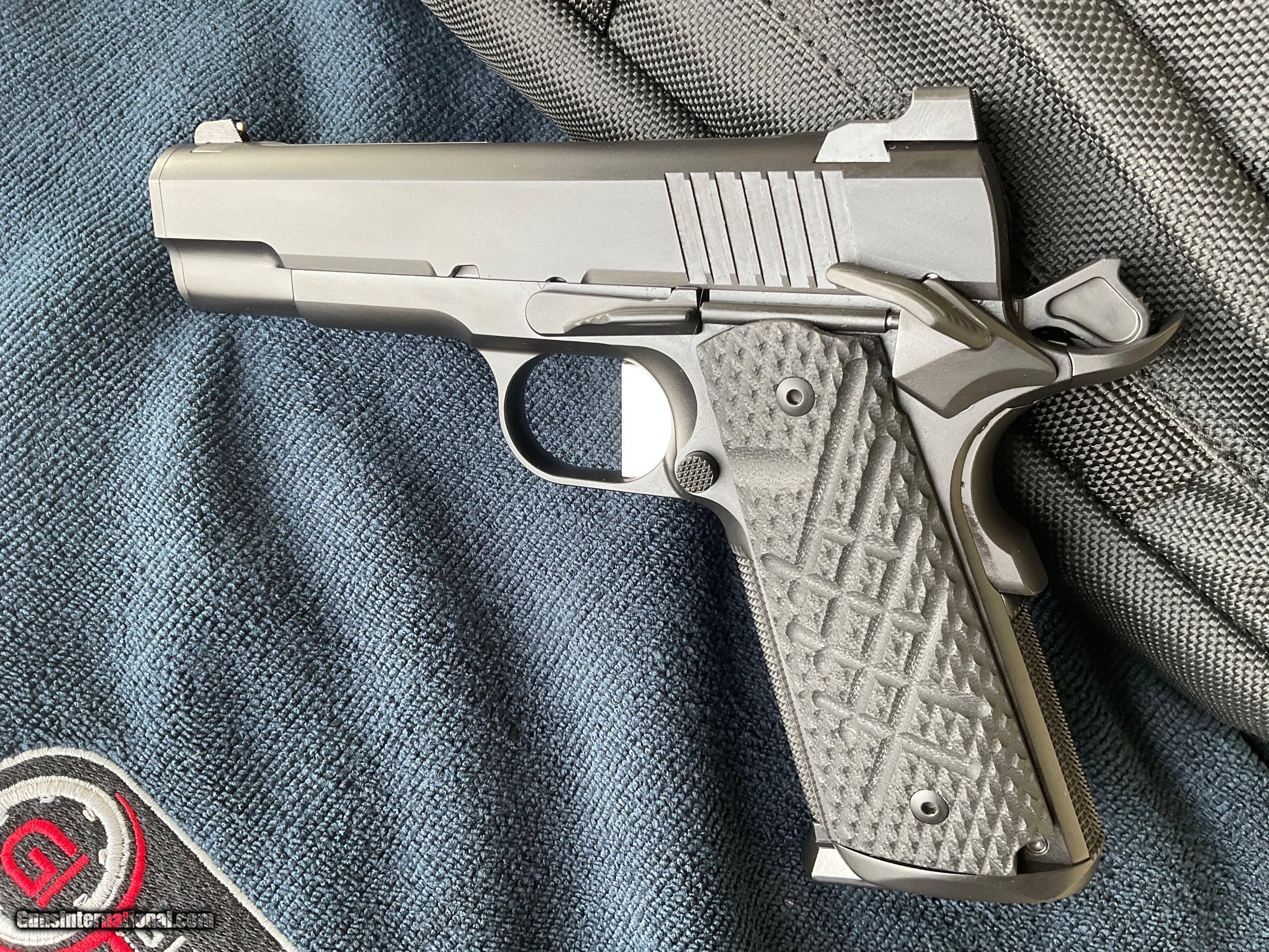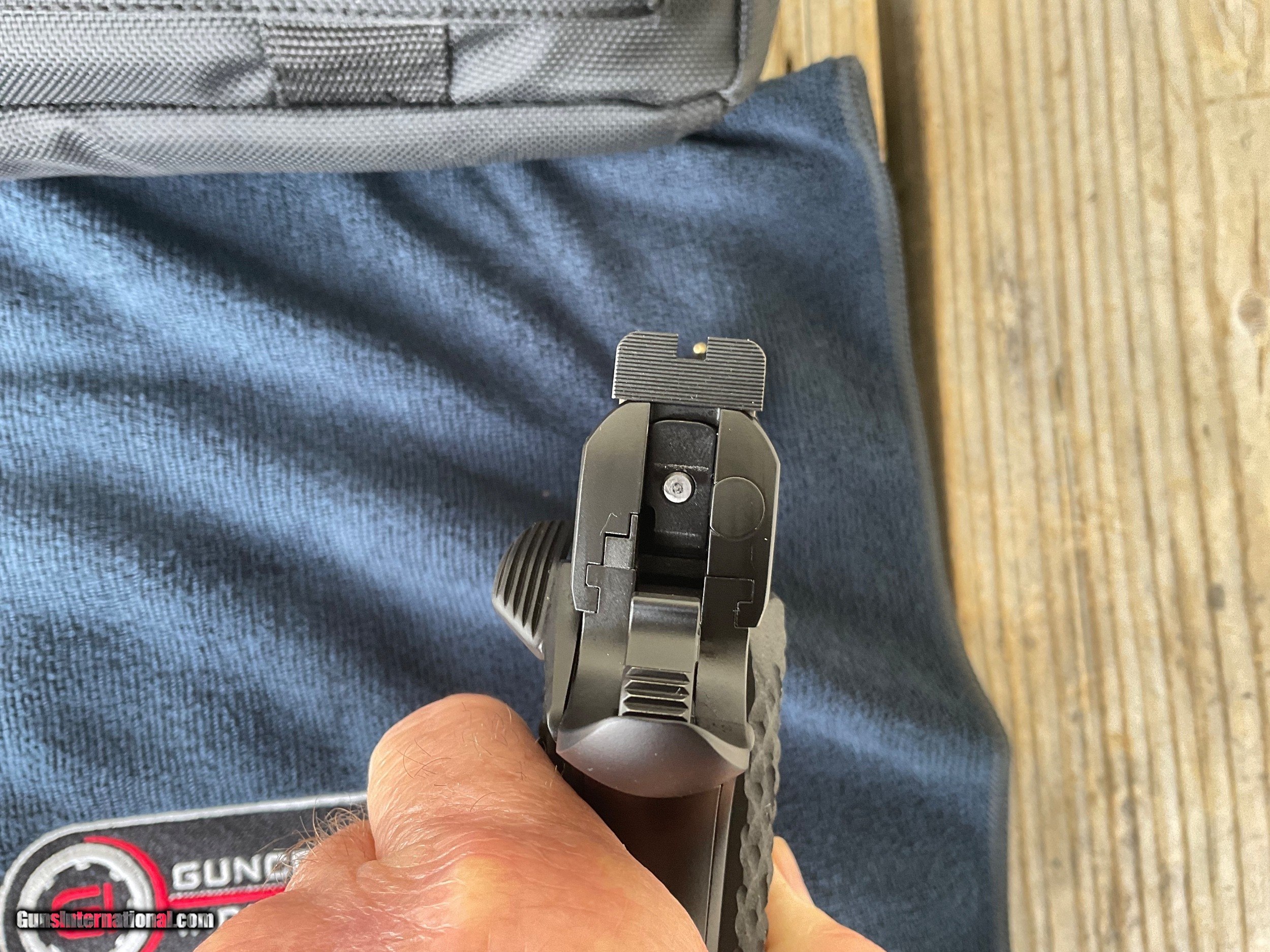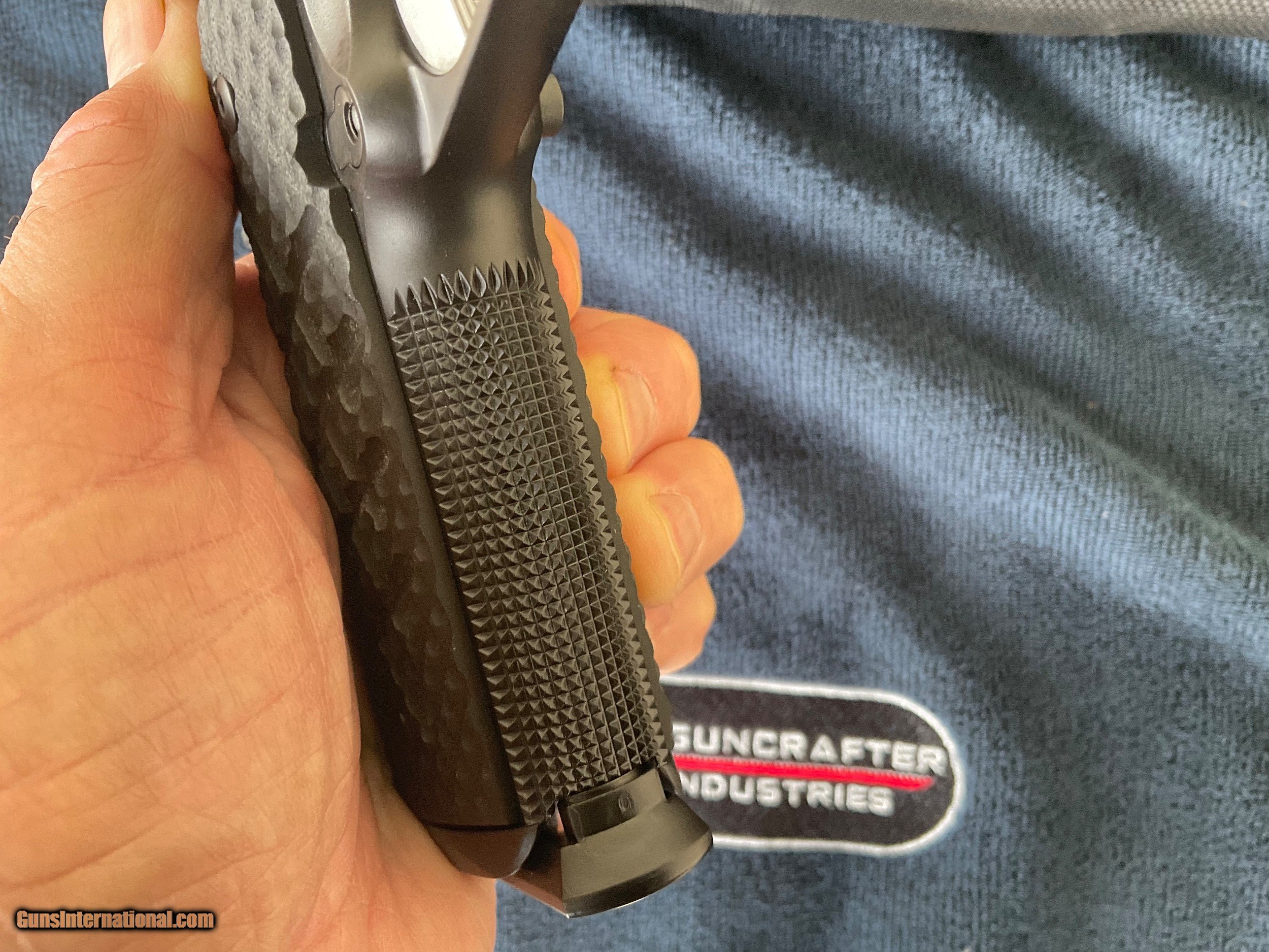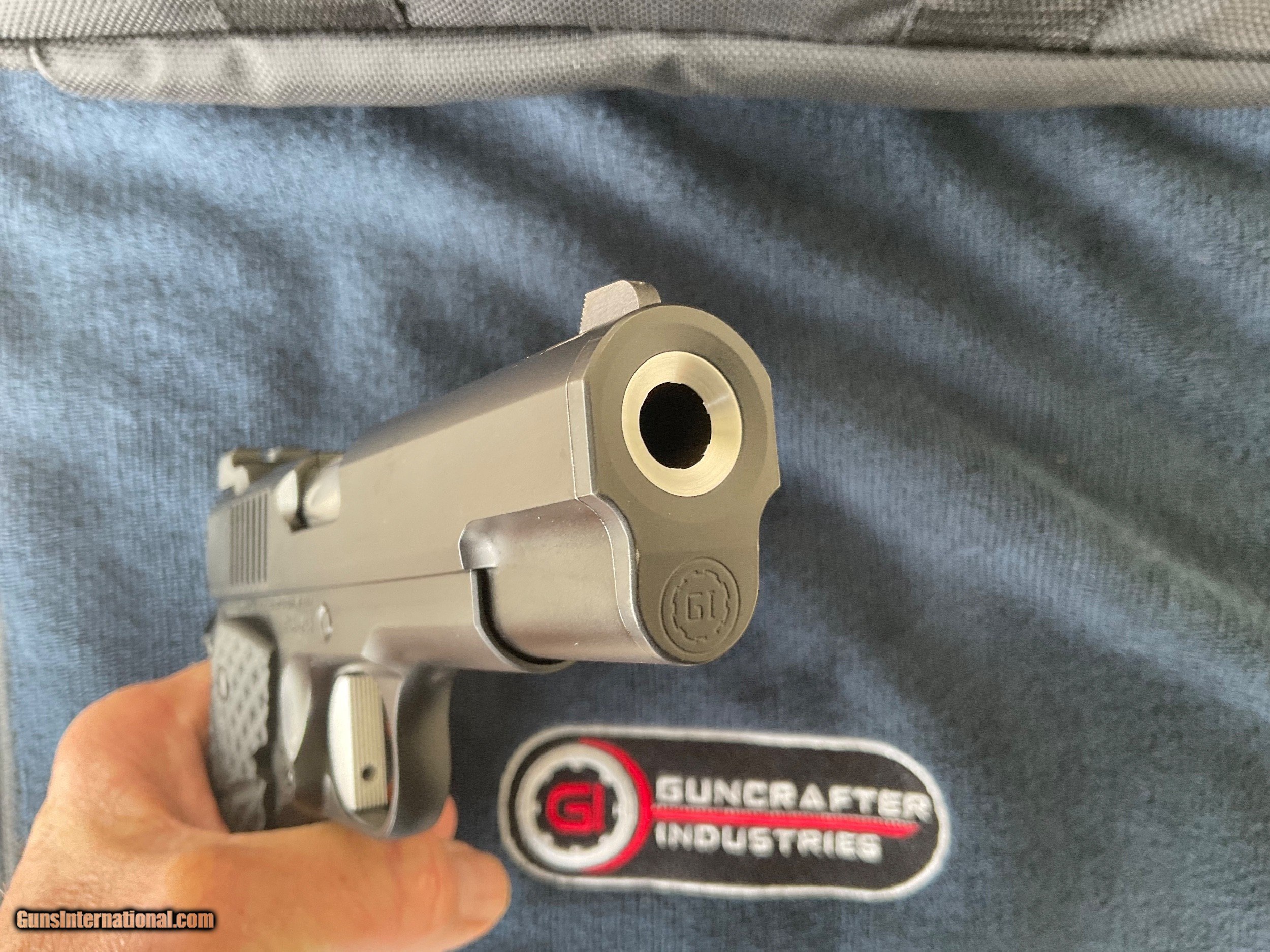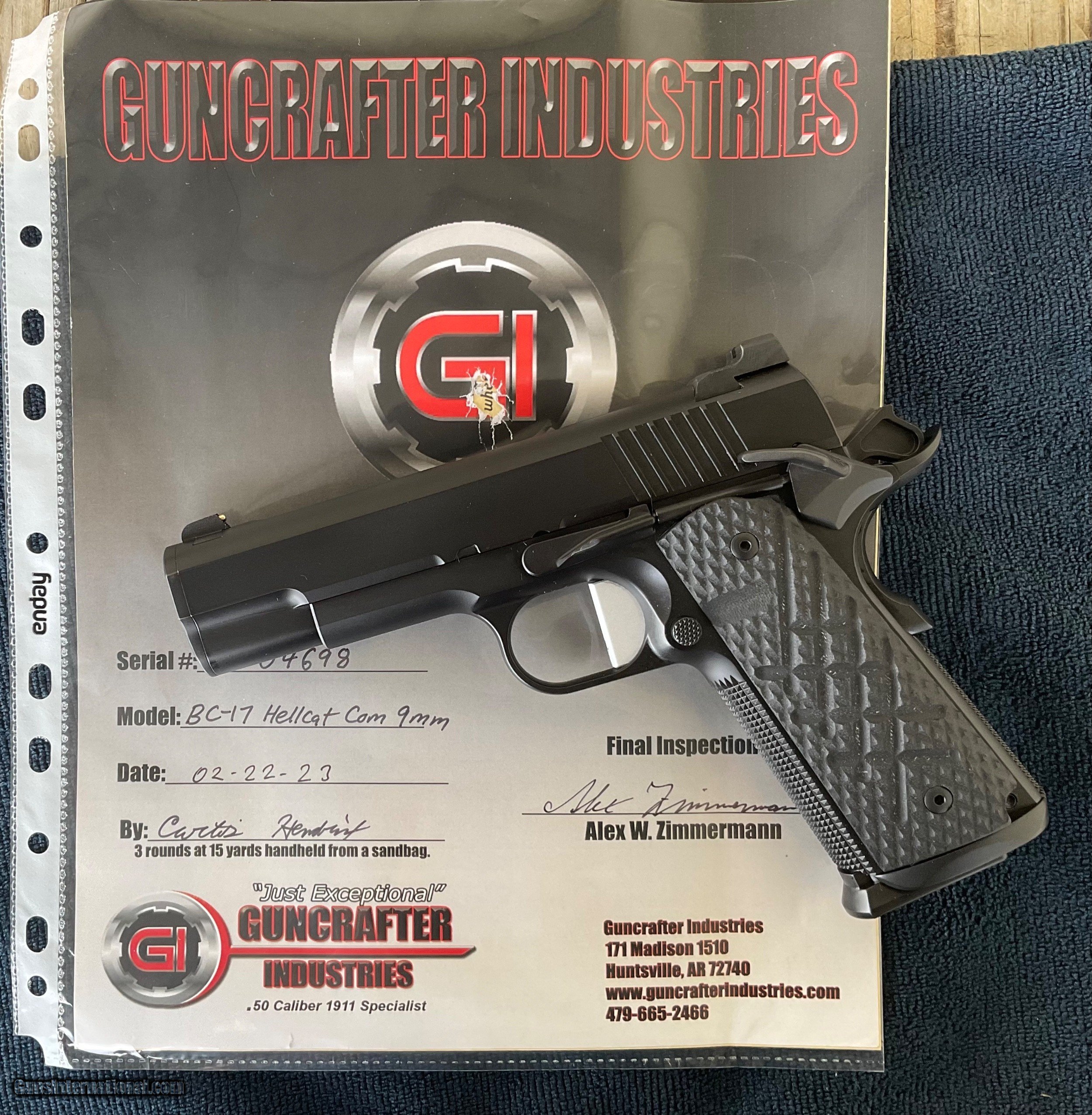 Description: Guncrafter Industries BC-17 Hellcat 9mm Commander. As a GI dealer, I custom ordered this pistol with a few special touches, in addition to the "standard" BC-17 features: Heavy bevel along bottom of slide Hand blended mag well Battle crown Muzzle cut flush and deep crown Slide stop cut flush and chamfered frame Ball end mill slide cuts Flat trigger left in the white Square notch rear sight Gold bead front sight No front cocking serrations No slide markings Extra fitted and tuned extractor This pistol is brand new in the bag, fresh from GI. Note the date on the test target! Black Cerakote, pistol comes in its bag with 2-10 round Wilson Combat ETM magazines, test target, warranty, and towel! NO SALES WHERE PROHIBITED. Shipping, via USPS Priority Mail, insured, is $65.00. Credit cards accepted with a 3.5% surcharge. No trades, no layaway. I have other Guncrafters available, and on order. Feel free to inquire. SOLD Handgun Caliber: 9x19mm Parabellum (9mm Luger, 9x19mm NATO) Manufacturer: Guncrafter Industries Model: BC-17 Hellcat Commander Condition: New |