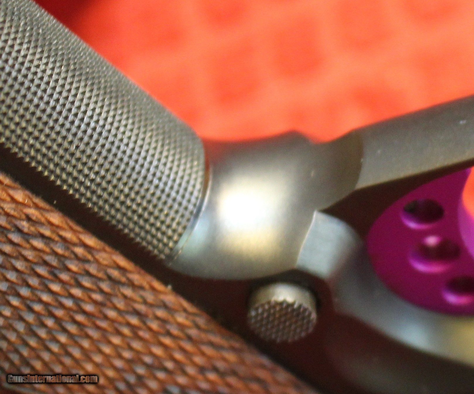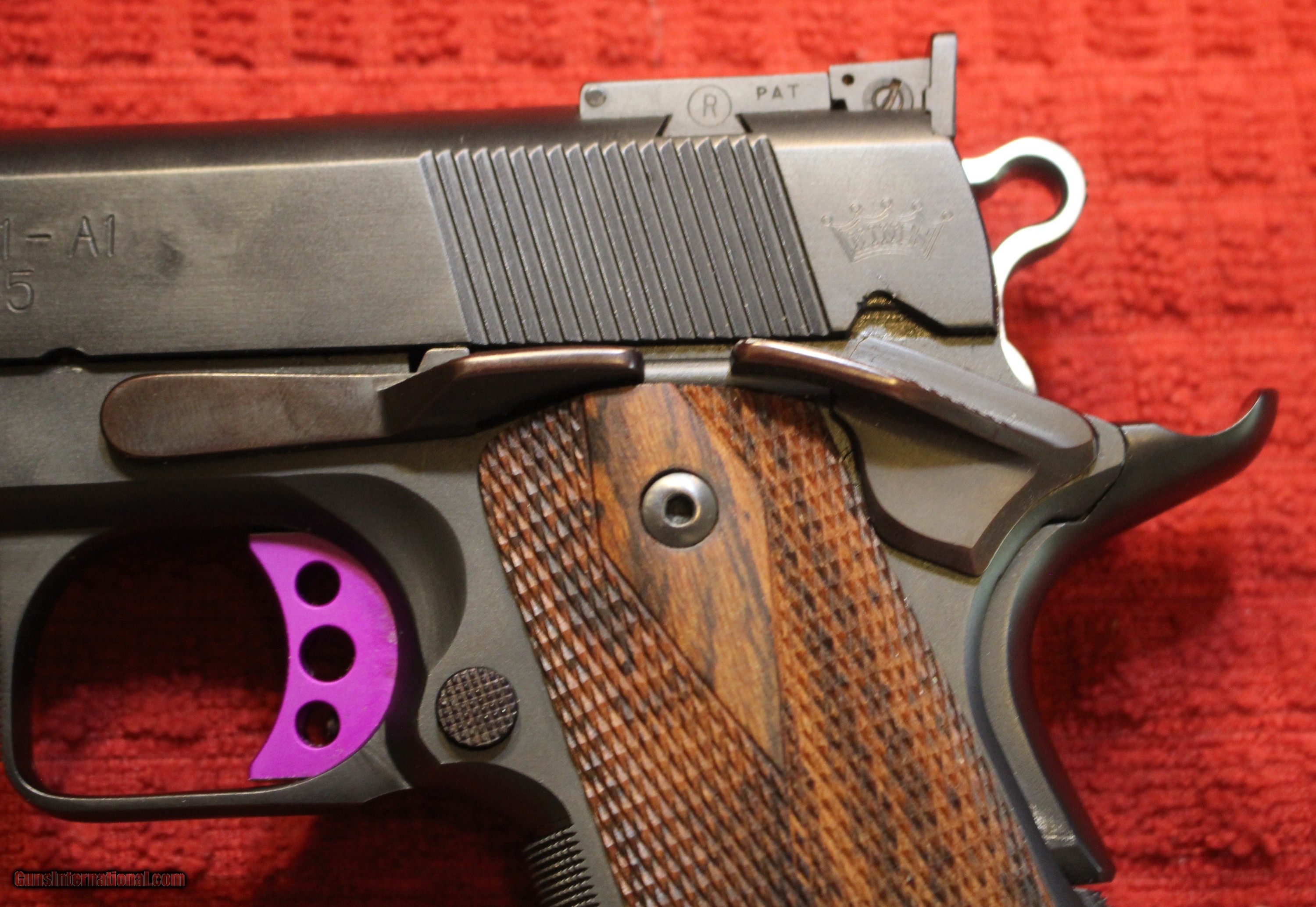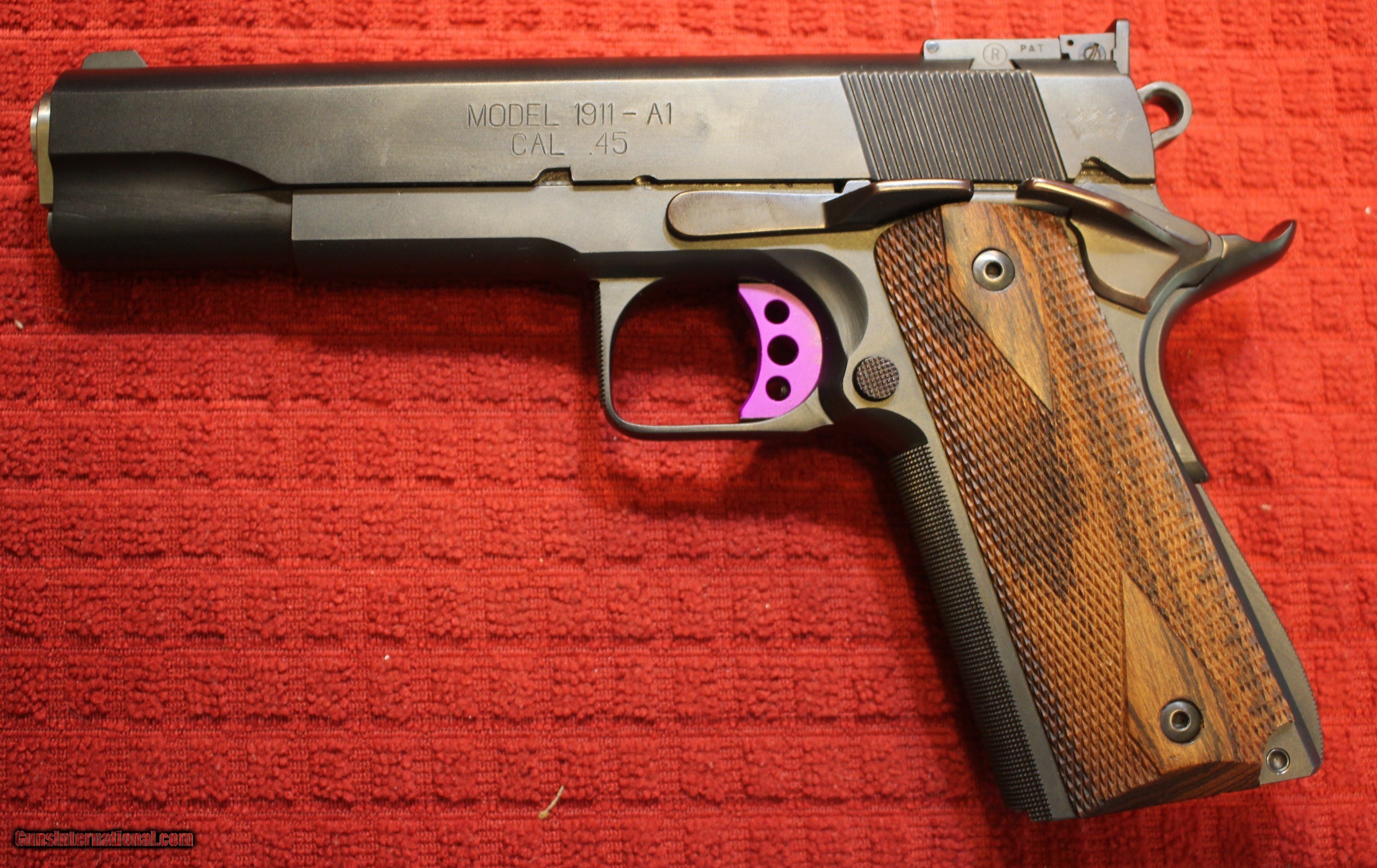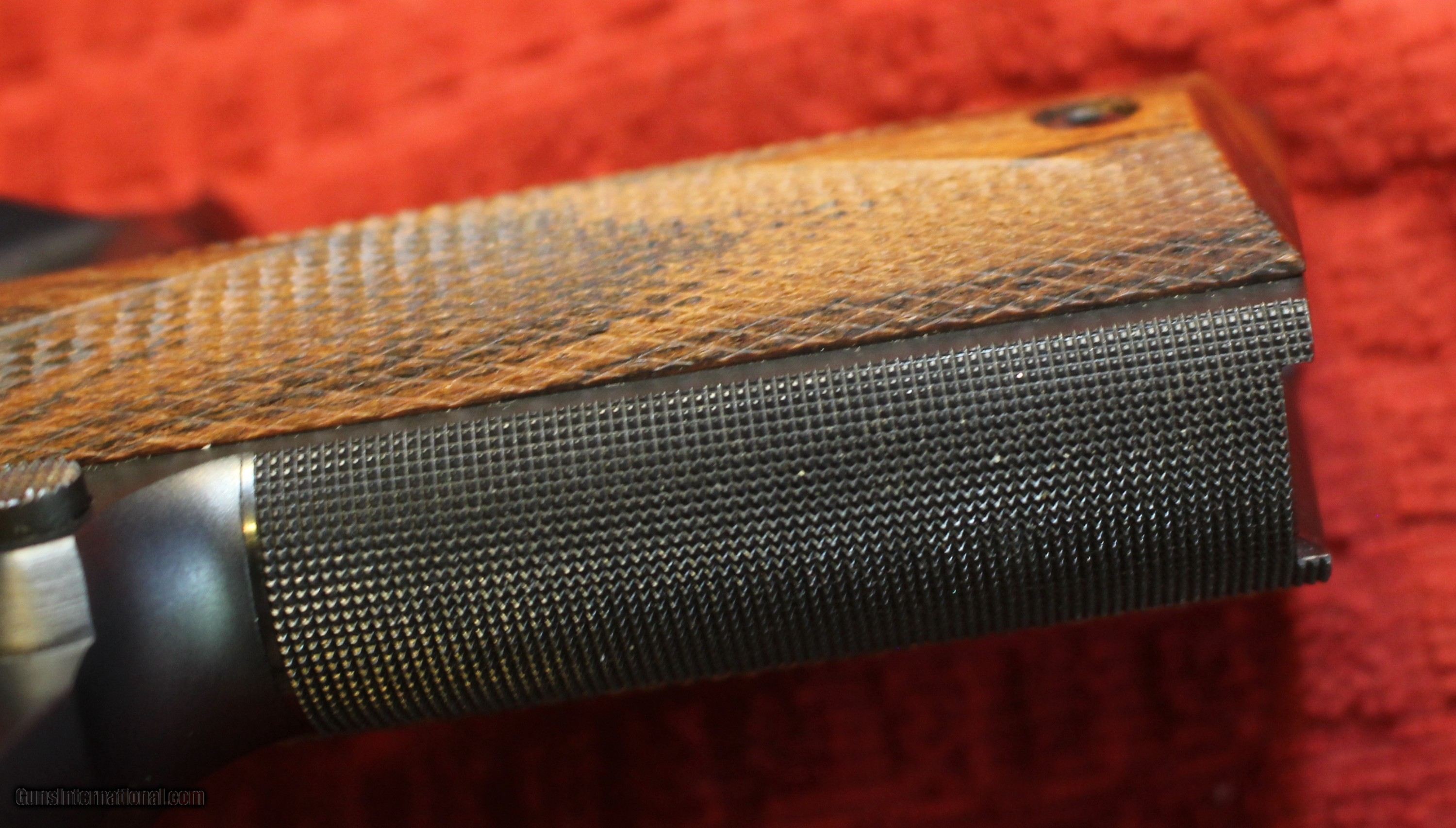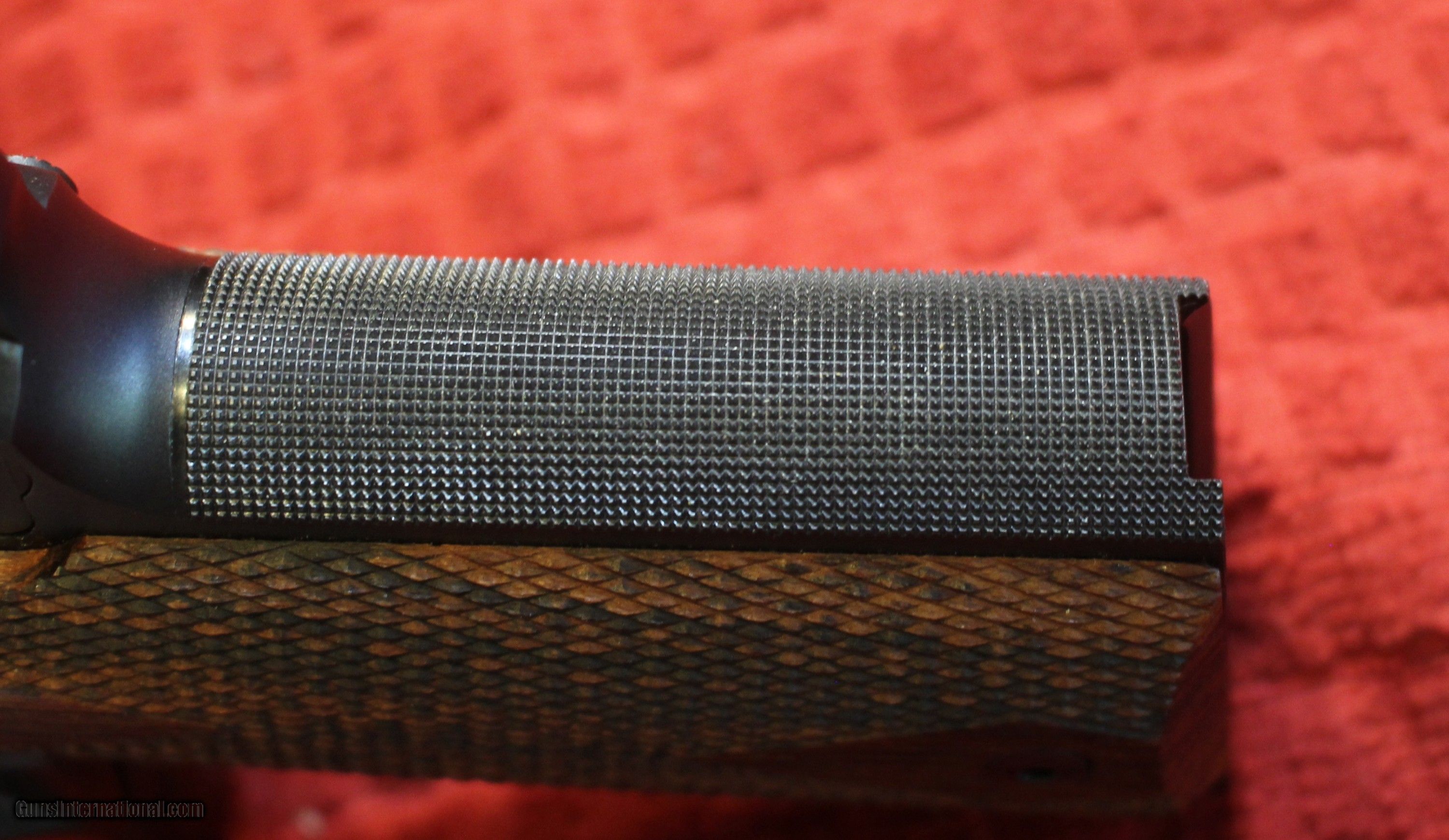 Description: On Hold...................Returned to Owner................................... Here is another from our last road trip to Florida. Here is a King's Gun Works Full Custom Springfield 1911 5" 45ACP. Talk about old school cool. There is a ton of features with this. You can see the squared trigger guard, fine checkering on trigger guard, front strap and main spring housing., full ramp barrel, deep set bomar, rear of slide and top of slide serrations. Could not tell you when this was built. There is the bag and 6 marked 7 round Kings magazines. I thought the purple trigger was after market until we did an internet search and found this King's Gun Works #301 N.M. 1911 Colt Aluminum Trigger Long No Holes Purple NOS, so that trigger is Kings. Check out the detail and workmanship. This has been fired. There is no round count Please check our other listings for the items from our road trips. NOTE: Look close at the pictures posted as we did the best we can As is means AS IS. There is no refund You are welcome to check out our webpage or facebook page at P&T Partners Shipping is NOT FREE just included UPS Next Day Air and full insurance to your FFL. Price is for Certified Funds meaning Certified Check or USPS Money Orders Credit or Plastic in any form, shape or manner add 3.5% NOTE: Credit by PHONE only WE DO ACCEPT PERSONAL OR BUSINESS CHECKS, BUT THERE IS A GRACE PERIOD OF 10 BUSINESSS DAYS ON THEM FROM THE DATE OF DEPOSIT. I post on many of the firearms forums as PT-Partners. This is an FFL to FFL Transaction, as PT-Partners is a retail/FFL Dealer. For those that are local, there is no Face To Face. On Line means On Line. Again if you are Local there is NO local pick up. We ship only Also, Texas Residents know you are responsible for the Texas State Sales Tax. General Information: FFL (Federal Firearms License) is required. Be prepared to obtain a copy of your local FFL holders license. For all in states where the local laws restrict this type of firearms, DO NOT BUY. If your local laws restrict the magazine capacity, again do not buy. SOLD Handgun Caliber: .45 ACP (.45 Auto) |