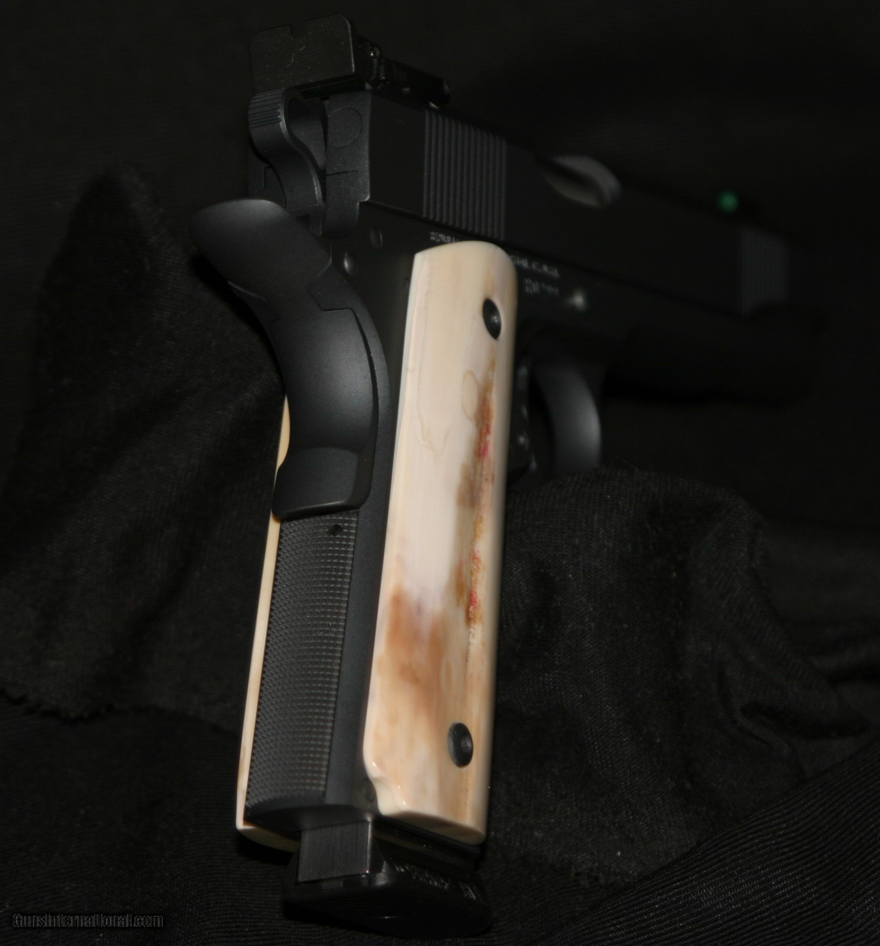 Description: THESE ARE CUSTOM BUILT TO THE BUYERS WISHES! THIS ONE IS FULL LENGHT 5" WITH HAND FITTING,MATCH BARREL AND ADJUSTABLE SIGHTS. AS AN ADDID BONUS, A SET OF FITTED CUSTOM IVORY GRIPS ADDS UNIQUE COLOR TO THE BATTLE GREY FINISH! AS NEW CONDITION! SOLD |