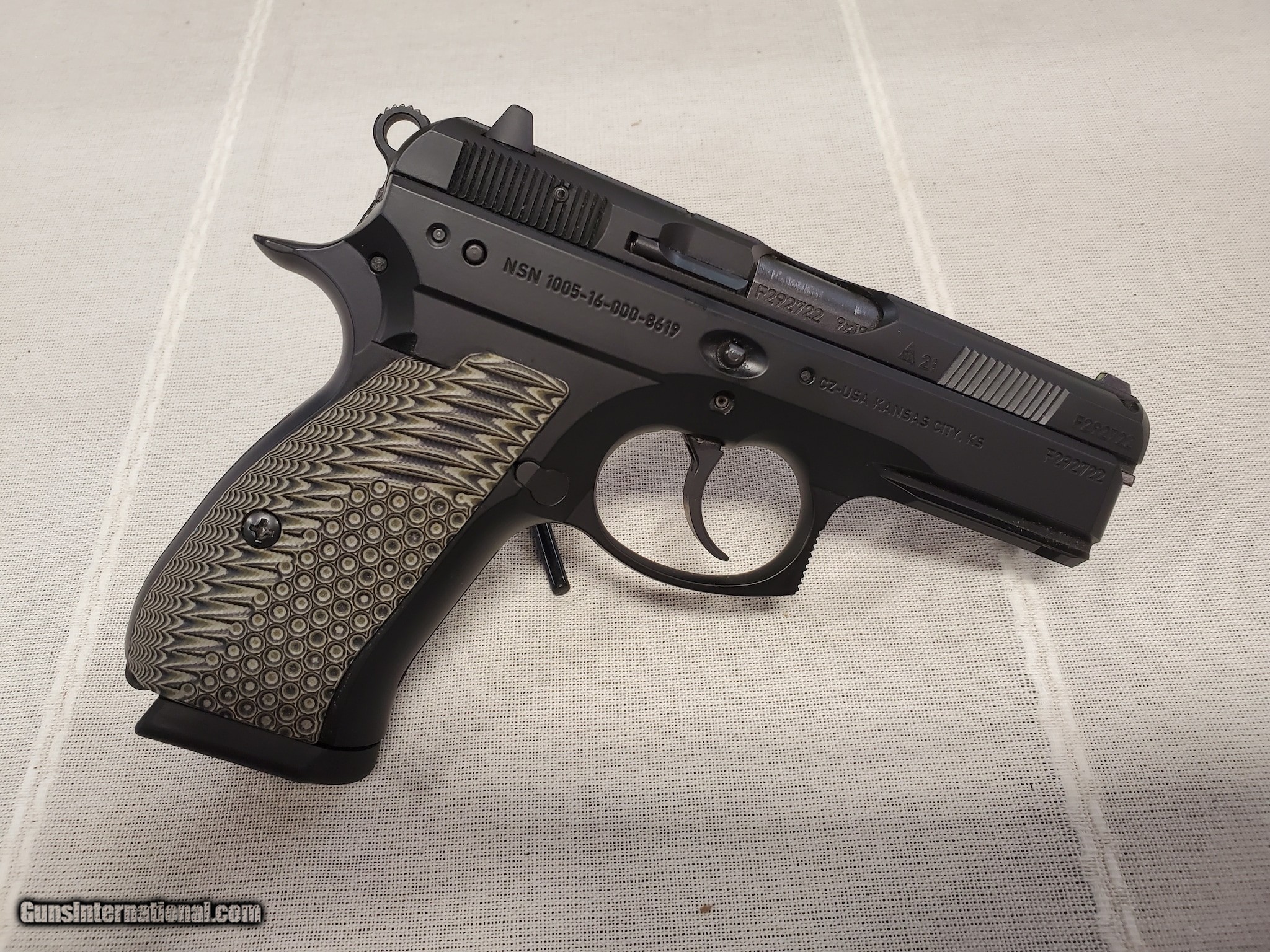 Description: Guns Listing ID: 675409 EXCELLENT CONDITION WITH BOX AND G10 COYOTE COOL GRIPS AND ORIGINAL GRIPS SOLD Manufacturer: CZ Model: 75 COMPACT P-01 Caliber Info: 9MM Condition: Used - Non-Certified Barrels: 3.75 BARREL Finish: BLACK |