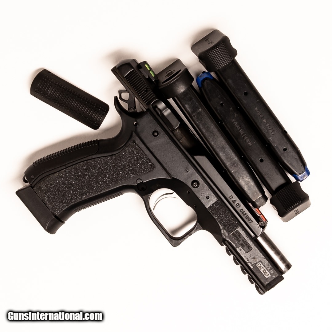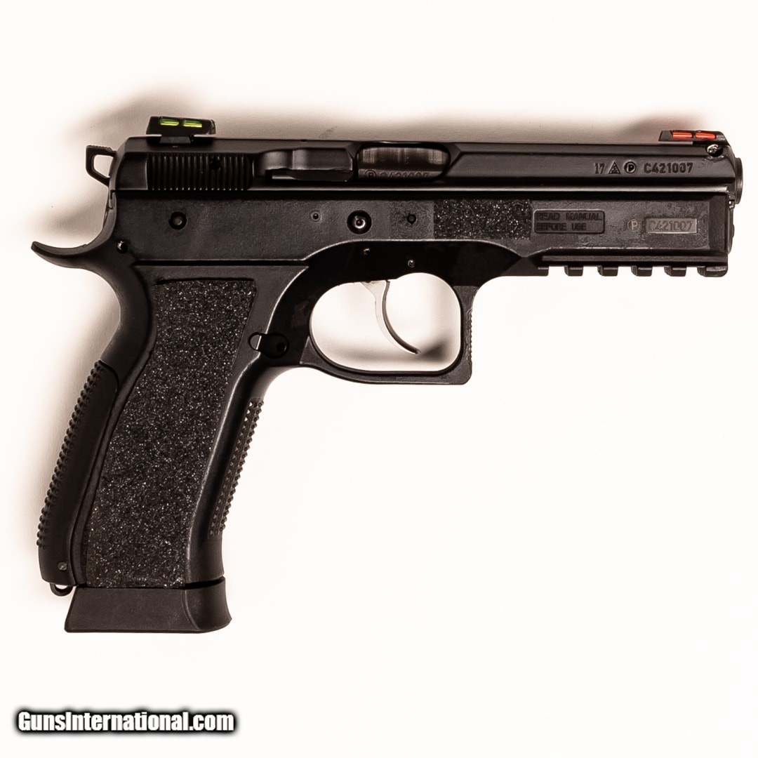 Description: Guns Listing ID: 619103 An updated variant of the legendary CZ 75, this CZ 75 SP-01 Phantom is a semi-automatic handgun that delivers an impressive capacity. Easy-to-use sights aid in target acquisition, while the cold hammer-forged barrel aids in accuracy. Safety features include a decocking lever and firing pin block safety. This 75 SP-01 Phantom has a Cajun Gun Works decocker race hammer SRS3 short reset kit RRKT2 and full fiber optic sights with additional green and orange rods. Two 17-round magazines and two 19-round magazines with aftermarket extended base pads are included. SOLD Manufacturer: CZ Model: 75 SP-01 PHANTOM Caliber Info: 9MM LUGER (9X19 PARA) Condition: Used - Certified Barrels: 4.8 BARREL Finish: BLACK |