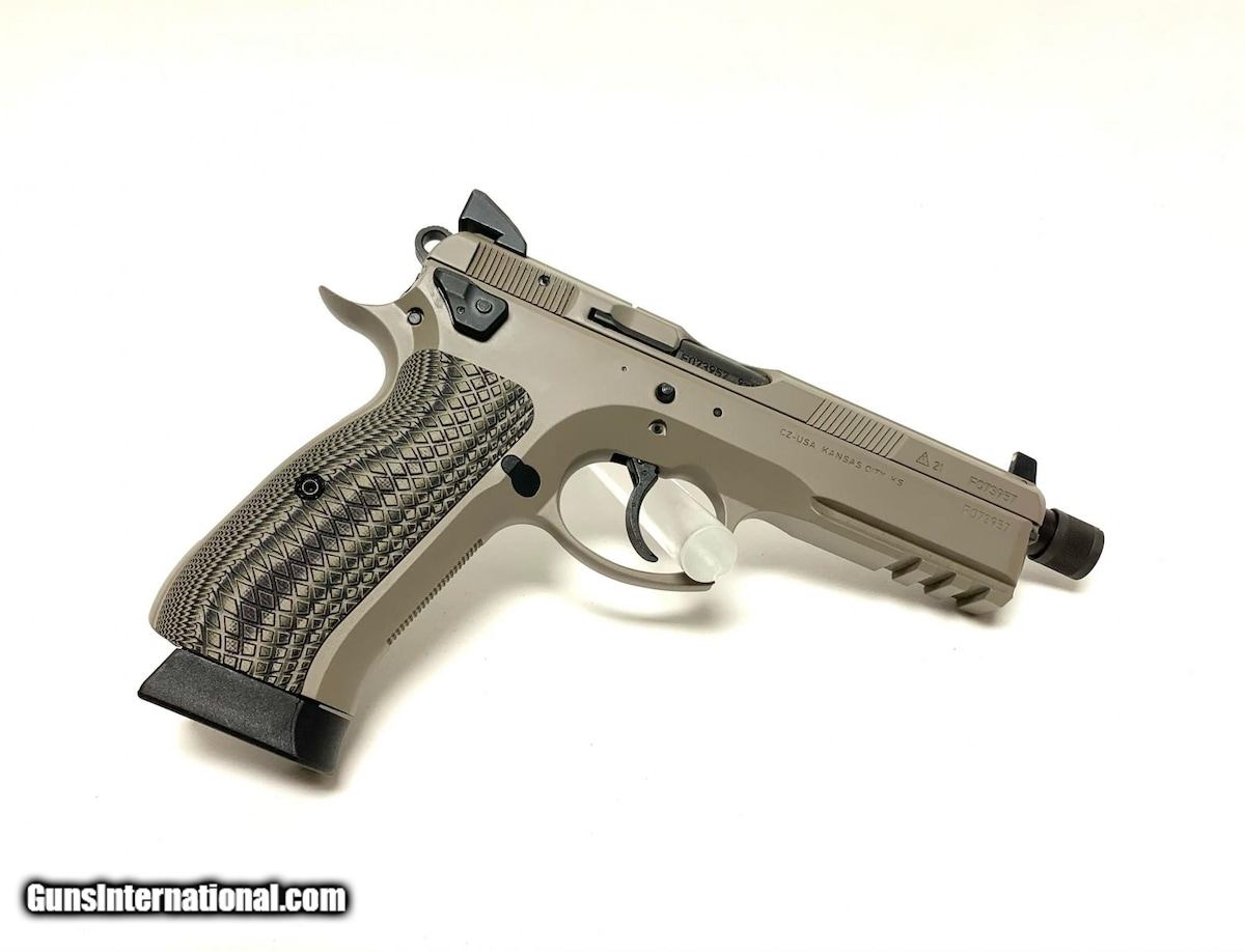 Description: Guns Listing ID: 712487 CZ 75 SP-01 Tactical 9x19mm, 5\" Threaded Barrel, FDE Cerakote, VZ Grips, Suppressor Height Sights, 2 Mags, Original Box SOLD Manufacturer: CZ Model: 75 SP-01 Tactical Caliber Info: 9X19MM Condition: Used - Non-Certified Barrels: 5 BARREL |