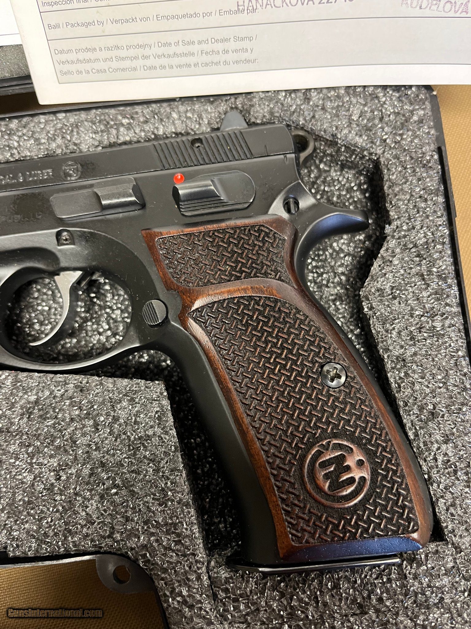 Description: Guns Listing ID: 469140 CZ 75B 9MM semi-auto pistol. In factory box with manual and two factory magazines. Also has beautiful wood grips. SOLD Manufacturer: CZ Model: 75B Condition: Used - Non-Certified Barrels: 4.6 Gauge Info: 9MM LUGER (9x19 PARA) Finish: black /w wood stock |