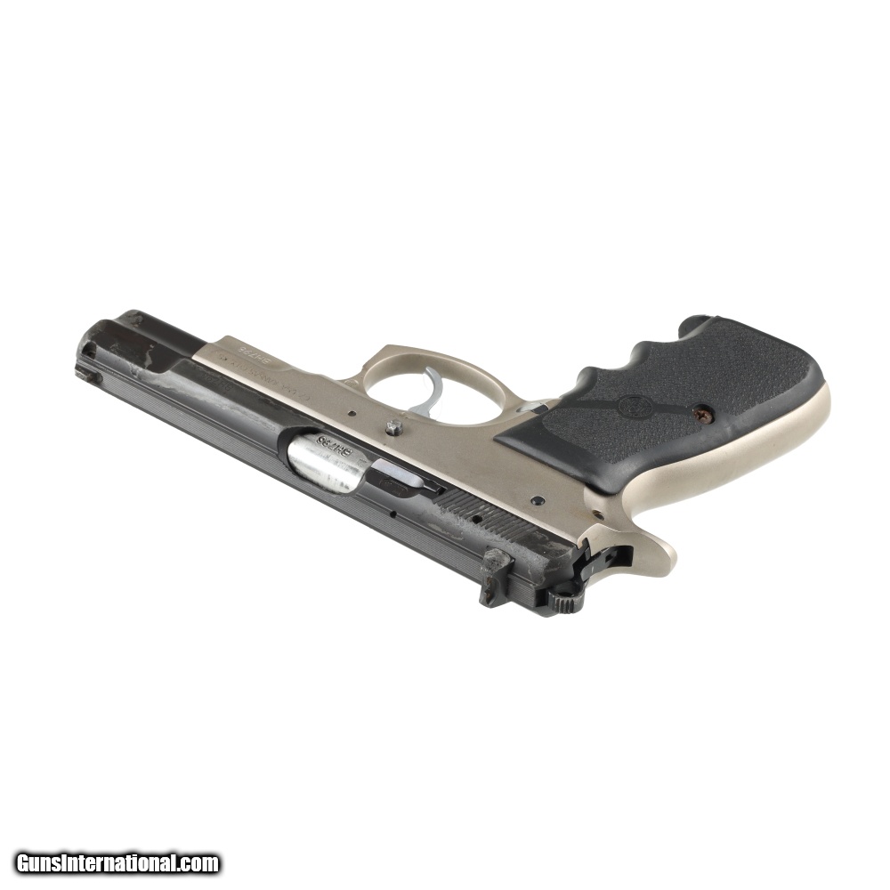 Description: Designed in 1975, the CZ75 with its crisp DA/SA trigger, light recoil, and fine sights is one of the most copied pistols in the world. This factory original CZ75 is a B model which denotes that is equipped with a firing pin block safety. The overall mechanical condition of this pistol is good, with both the double action and the single action sears feeling quite crisp and having good function to the safety as well. The frame also is in good condition, with some handling marks, however it appears that the slide suffered some water damage, with some loss of finish and pitting on certain areas. This pistol comes with one 15 round magazine and has a replacement Hogue grip. Manufactured in: Czech Hand: Right Hand Action Finish: Stainless Steel Metal Finish: Original Barrel Length: 4.5 Inches Barrel Condition: Good Stock Condition: Good Grip: Pistol Extra Barrels: No. SOLD Manufacturer: CZ Model: 75B Caliber Info: 9mm x 19 Condition: Preowned Metal Condition: Fair Action: Semi Automatic Triggers: Single Finish: Original Weight: 2.2 lbs Extras: No. Case: NONE |