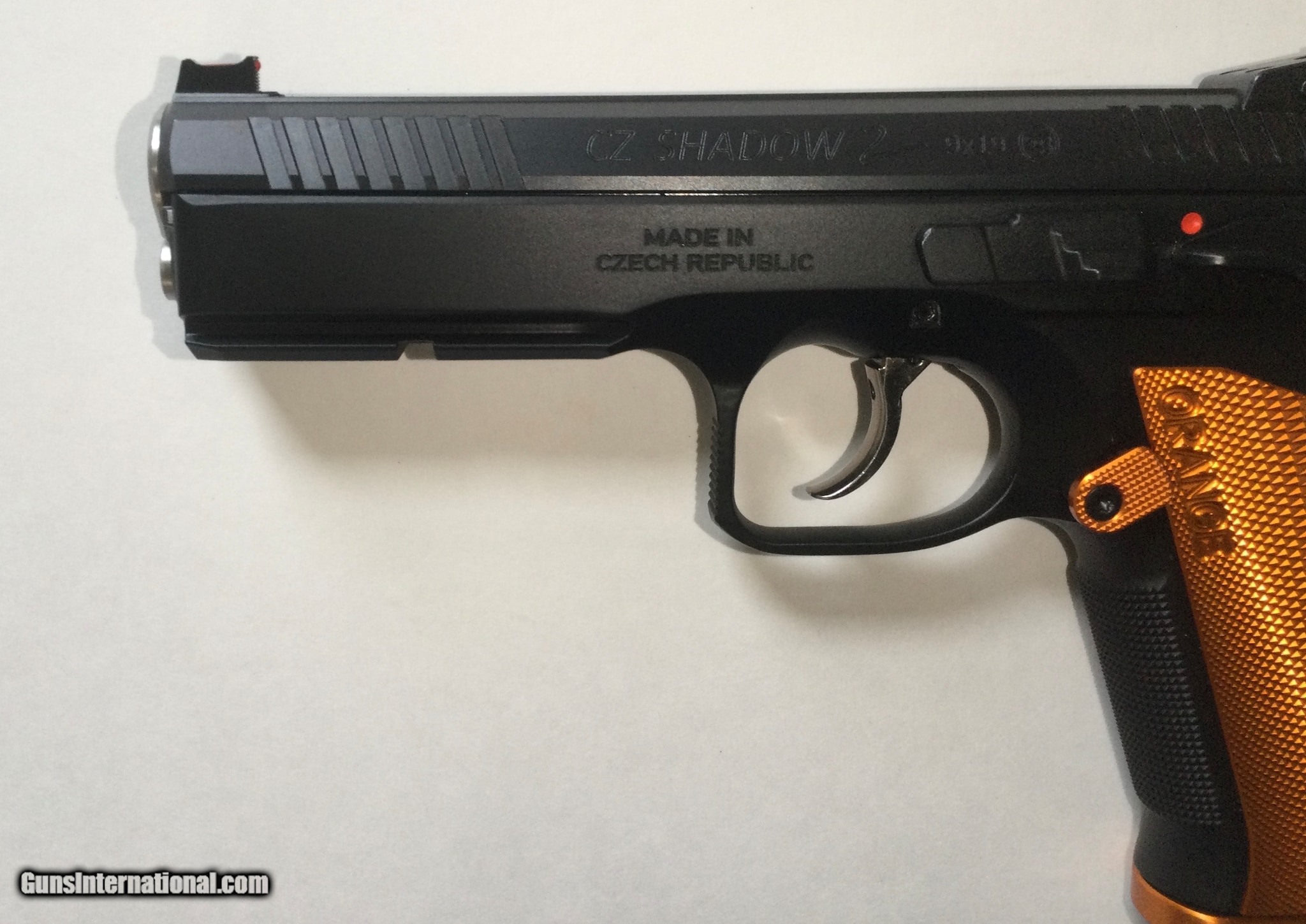 Description: Guns Listing ID: 919997 Used Excellent Condition 2 extra magazines extra springs kummer FSG oil 20ml Series/Collection: CZ Shadow 2 Orange Action: Single/Double Caliber/Gauge: 9mm Luger Capacity: 17+1 Sight: Fiber Optic Front, HAJO Rear Slide: Black Steel Safety: Ambidextrous Manual Grip Type: Orange Aluminum Barrel Material: Cold Hammer Forged Frame Material: Steel Frame Finish: Black Barrel Length: 4.89\" Overall Length: 8.53\" Weight: 46.5 oz SOLD Manufacturer: CZ Model: SHADOW 2 Caliber Info: 9MM LUGER (9X19 PARA) Condition: Used - Non-Certified Barrels: 4.9 BARREL |