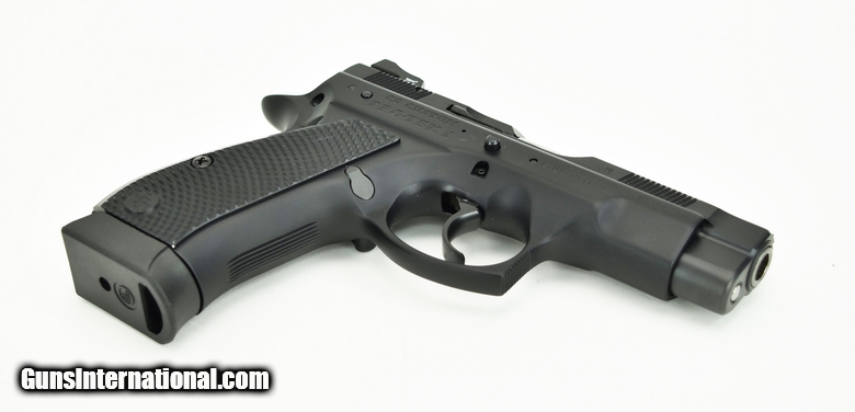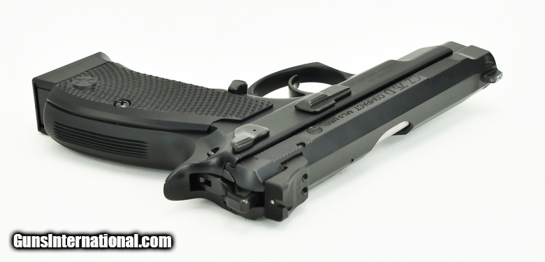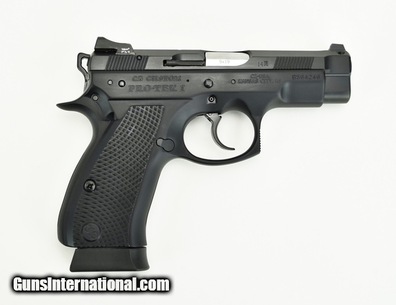 Description: CZ 75D Compact 9mm caliber pistol. Custom shop Protek 1 model with alloy frame, night sights and slick action with box in excellent condition.